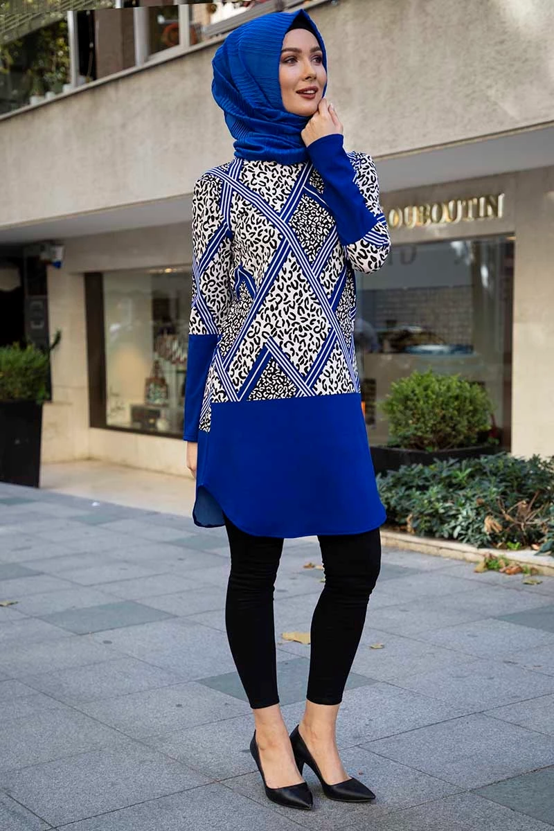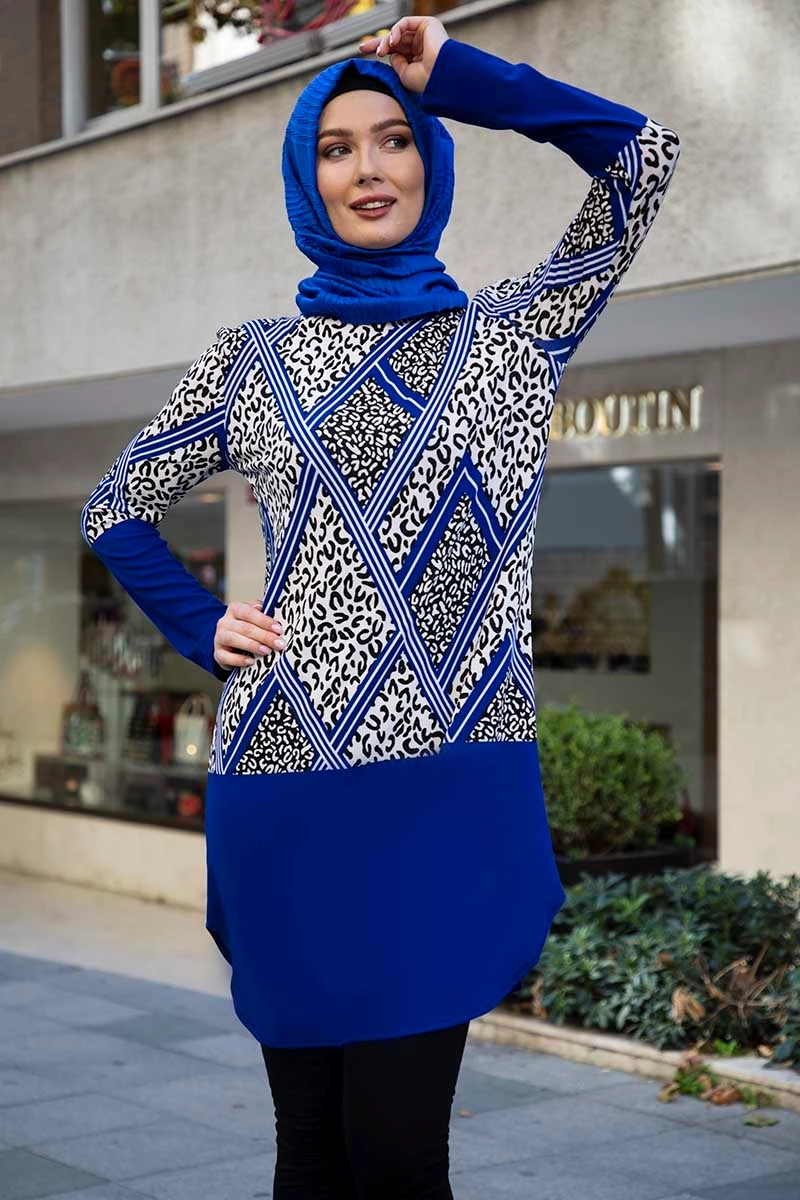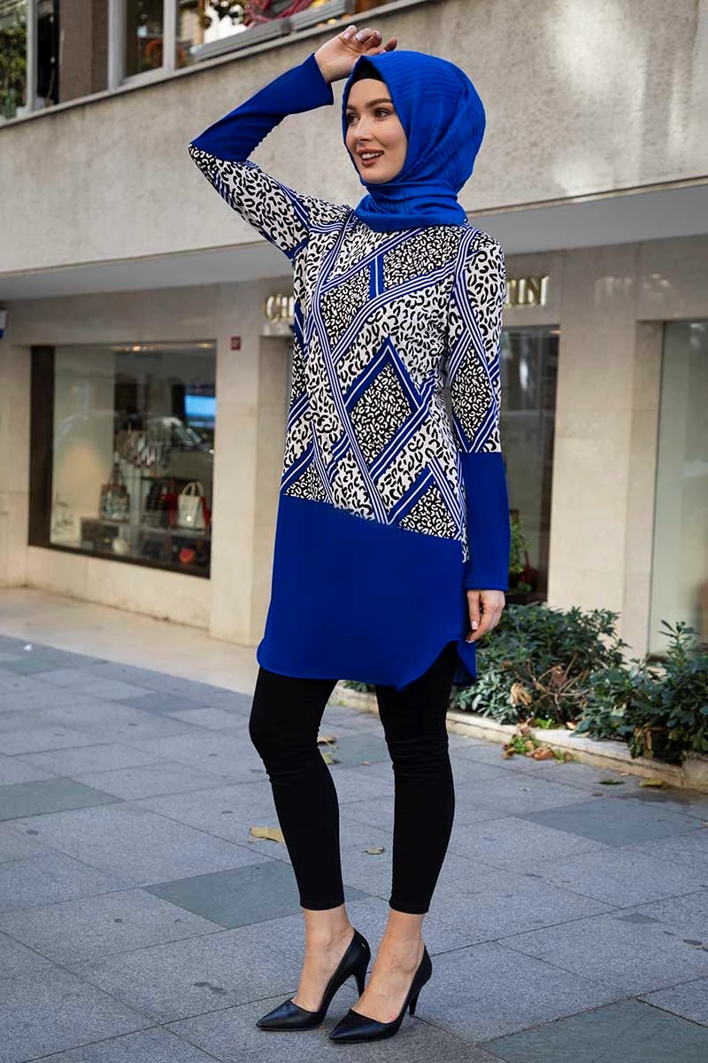 Needion - Baskılı  Tesettür Tunik C30050-82 2xl