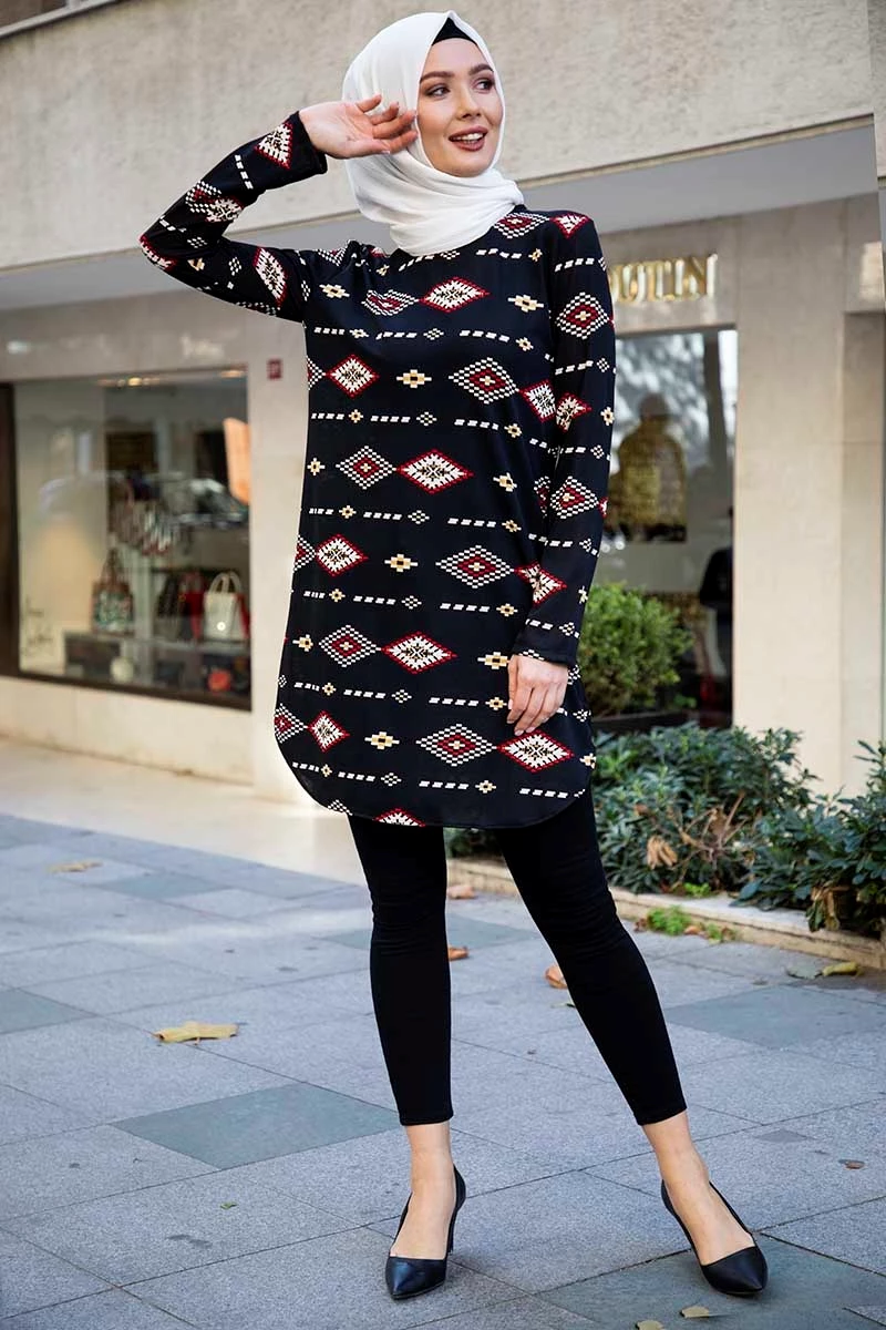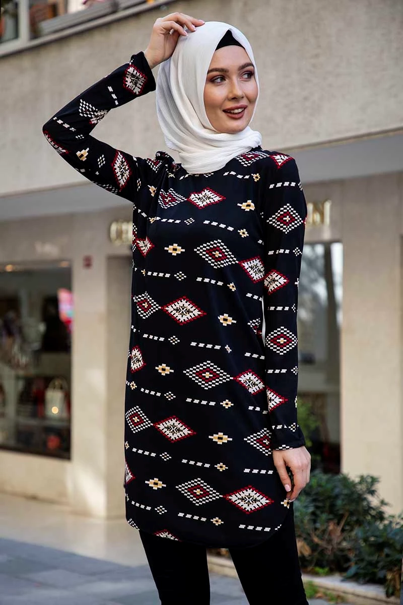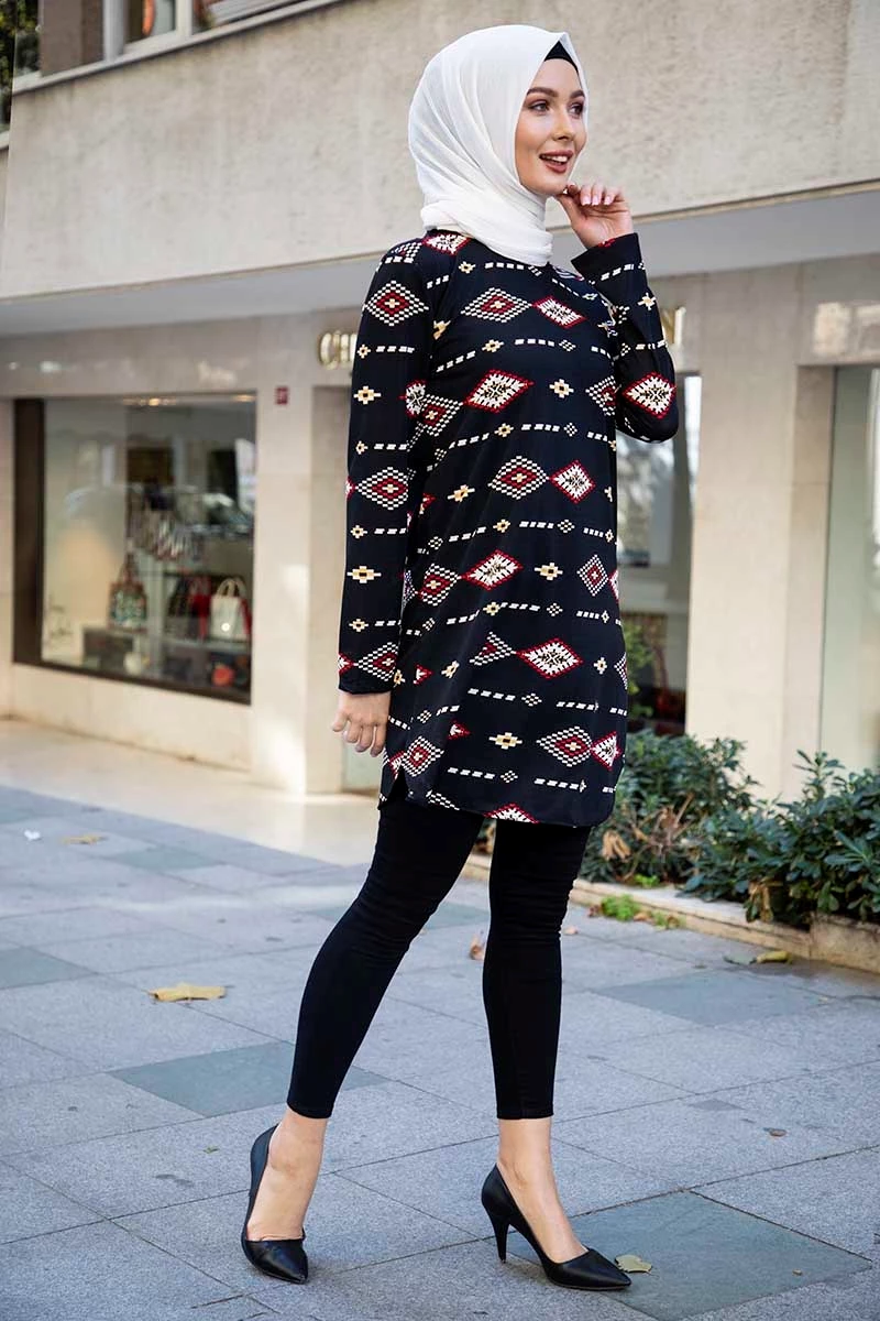 Needion - Baskılı Tesettür Tunik C30050-85 S-M