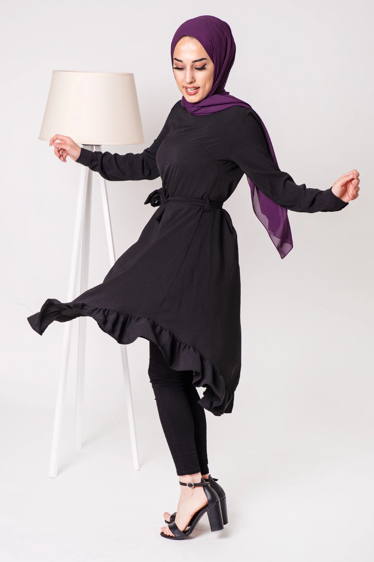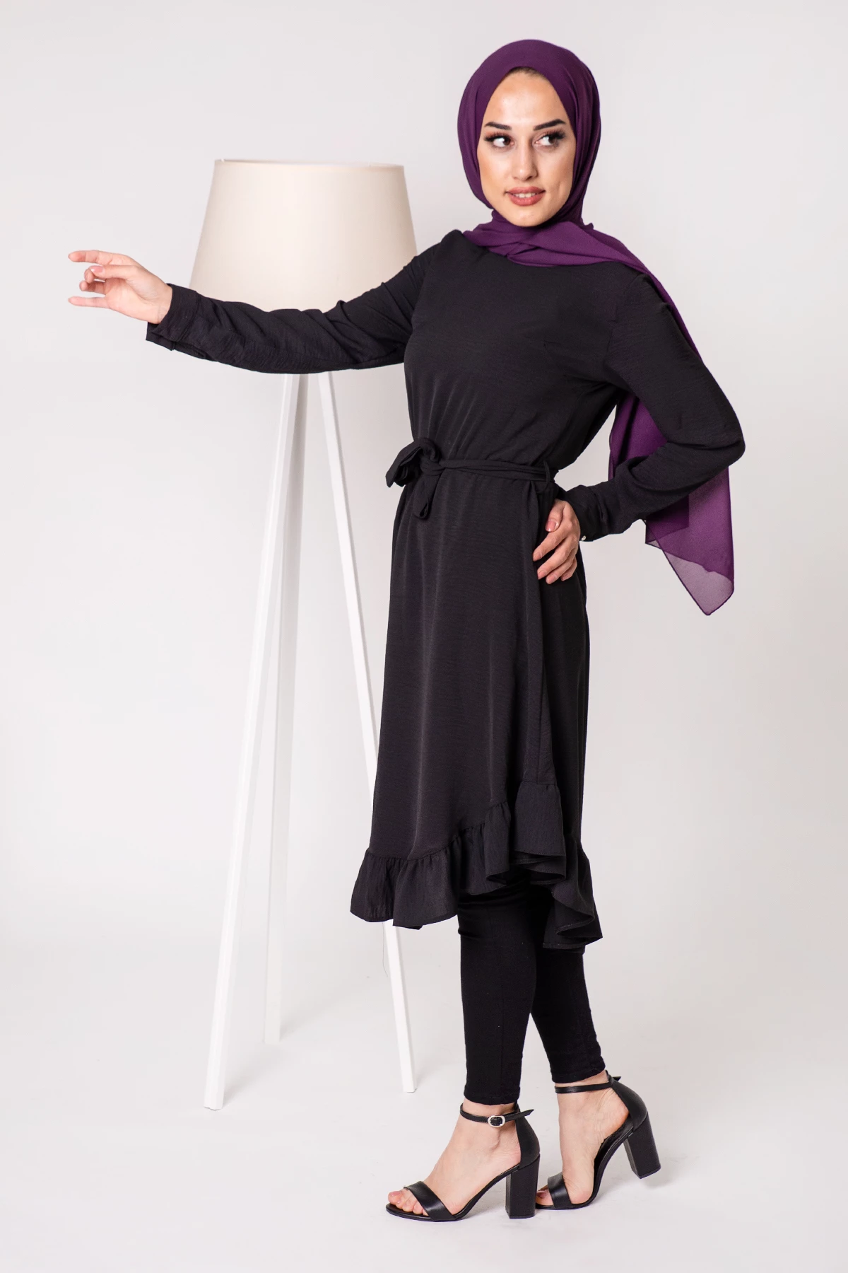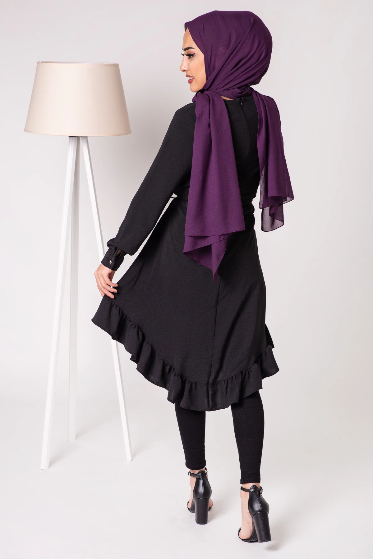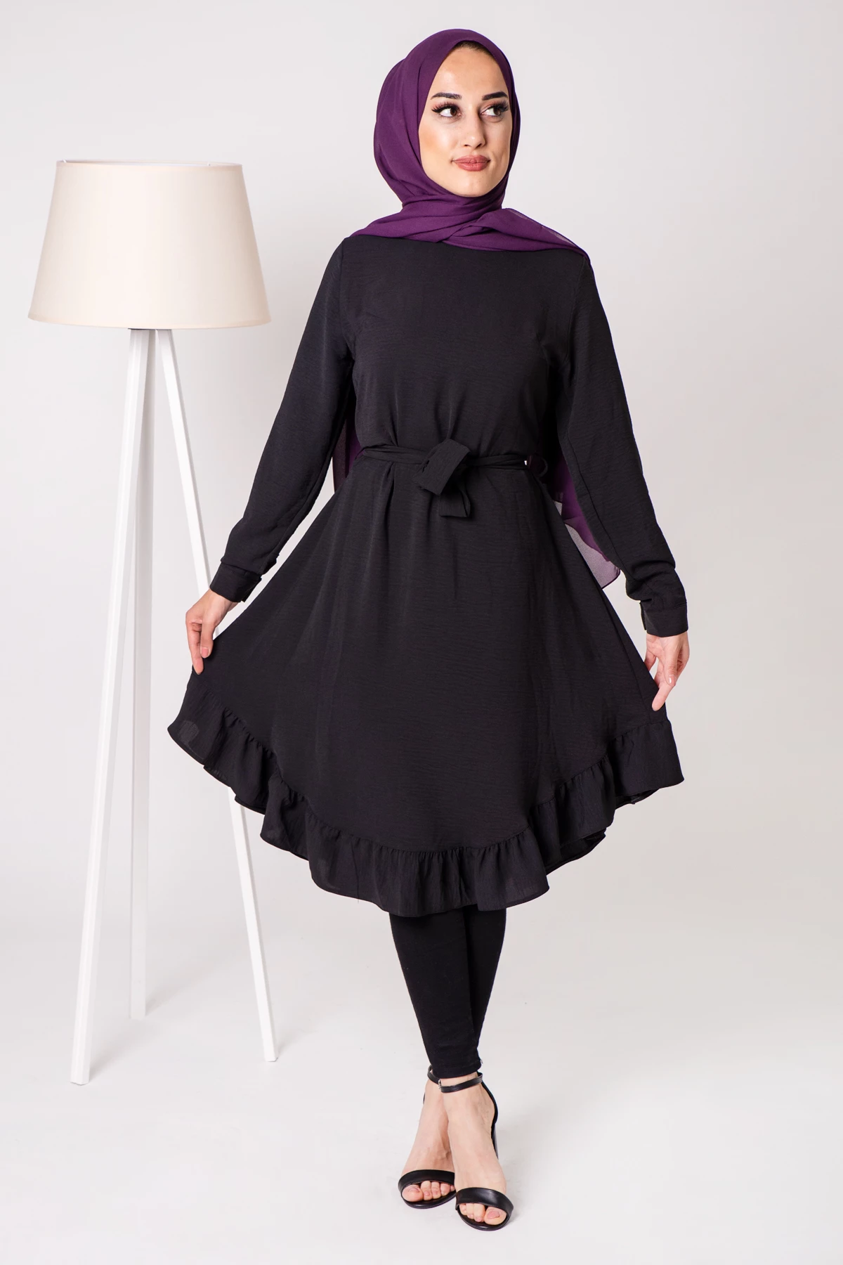 Bisiklet Yaka Fırfır Detay Tesettür Tunik Siyah OZM7125SH 38