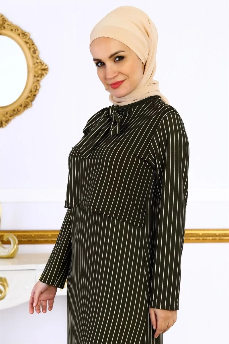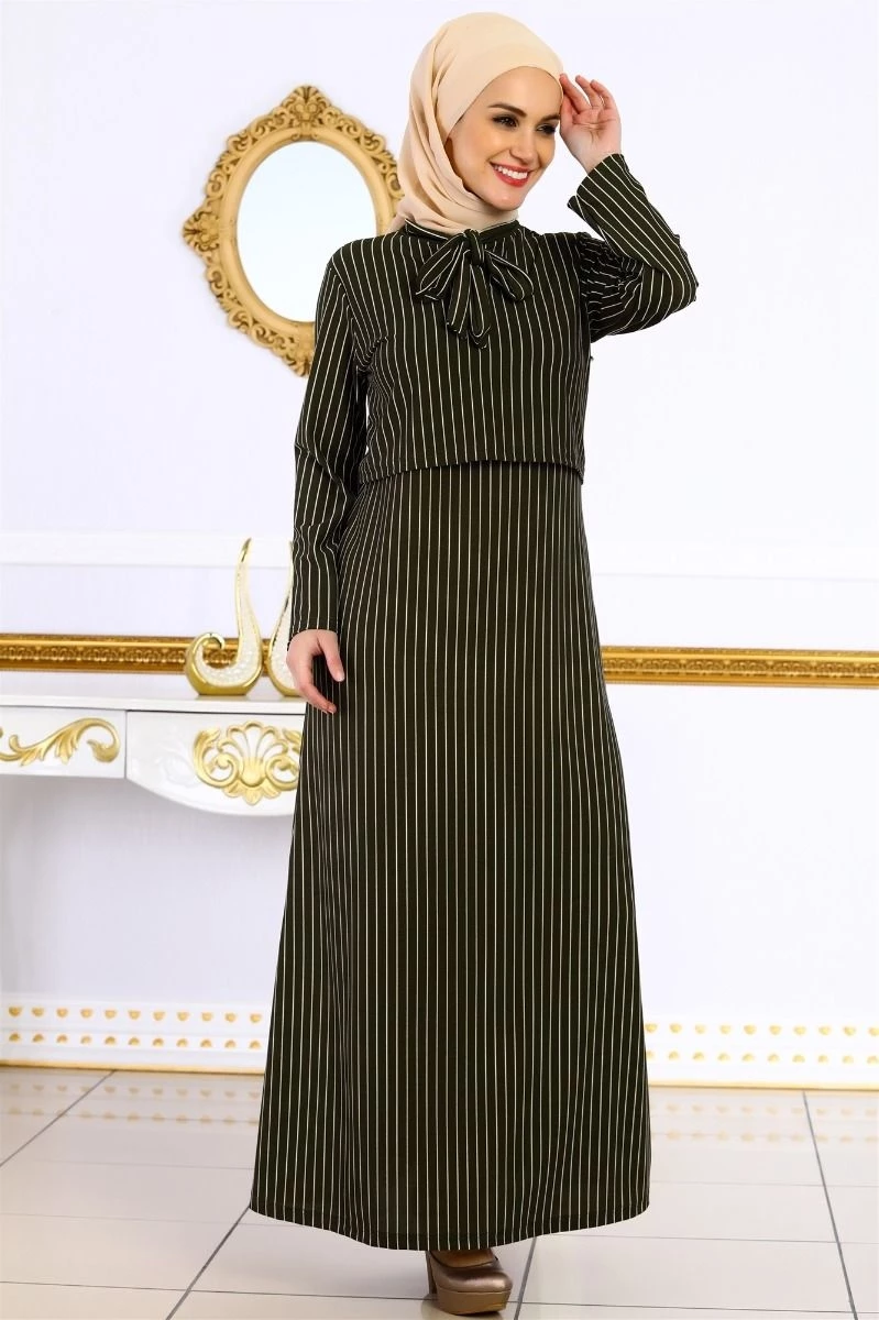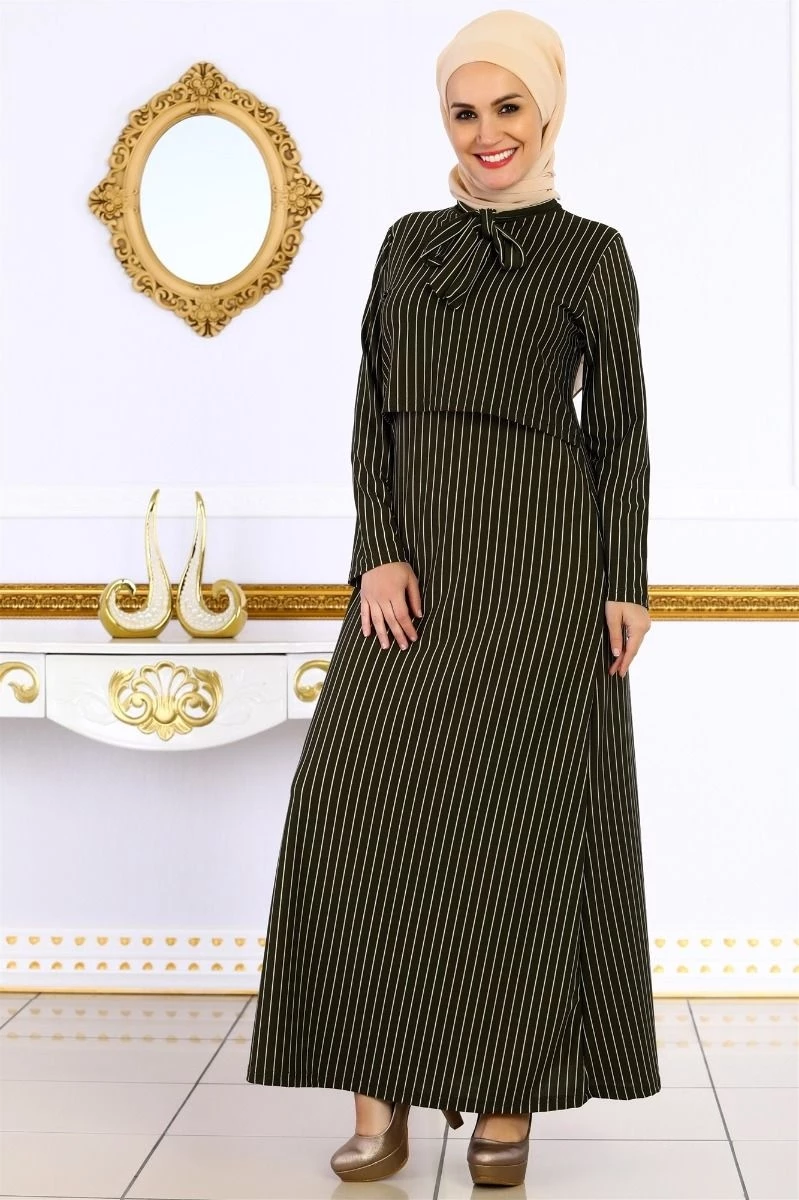 Bolerolu Tesettür Elbise Haki S