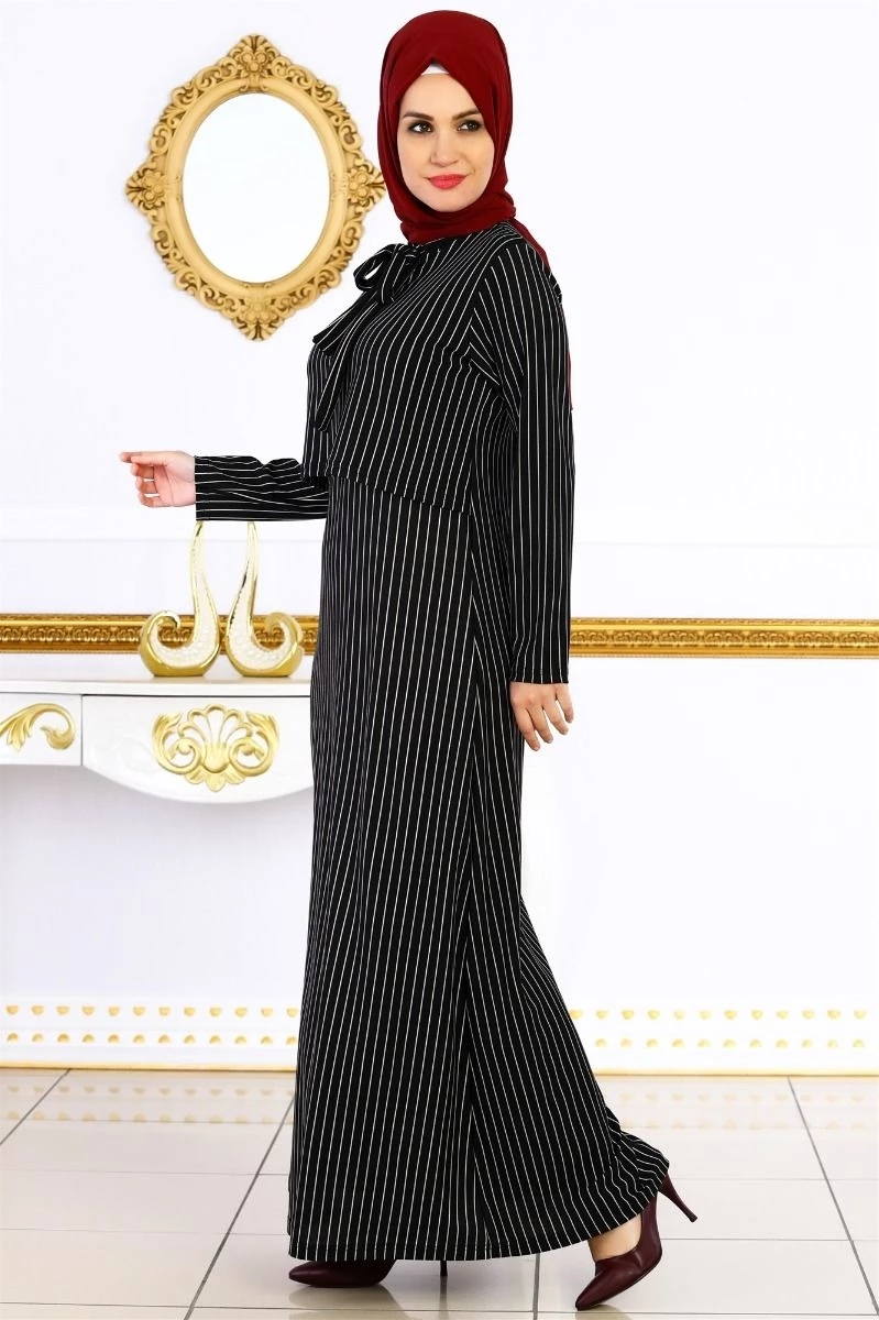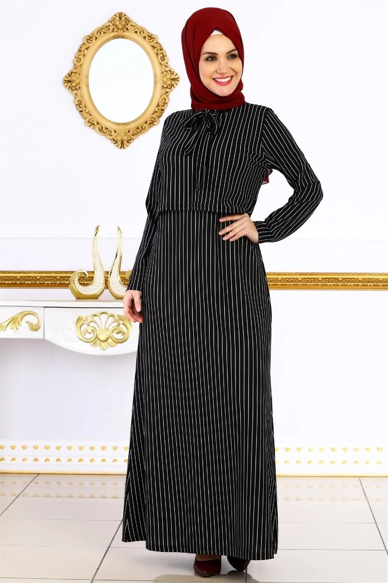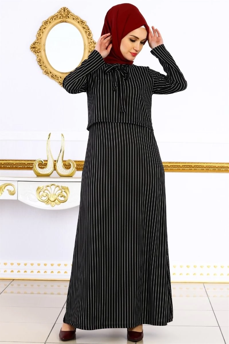Needion - Bolerolu Tesettür Elbise Siyah S