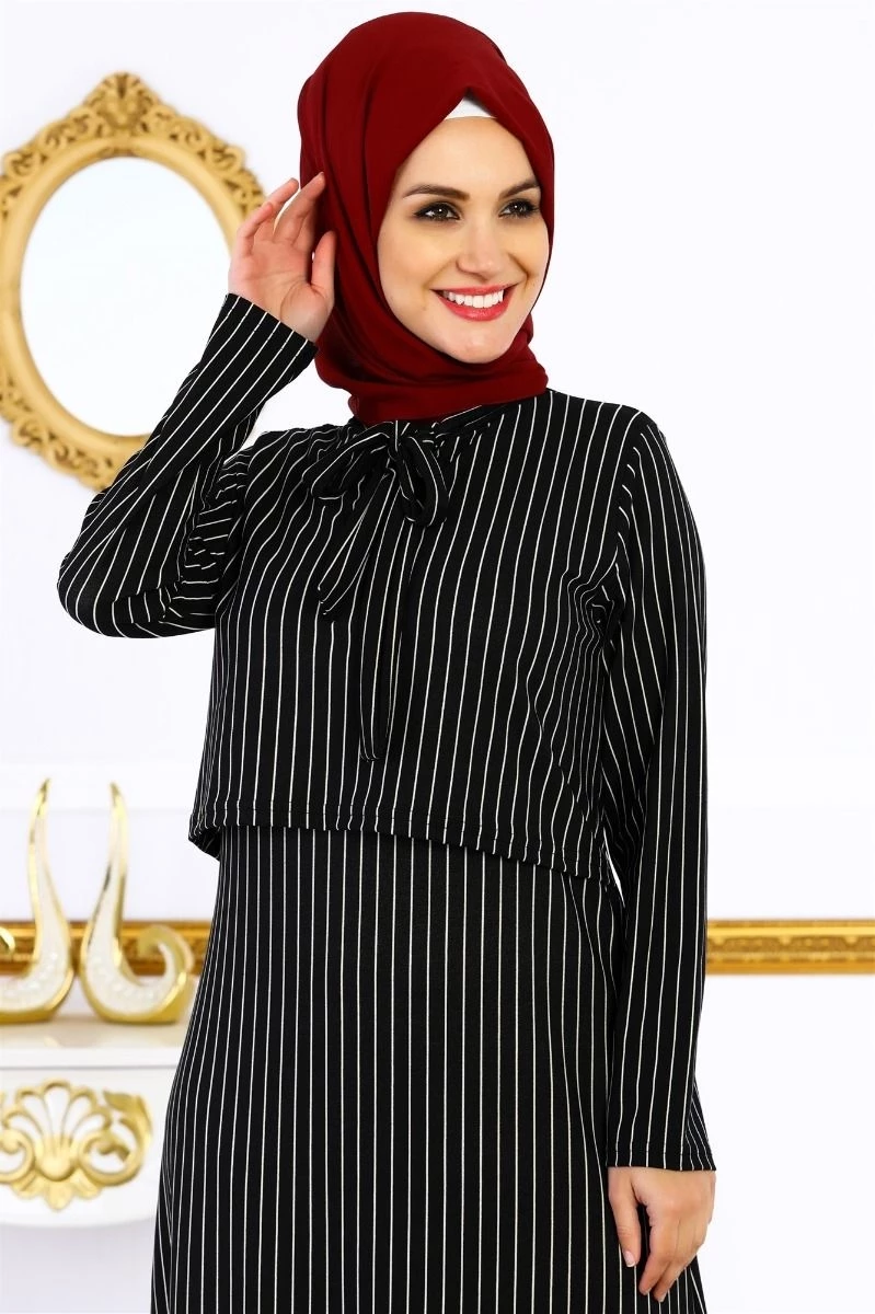 Boydan Çizgili İki Parça görünümlü kuşak kemerli likralı esnek yapısı ile siz değerli müşterilerimiz için imal edilmiştir.Tam kalıptır.