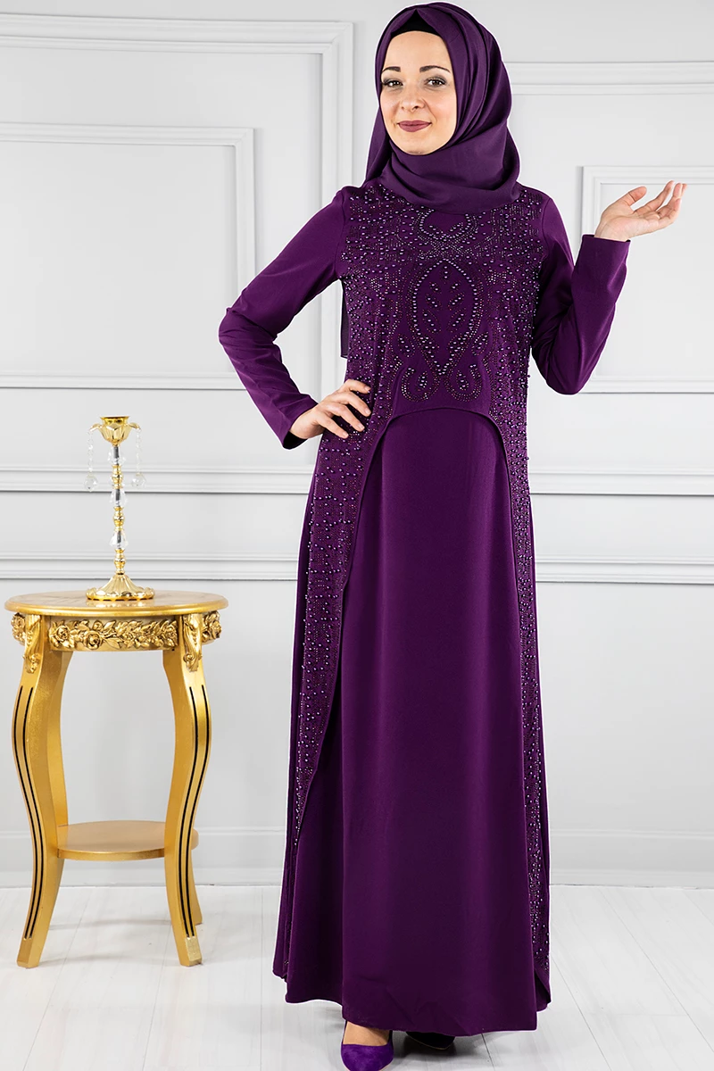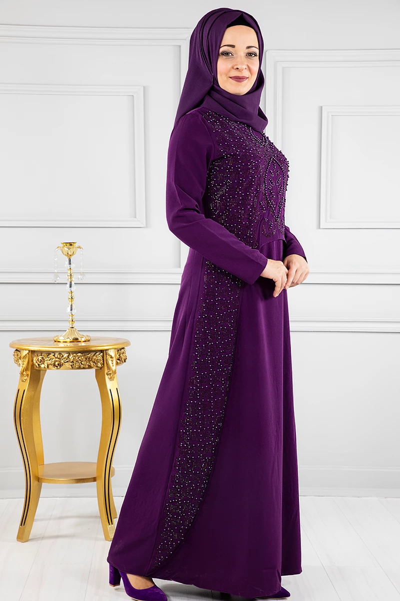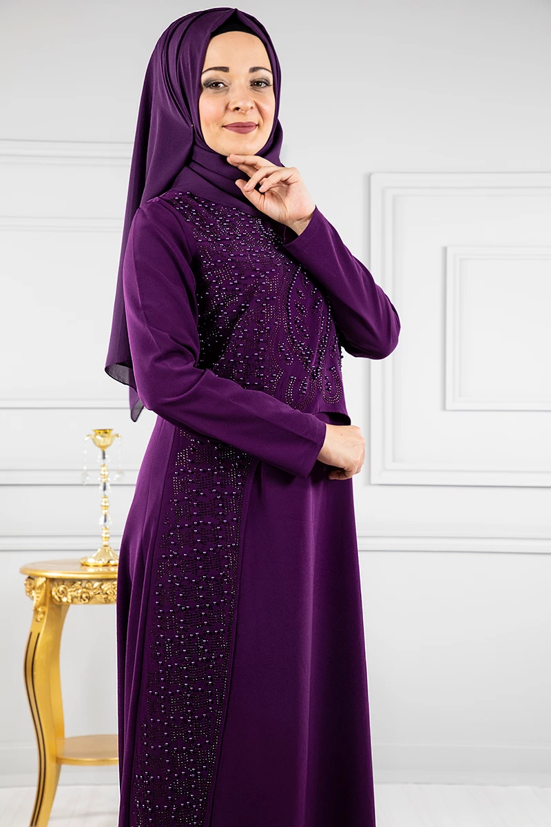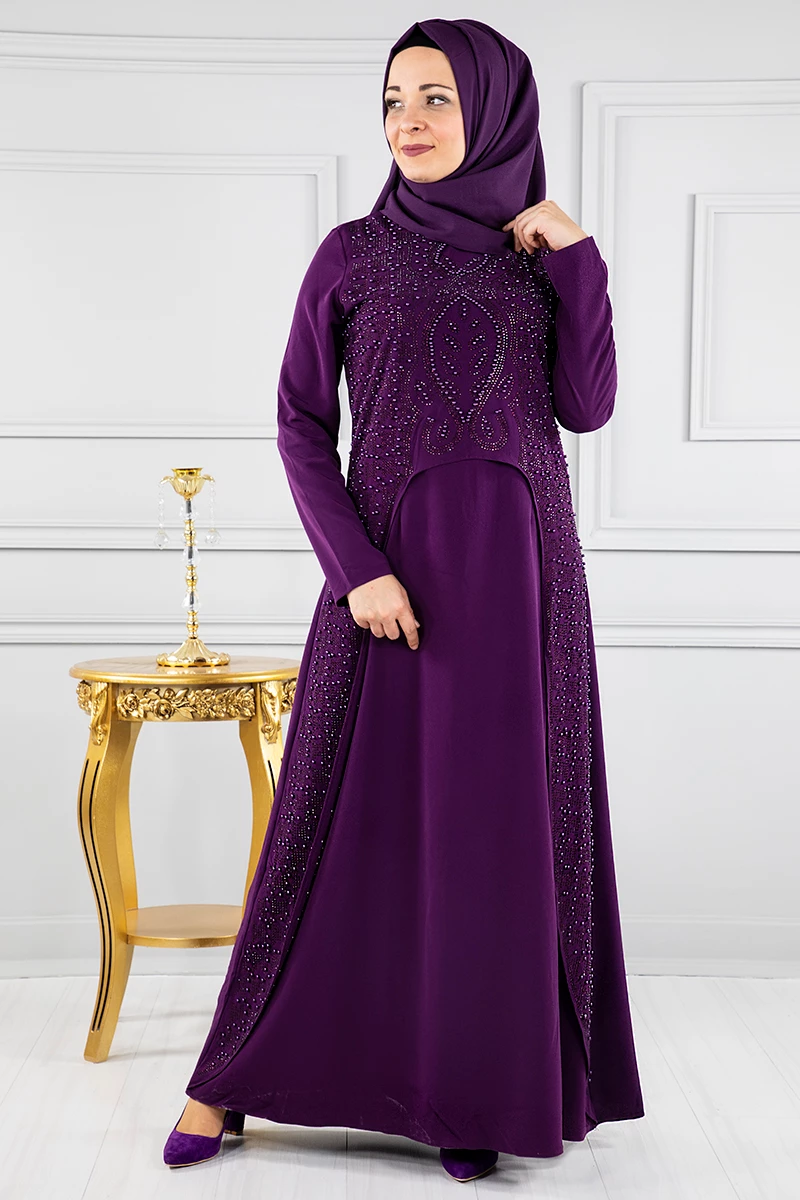 Boydan Taşlı Abiye Elbise MOR 20046 38
