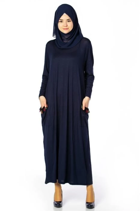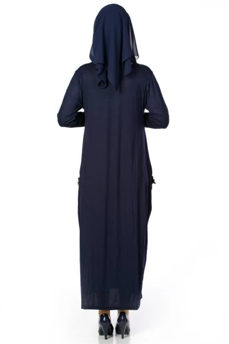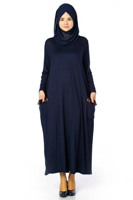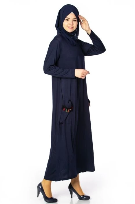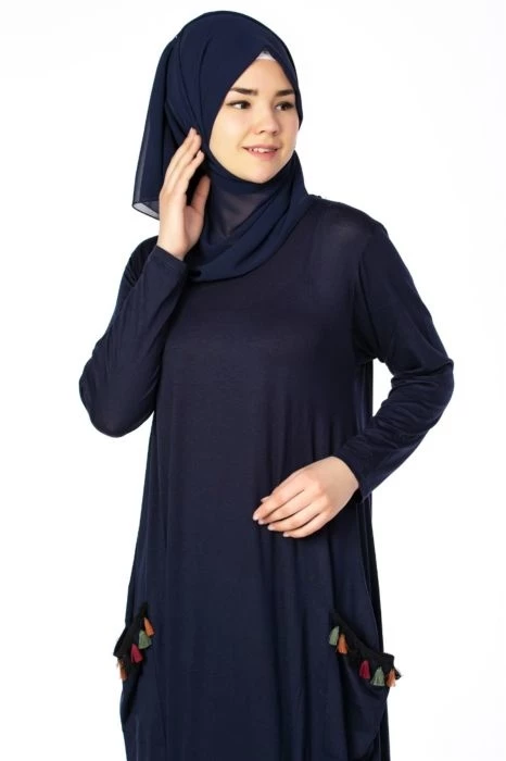 Cepleri Püsküllü Tesettür Elbise Lacivert M