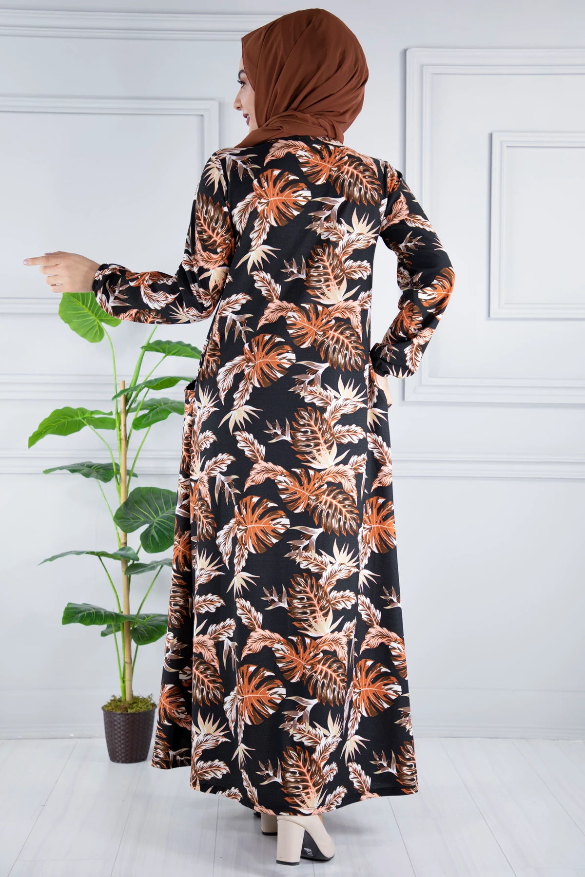 Cepli Çiçek Desenli Tesettür Elbise FZ2012SH36 S-M