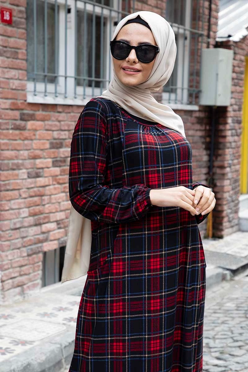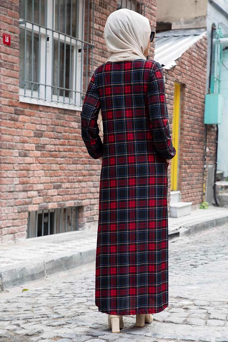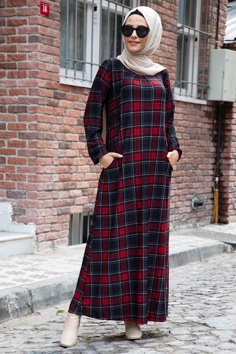 Needion - Cepli Desenli Tesettür Elbise FZ2012ELSH02 S-M