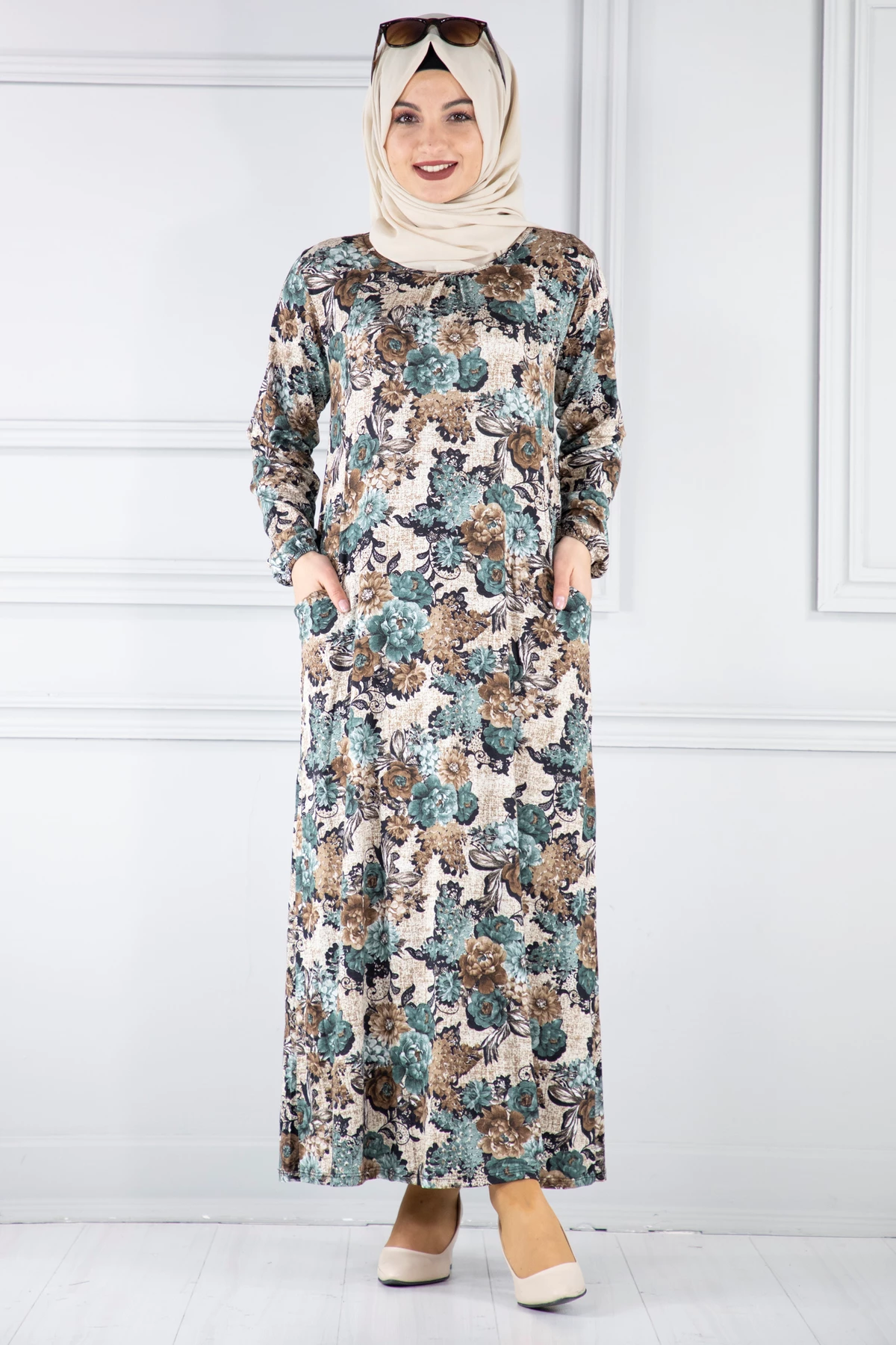 Cepli Desenli Tesettür Elbise Mint FZ2012MT S-M