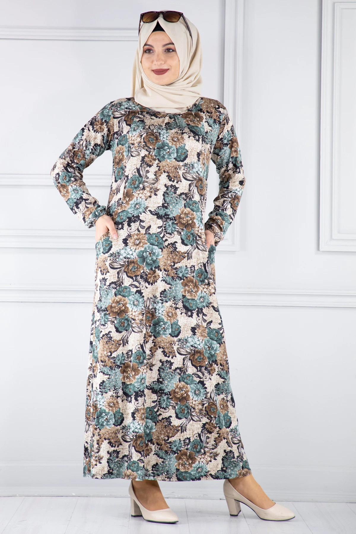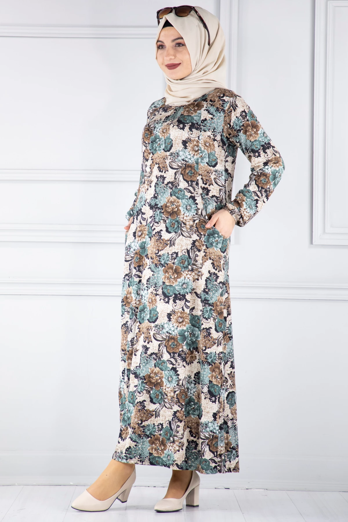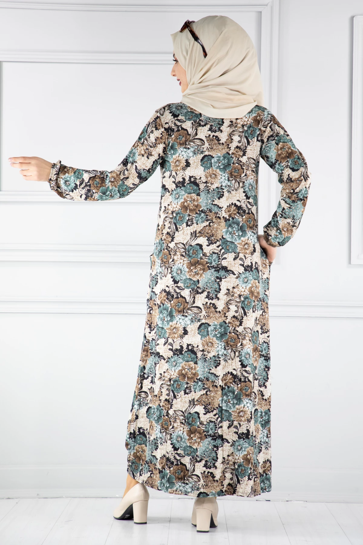 Needion - Cepli Desenli Tesettür Elbise Mint FZ2012MT S-M