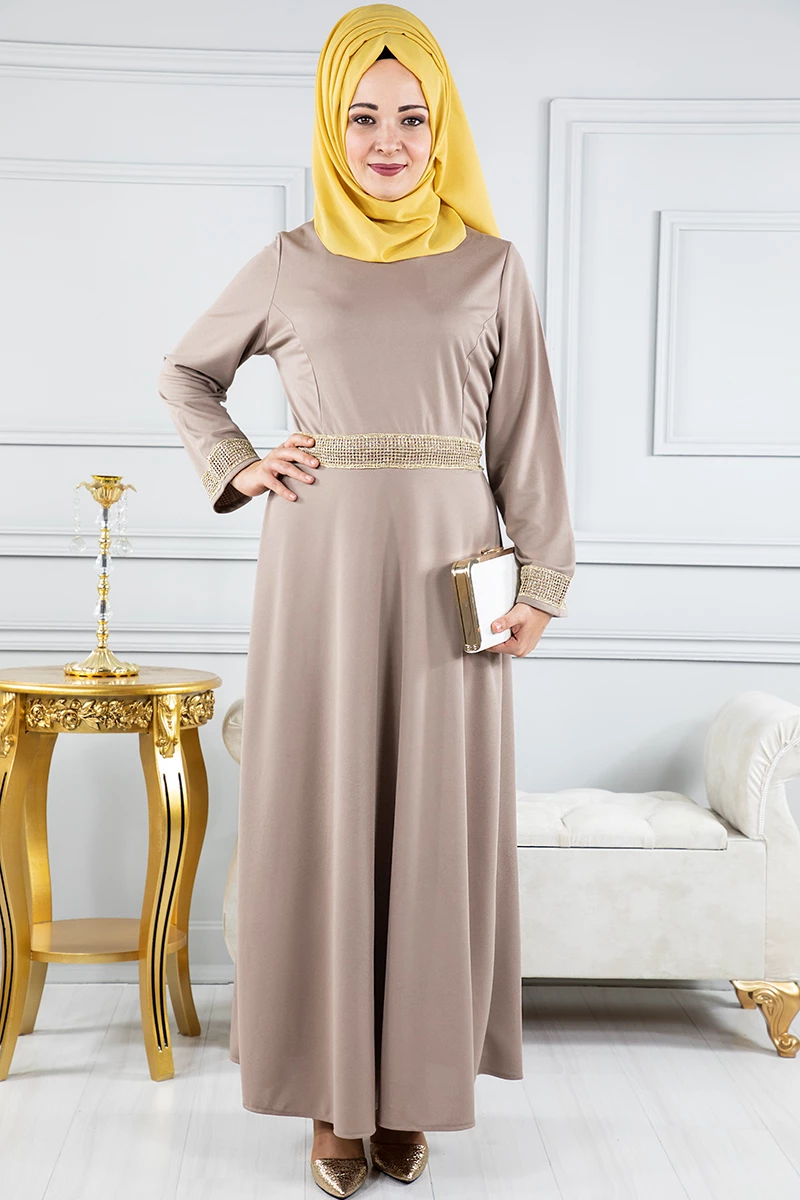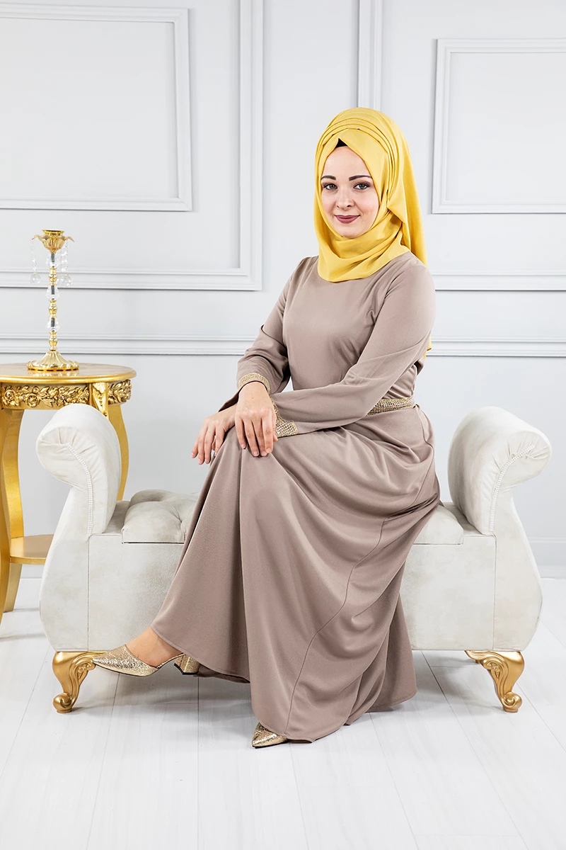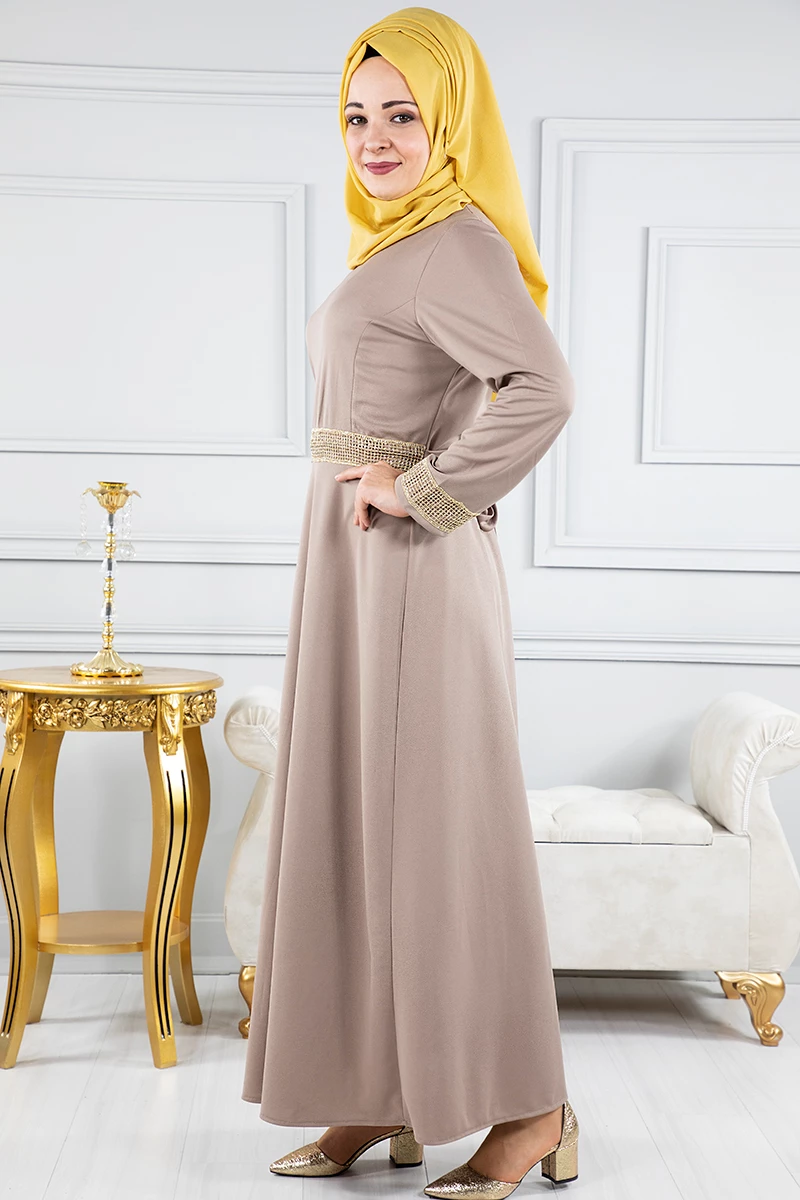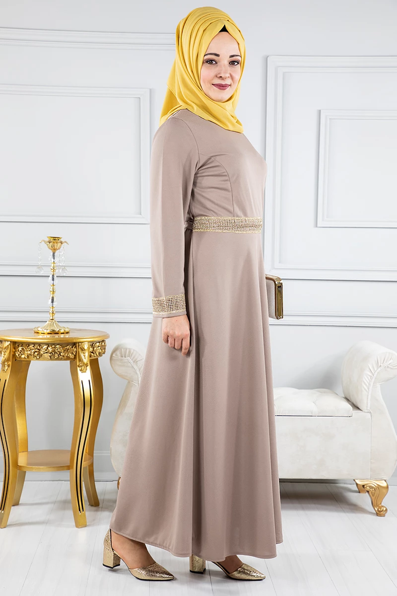 Dubai Güpürlü Tesettür Abiye RB50005 Bej 40
