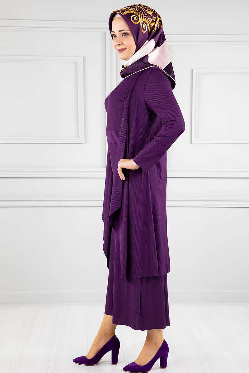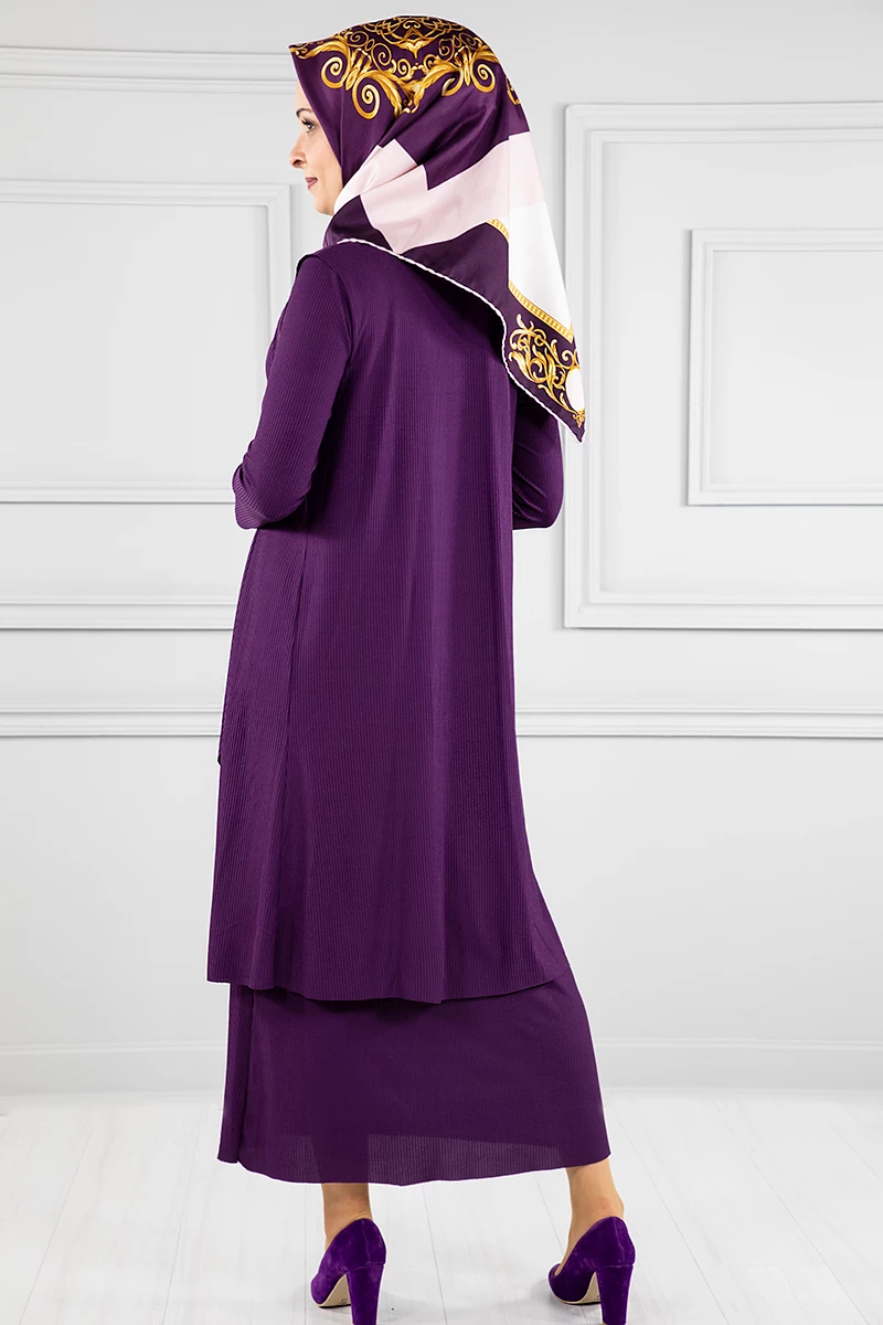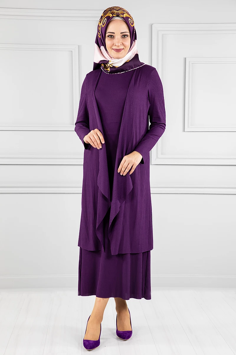 Elbise Yelek Tesettür 2'li Takım Mürdüm S