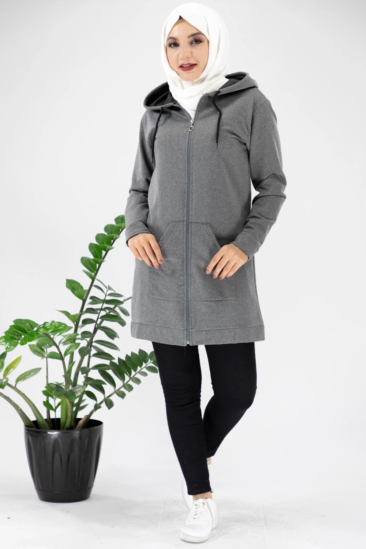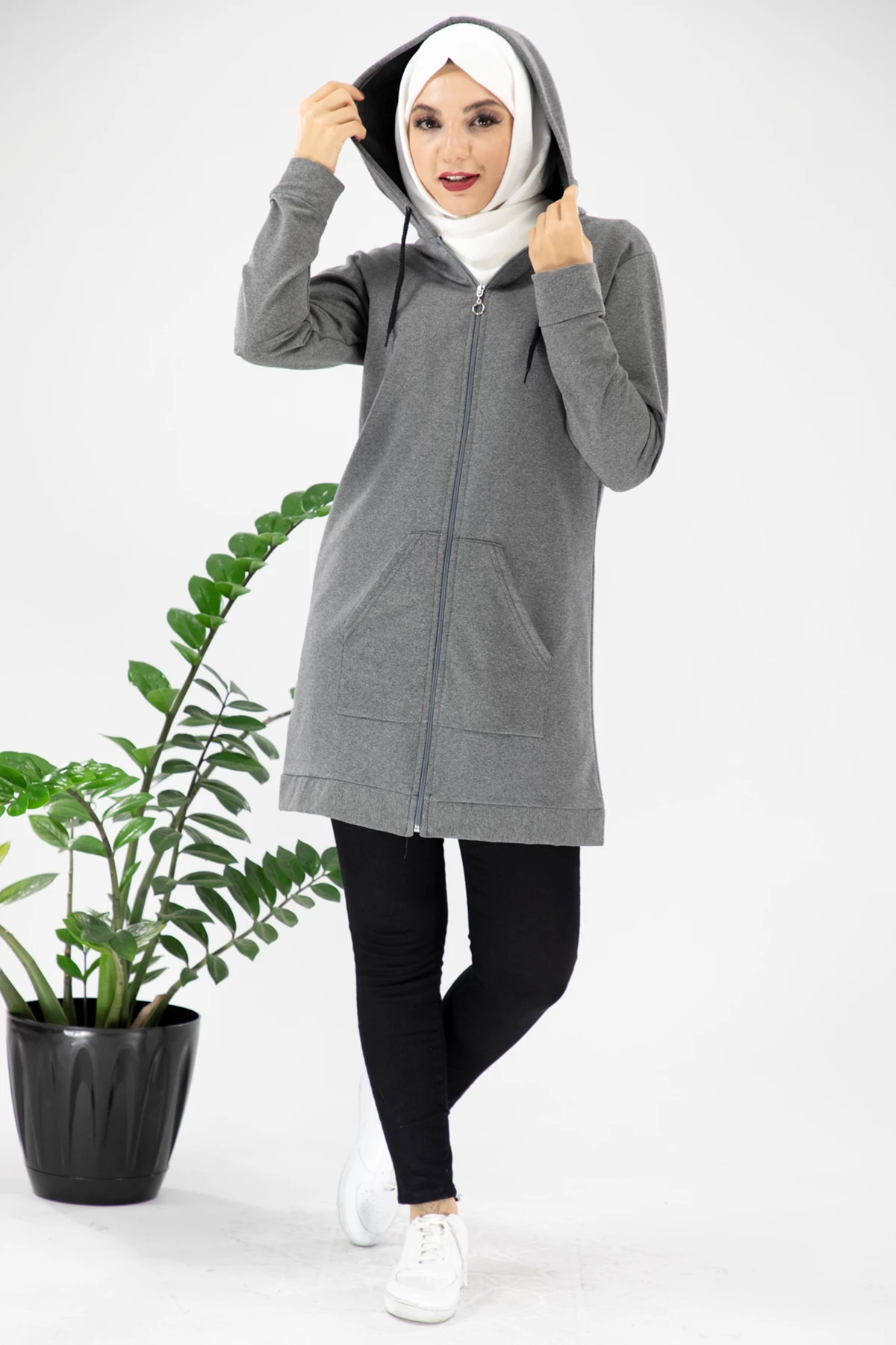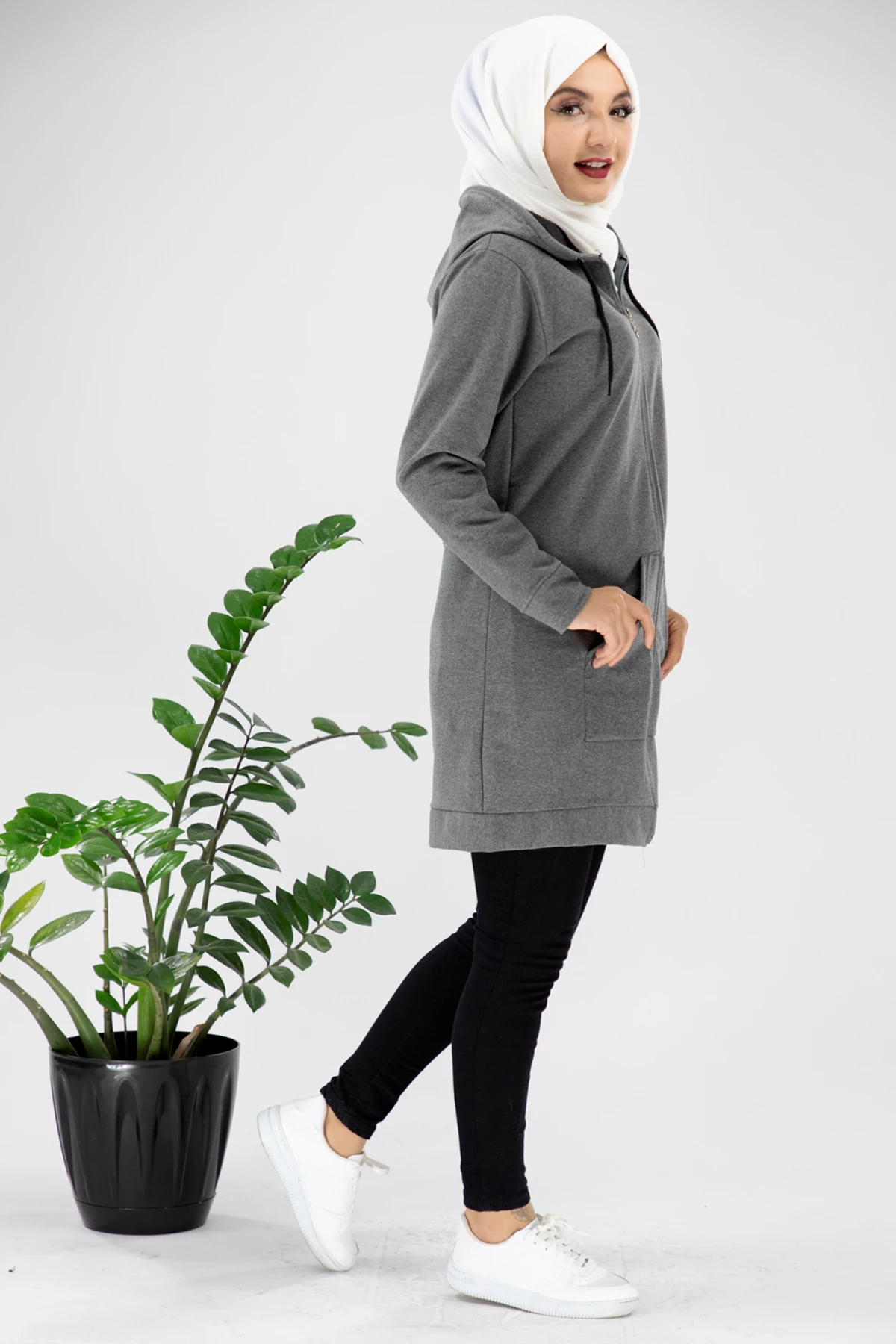 Fermuarlı Önü Cepli Tesettür Tunik Antrasit Antrasit lxl