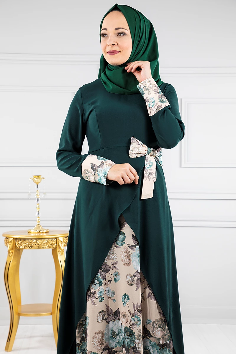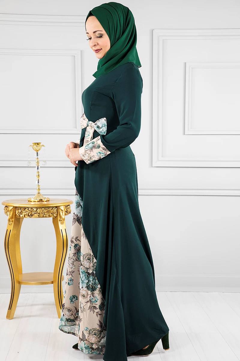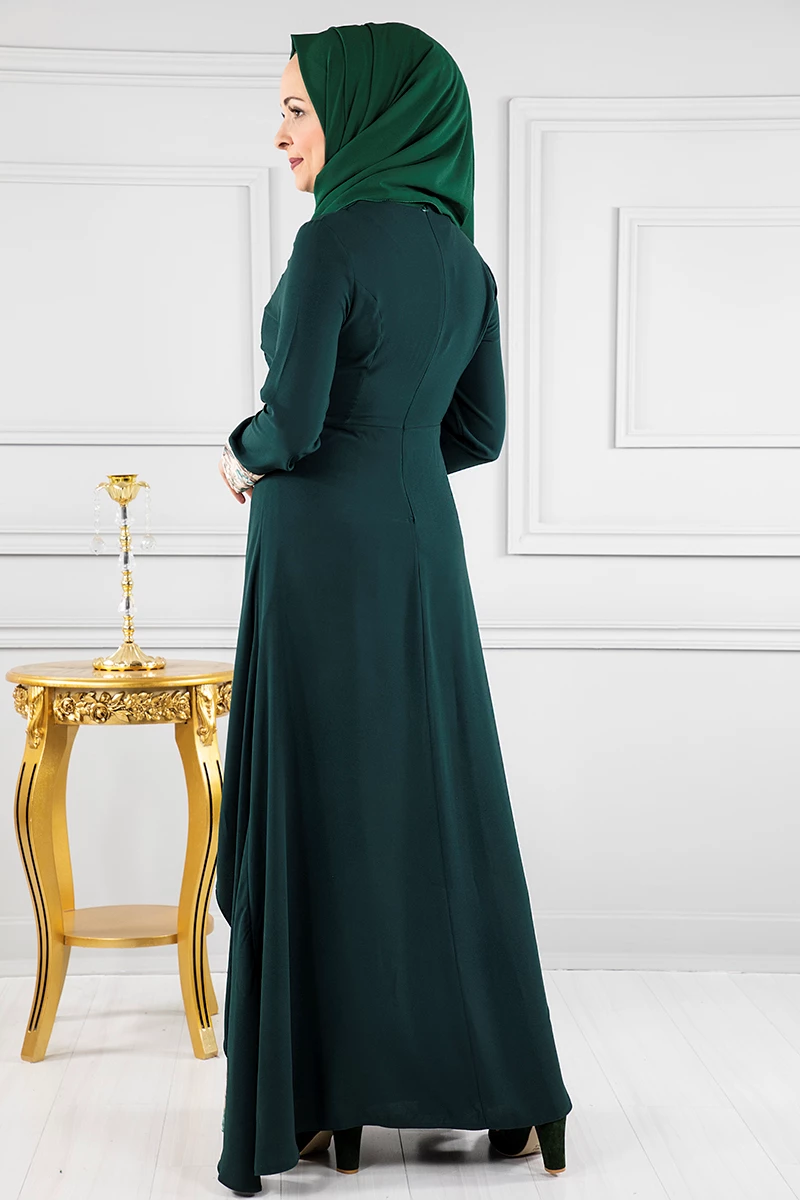 Fiyonklu Desenli Abiye Elbise ZÜMRÜT 20042 42
