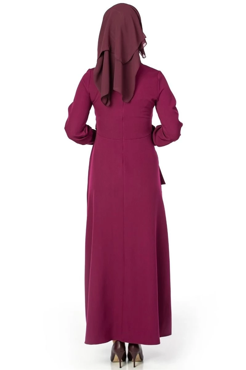 Needion - Geniş Kol Manşetli Tesettür Elbise Mürdüm 38