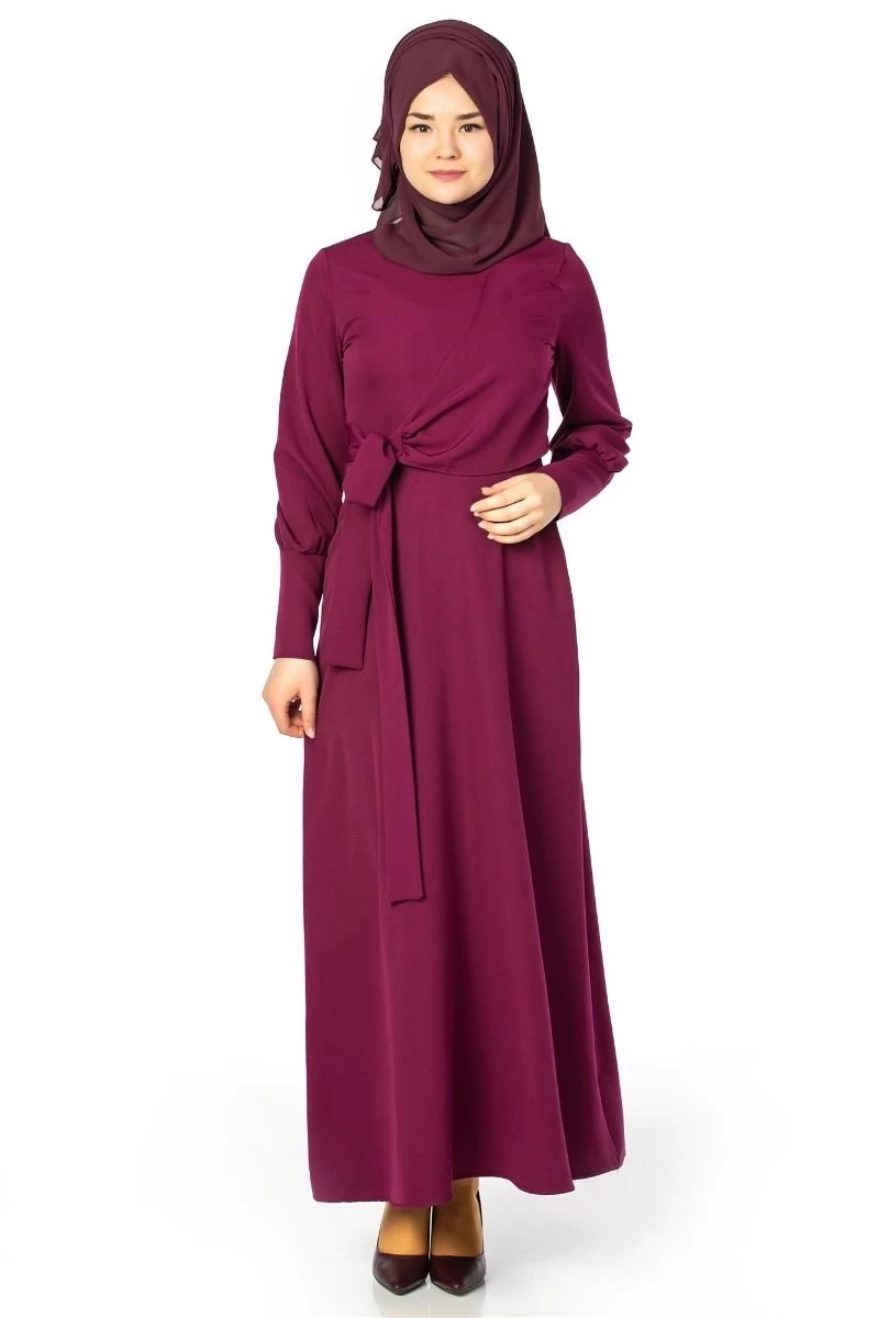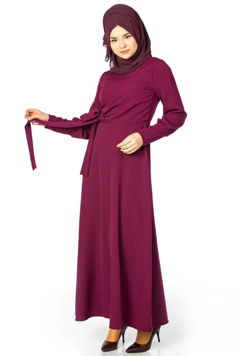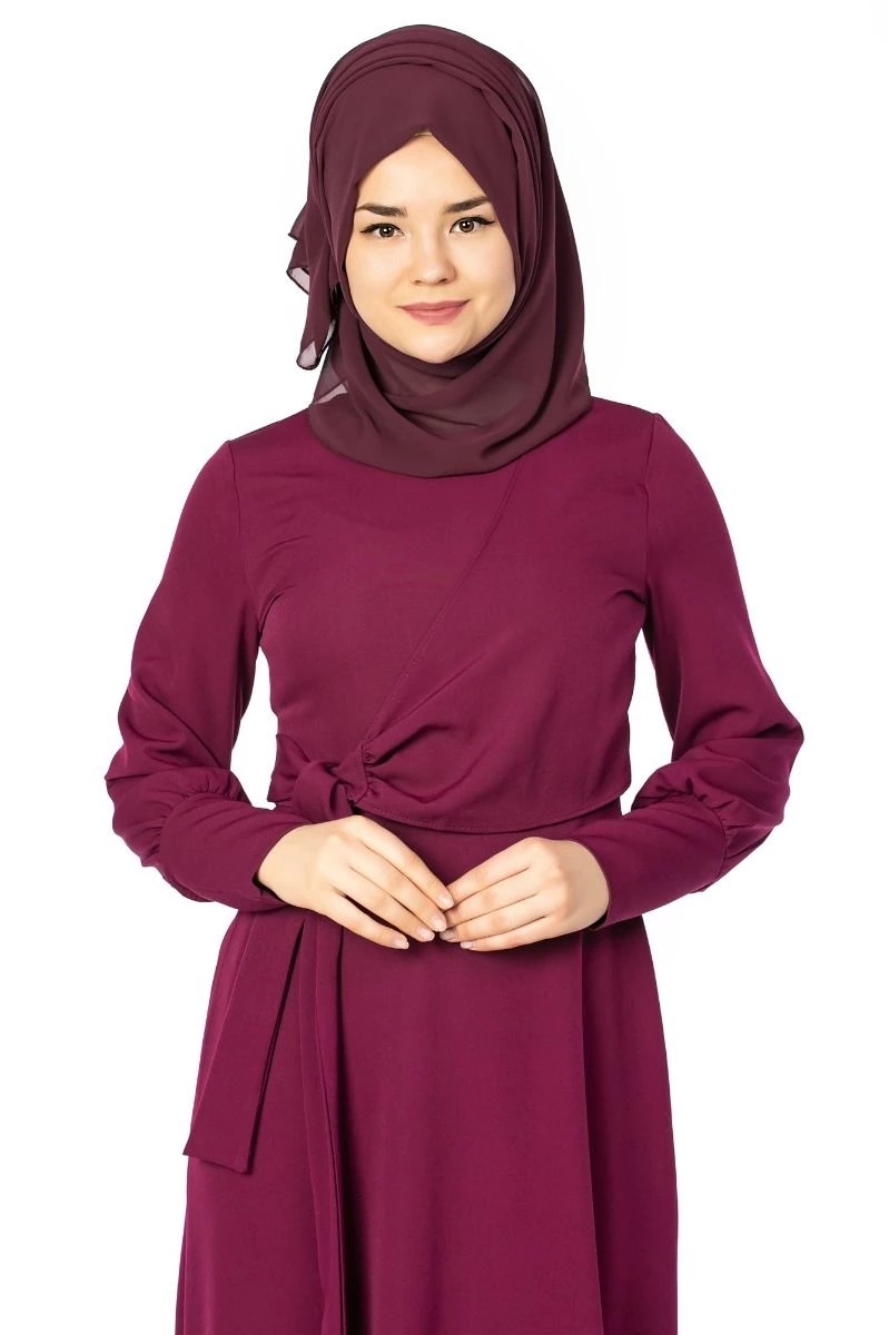 Geniş Kol Manşetli Tesettür Elbise Mürdüm 38