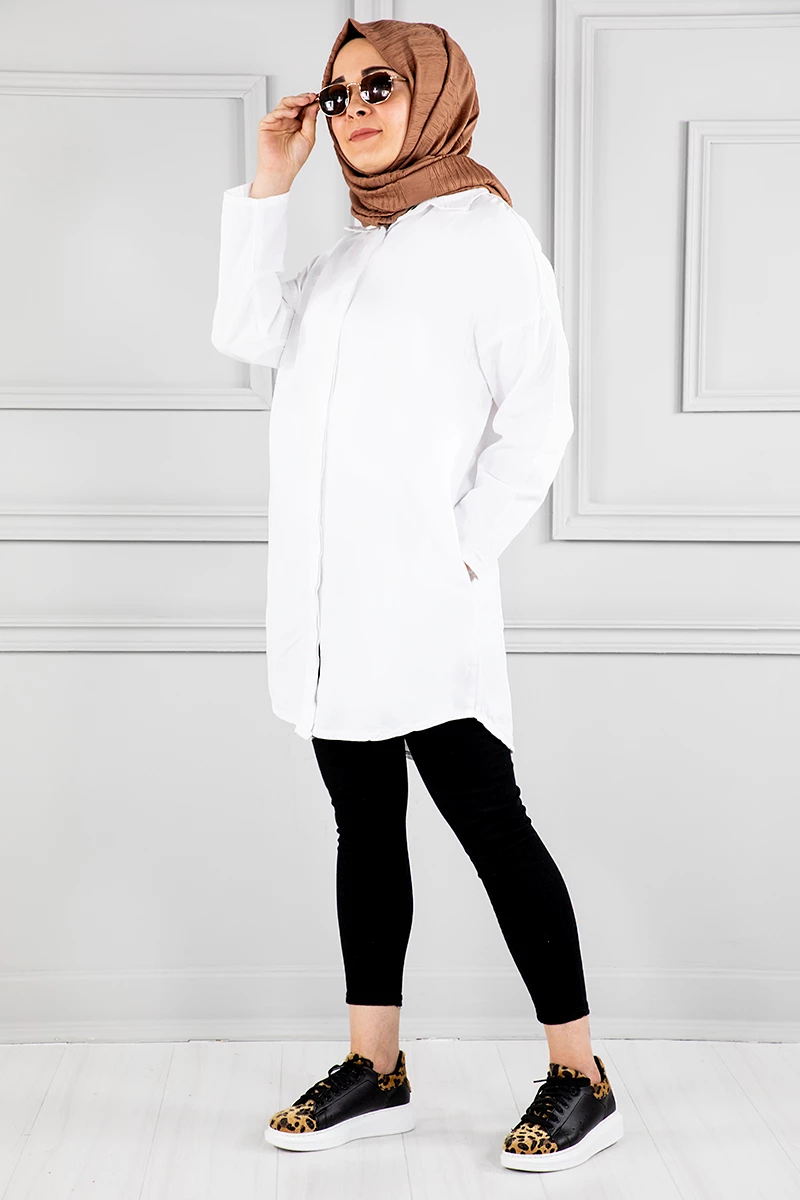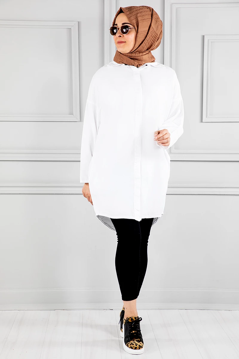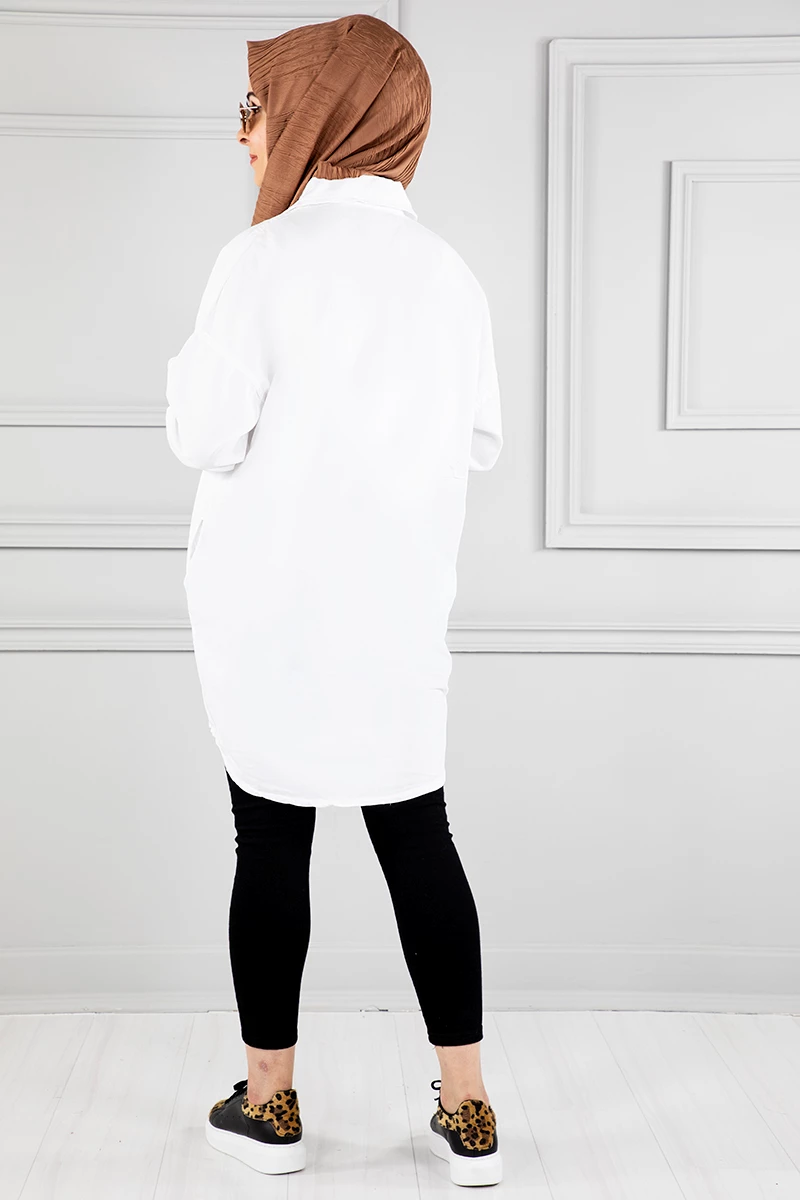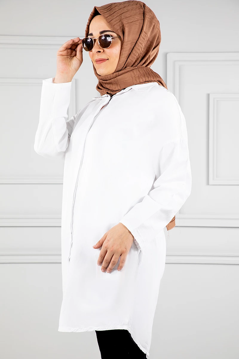 Gömlek Yaka Çıtçıtlı Tesettür Tunik MLD1012 Beyaz S-M