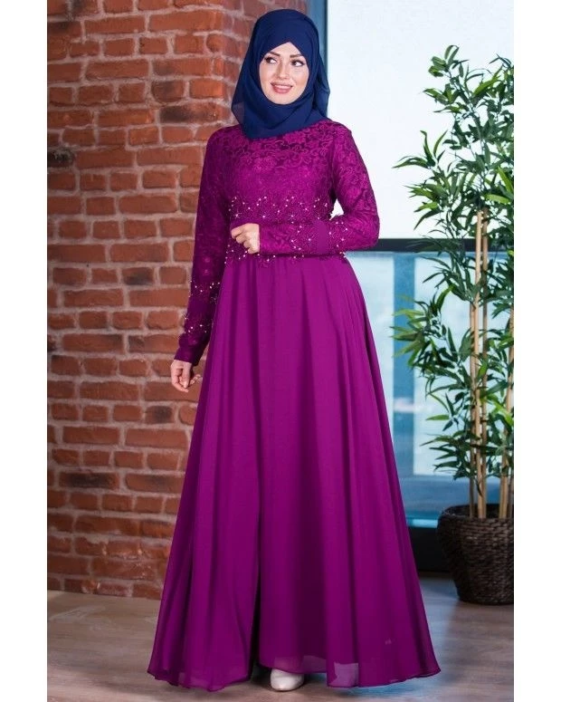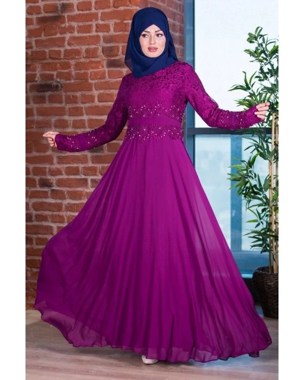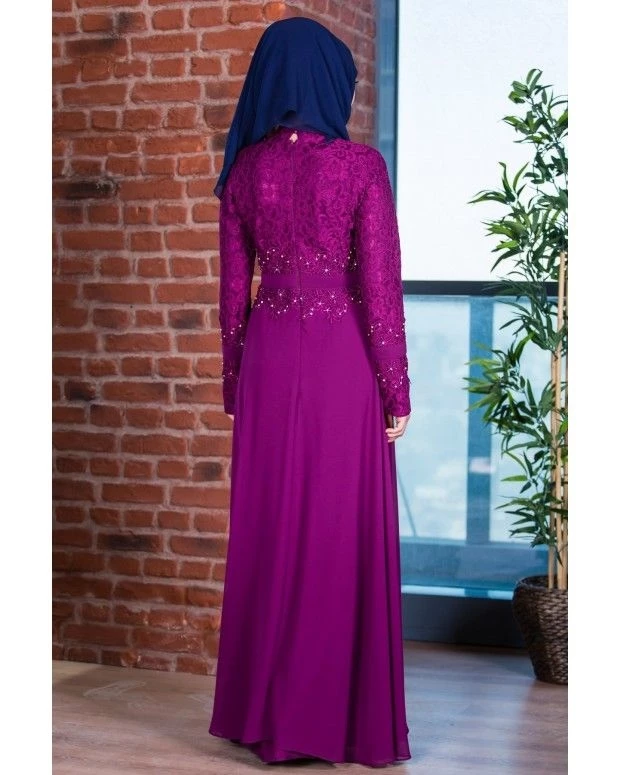 Güpür Detaylı Tesettür Abiye Elbise MÜRDÜM 20041 38