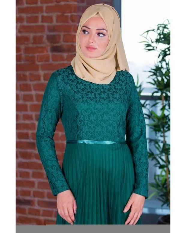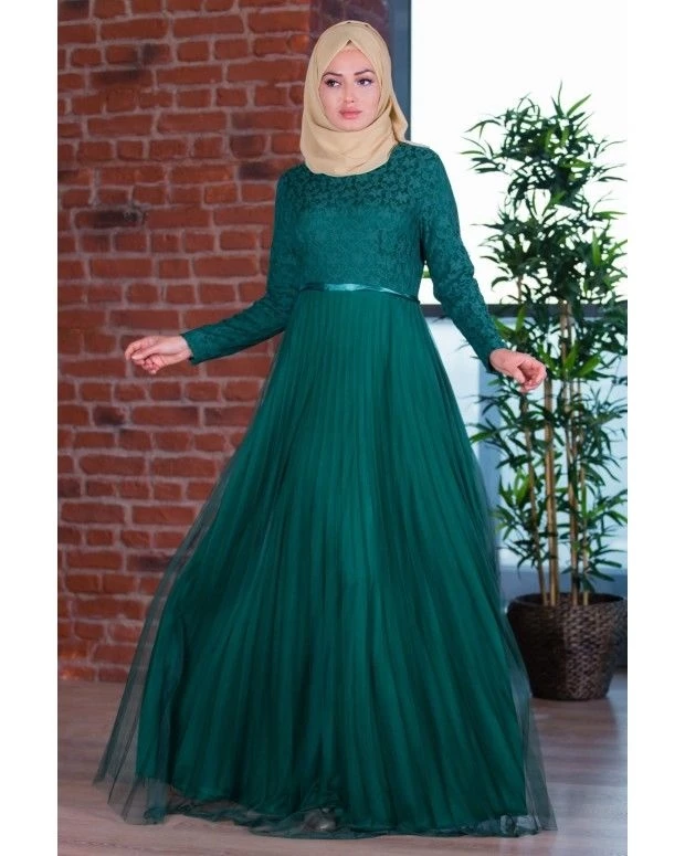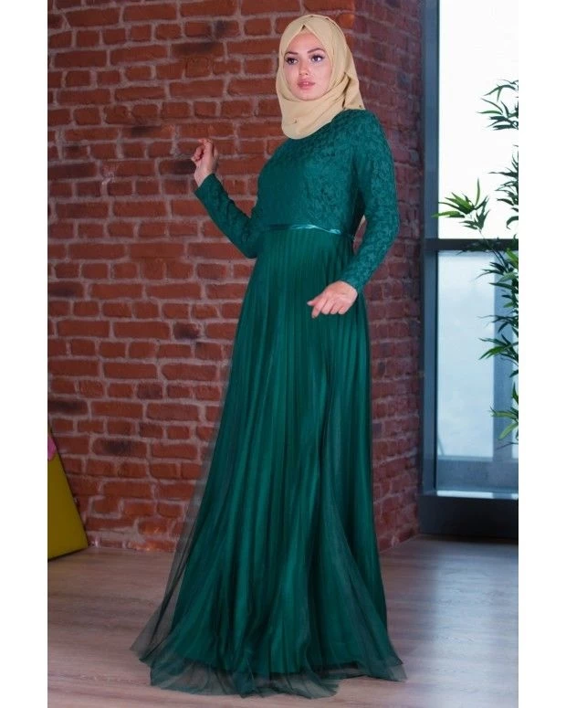 Güpür Detaylı Tüllü Abiye Elbise ZÜMRÜT 20034 38