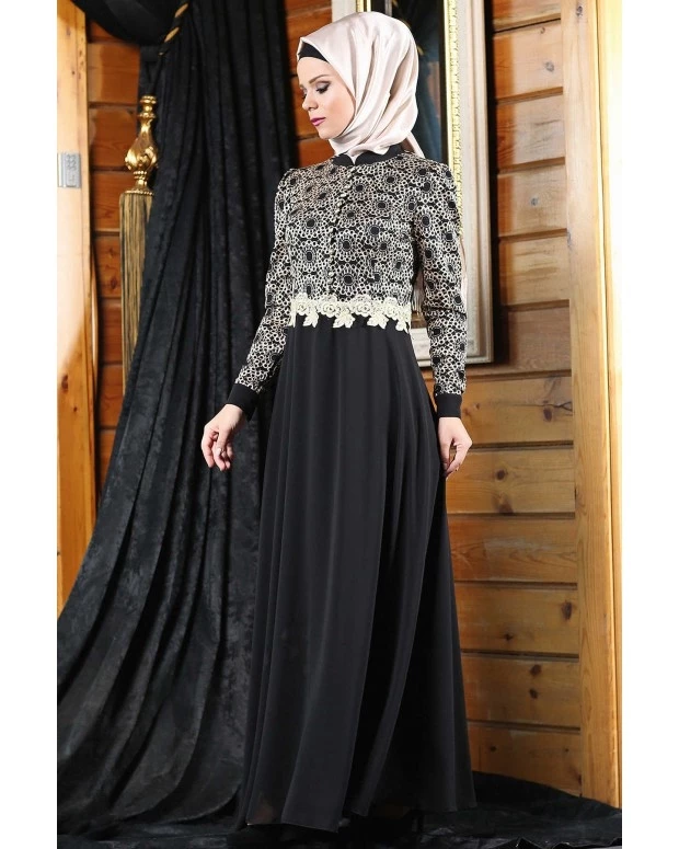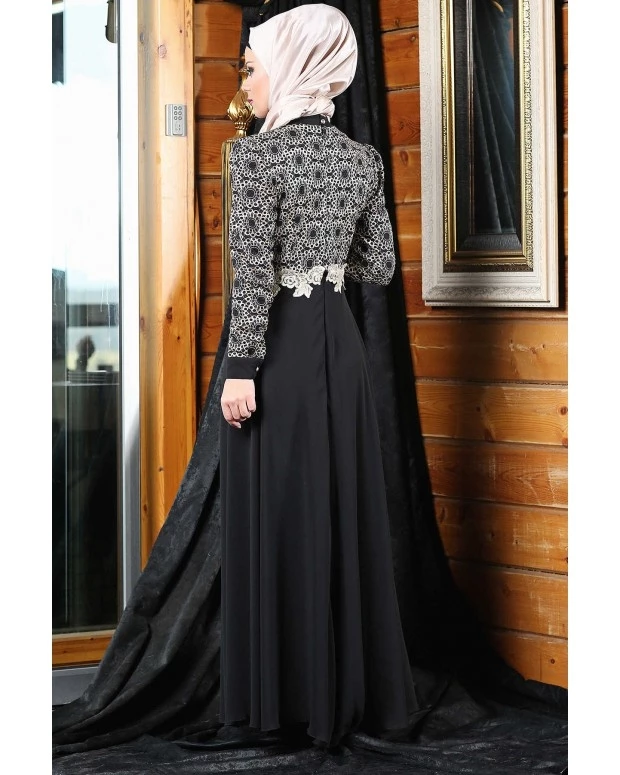Güpürlü Tesettür Abiye Siyah 387 38