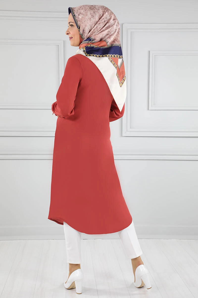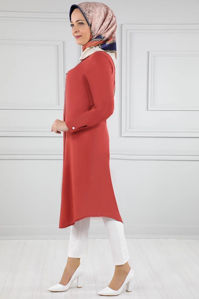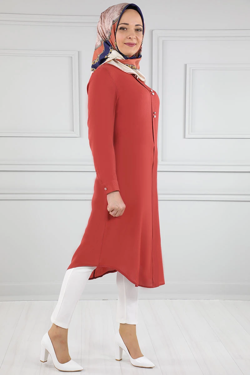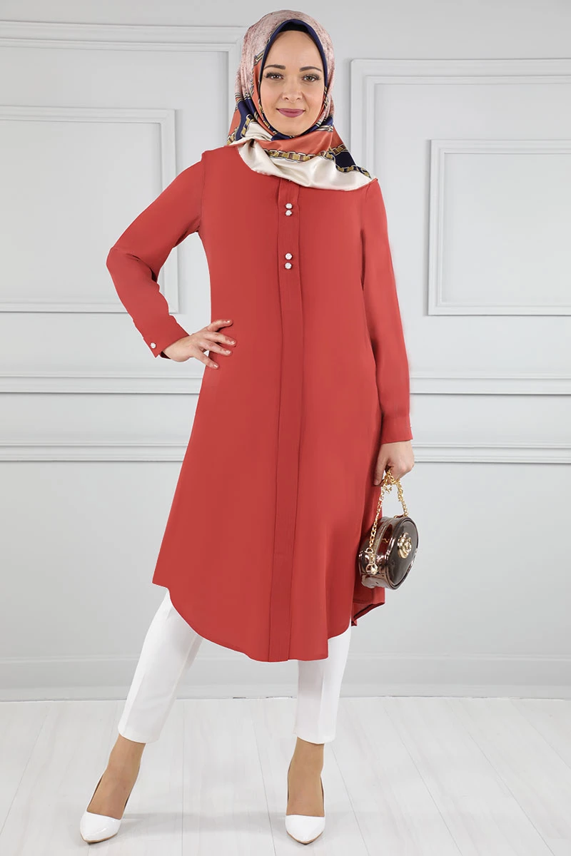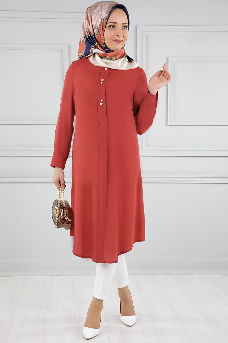 İnci Düğme Detaylı Tesettür Tunik MN30102 Kiremit 36
