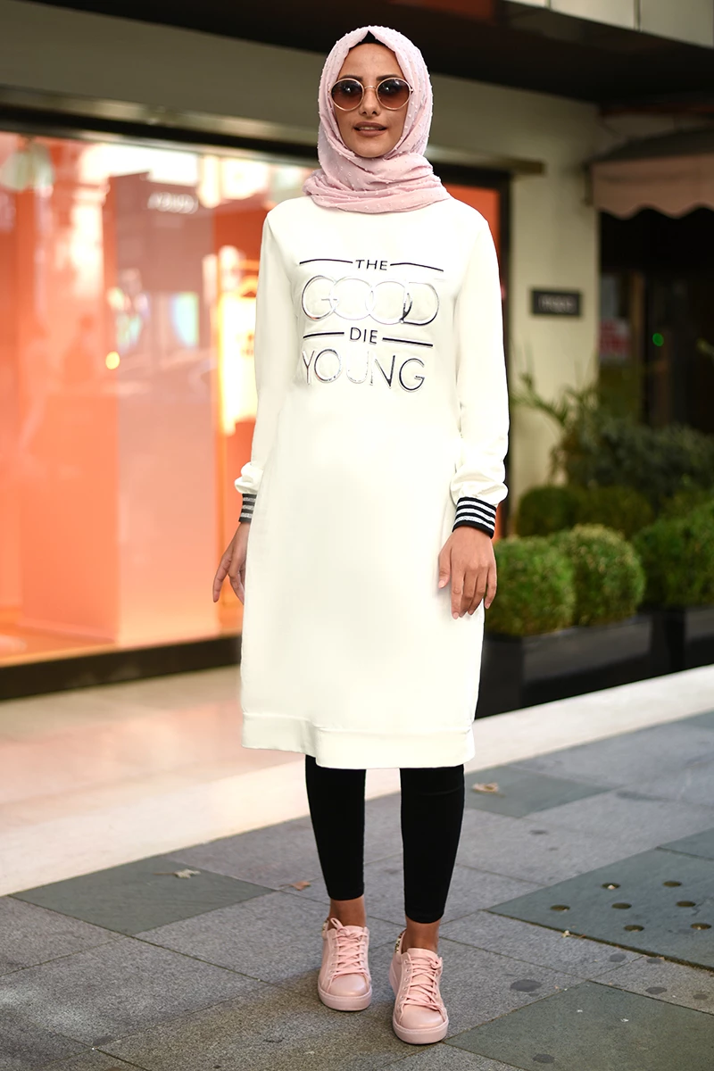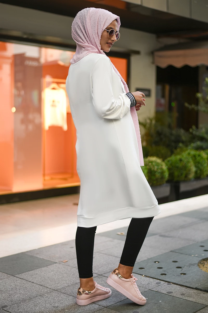 Kabartma Baskılı Tesettür Tunik NSA5530 Beyaz S