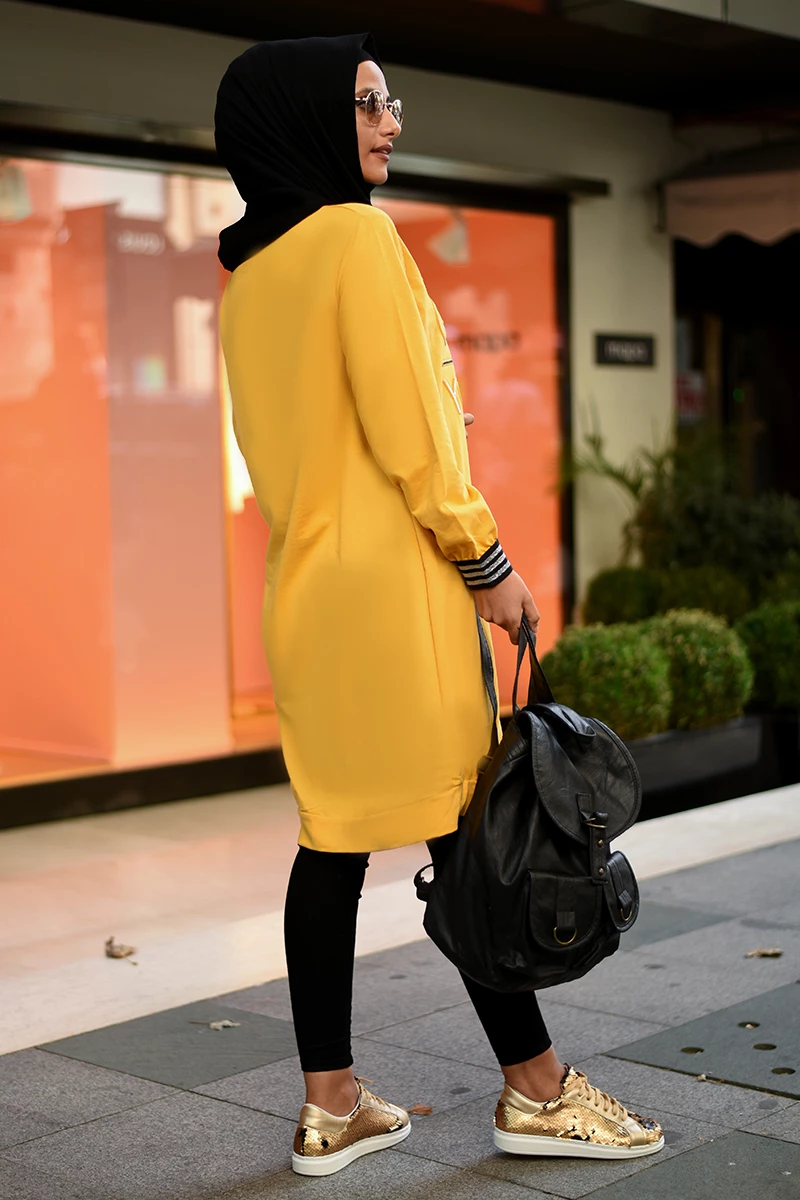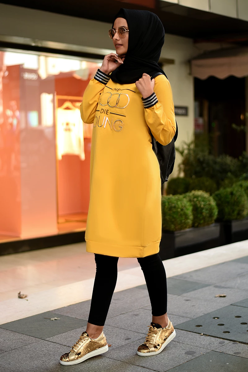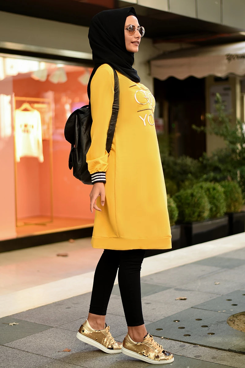 Kabartma Baskılı Tesettür Tunik NSA5530 Sarı S