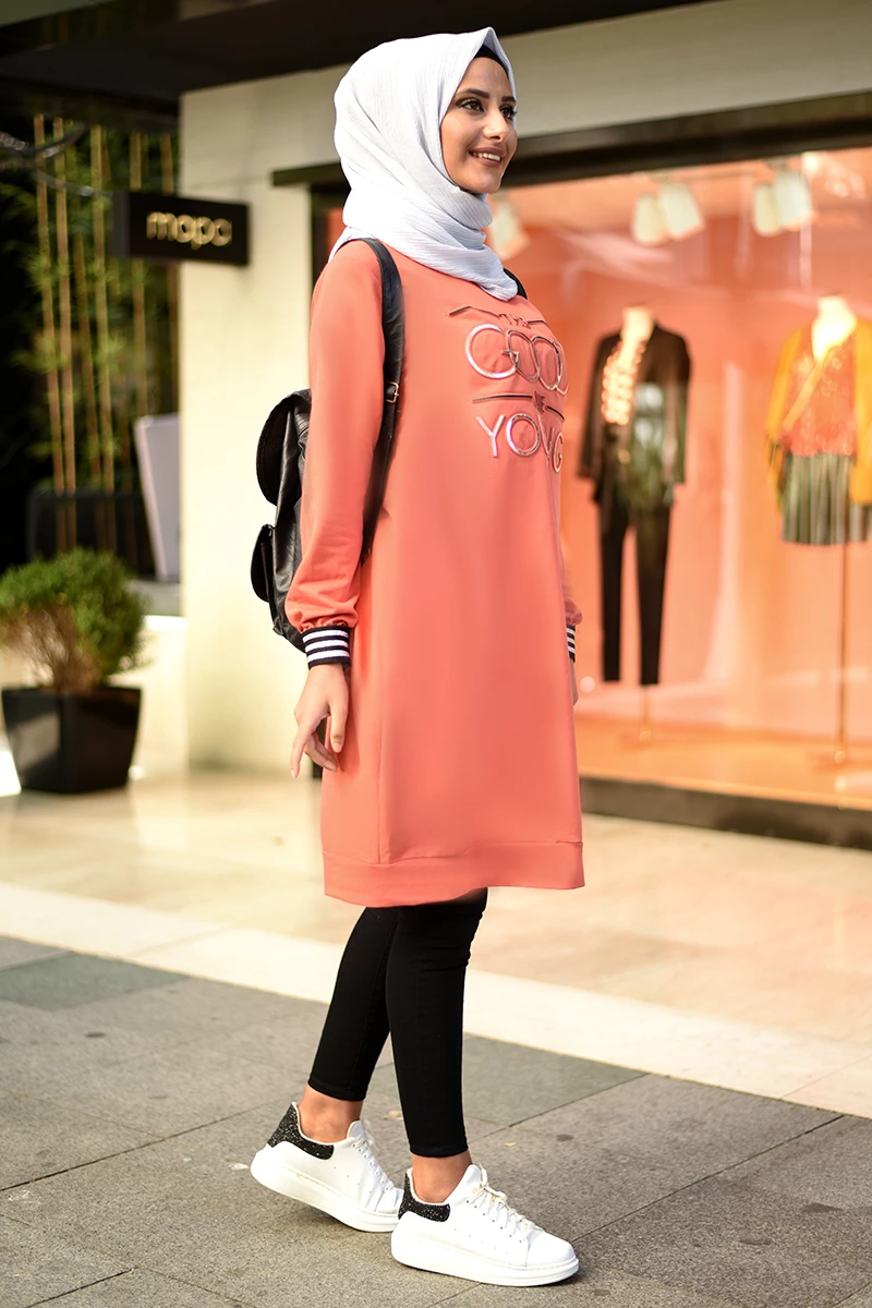 Kabartma Baskılı Tesettür Tunik NSA5530 Somon S