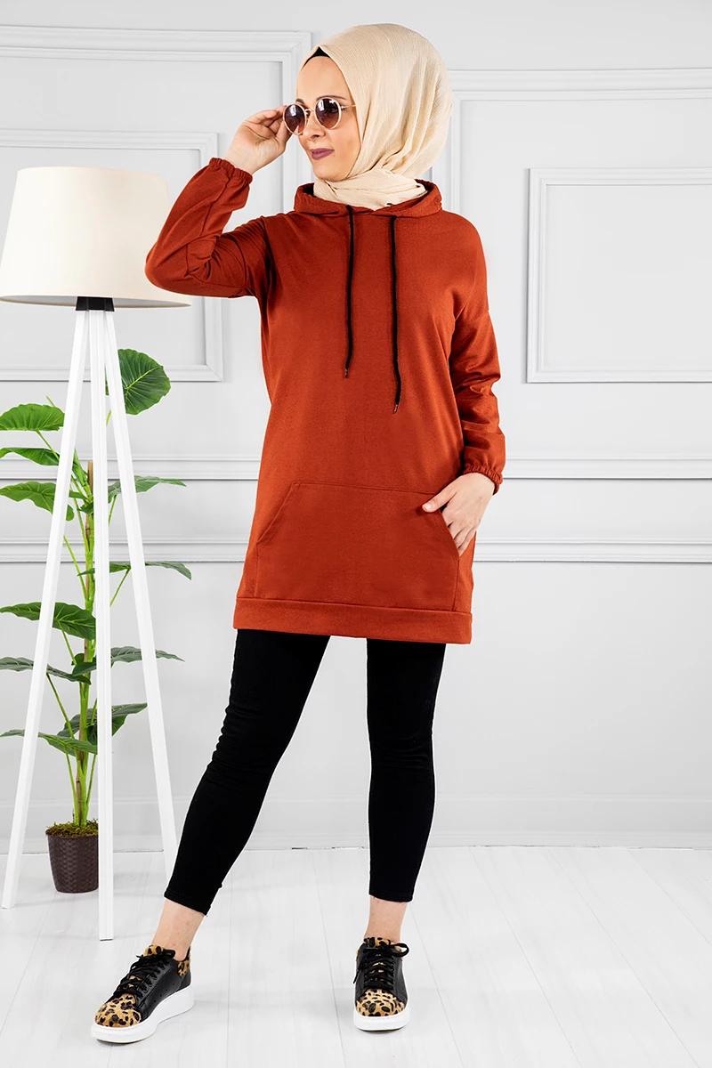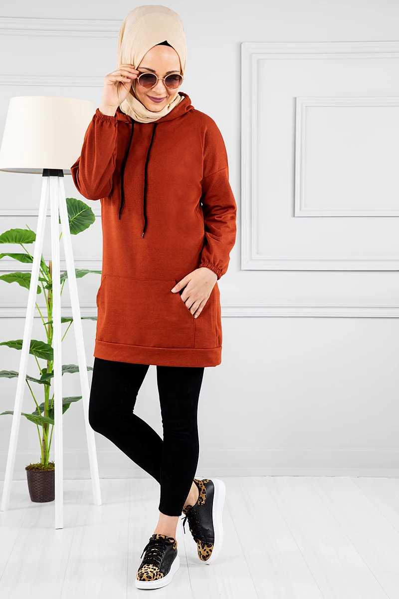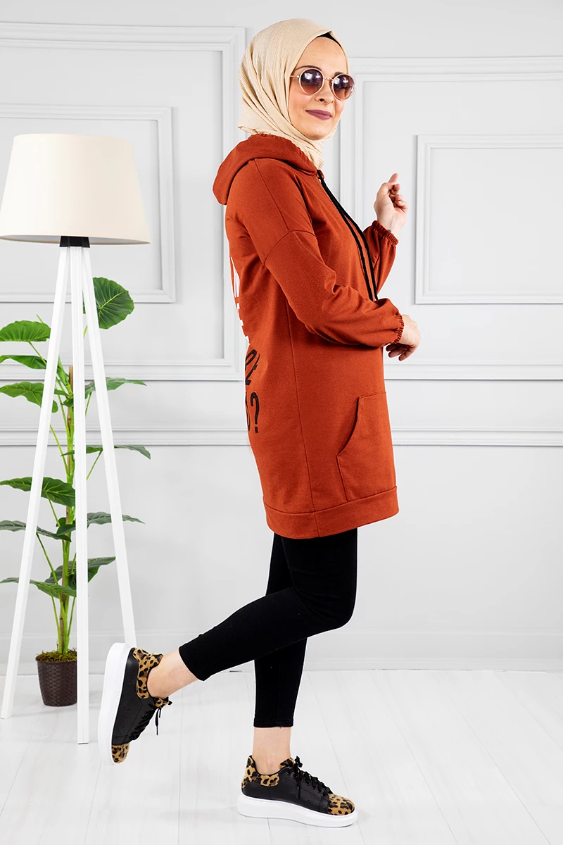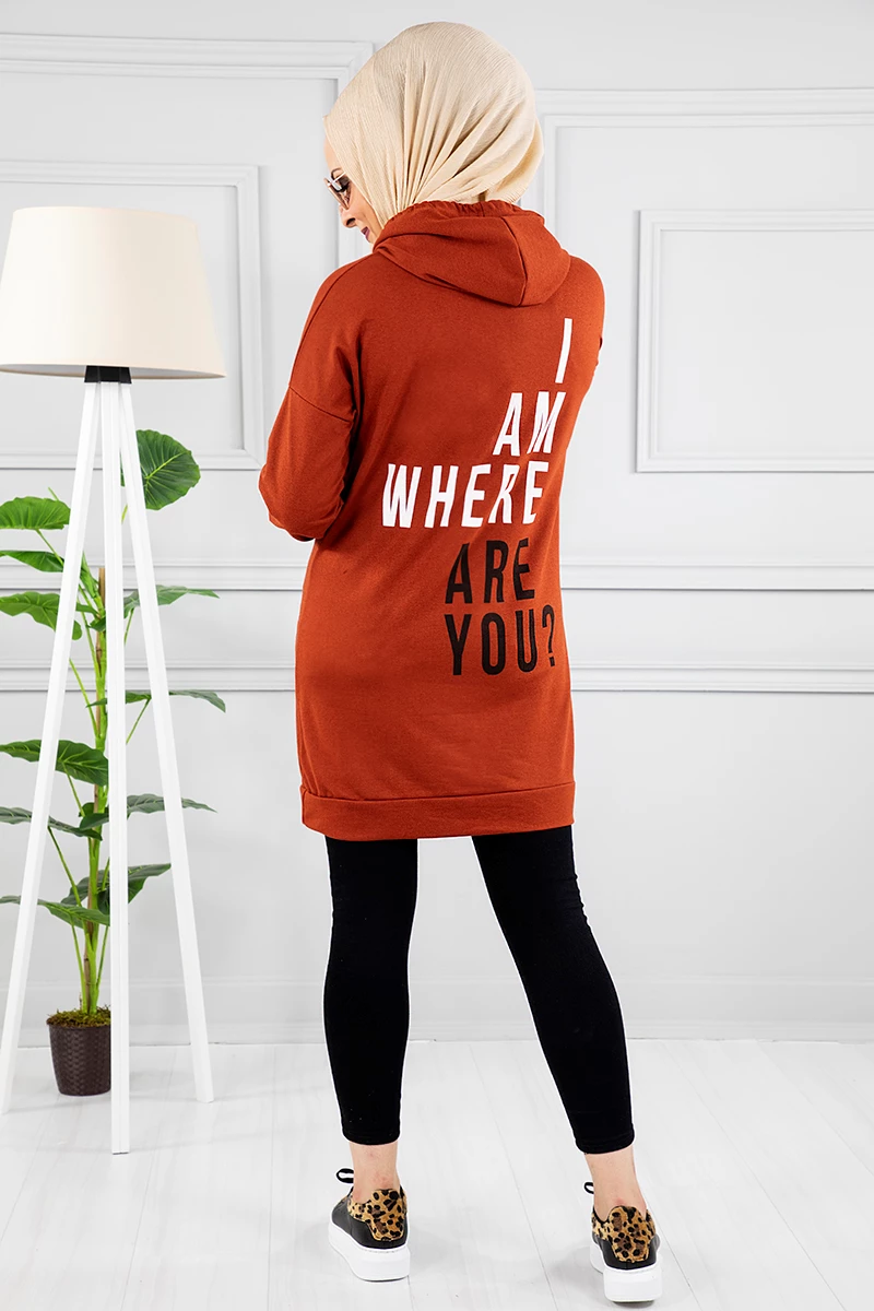 Kapşonlu Arkası Baskılı Sweat-Tunik Kiremit STD(38-48)