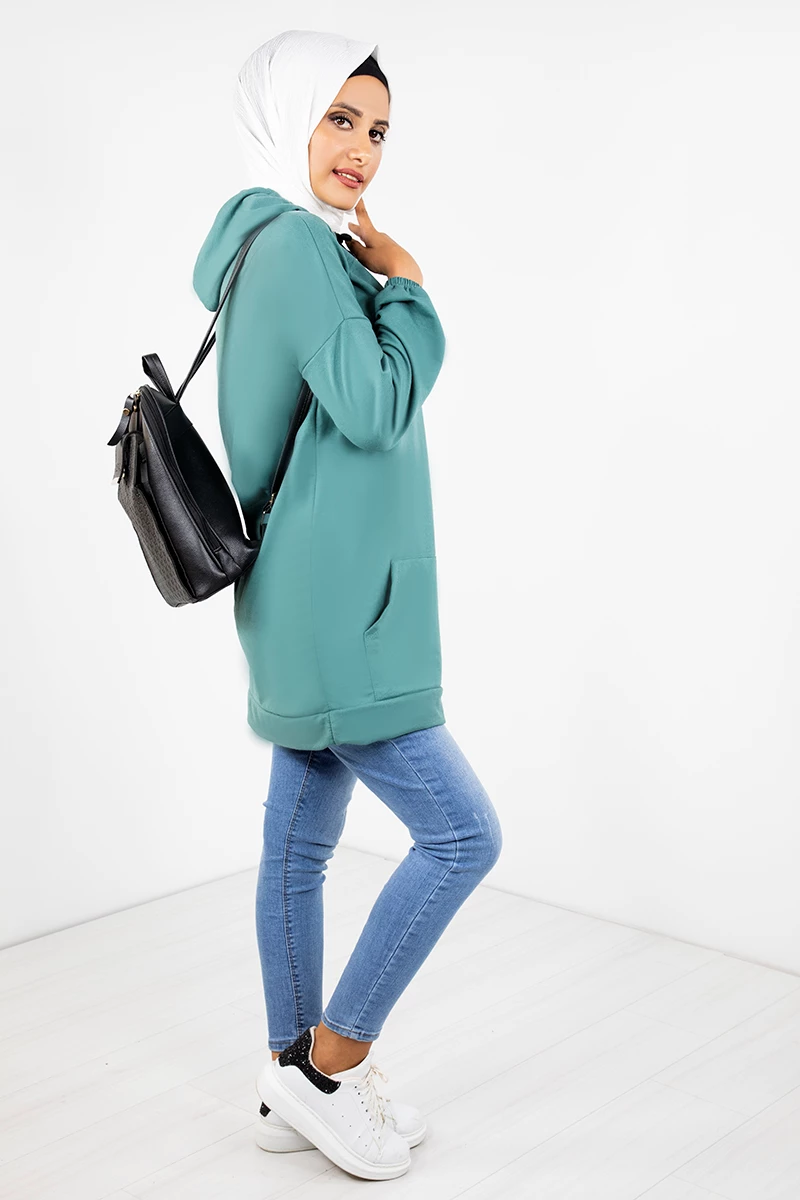 Kapşonlu Baskılı Tesettür Tunik EMR3066 Mint STD(36-42)