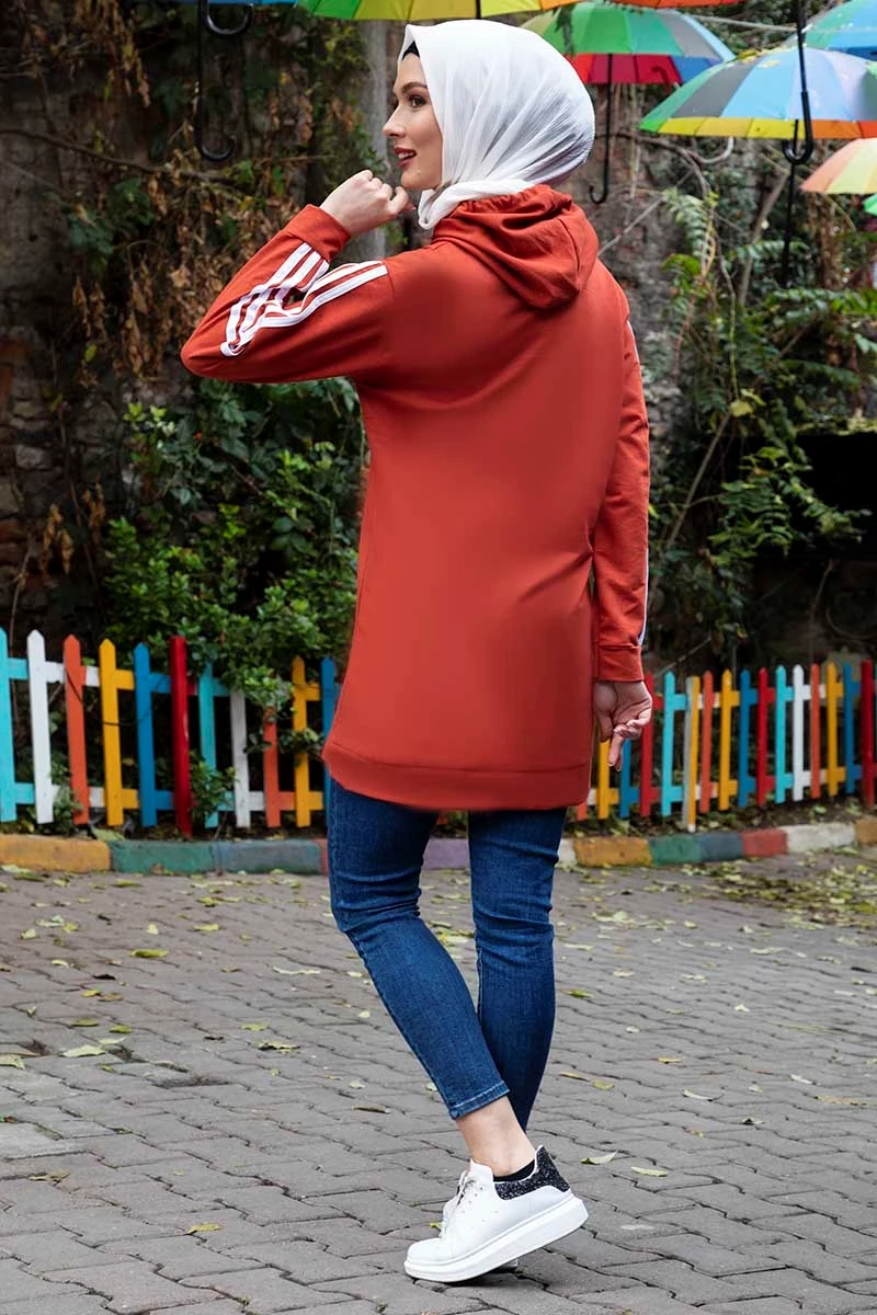 Kapşonlu Sweat-Tunik EMR1025 Kiremit04 STD(38-48)