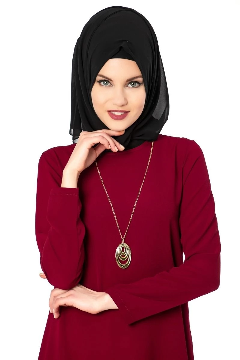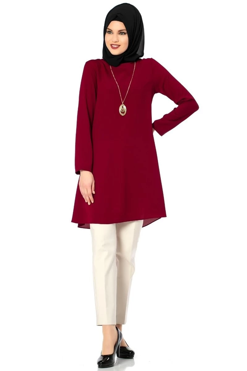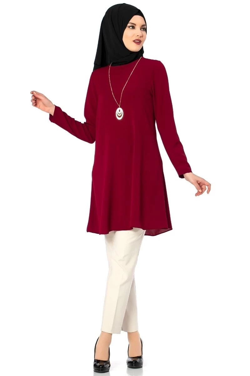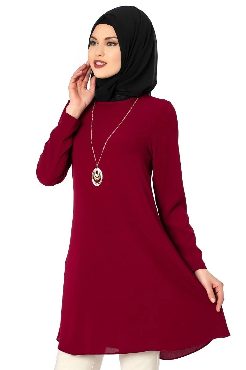 Kısa Kolyeli Tesettür Tunik Bordo 38
