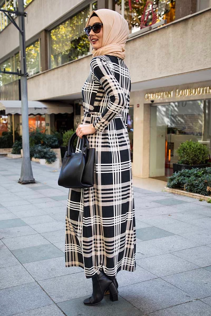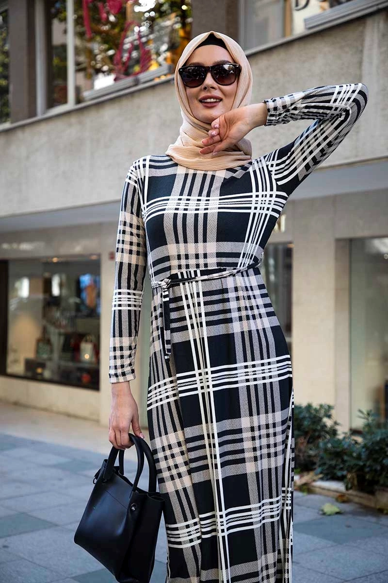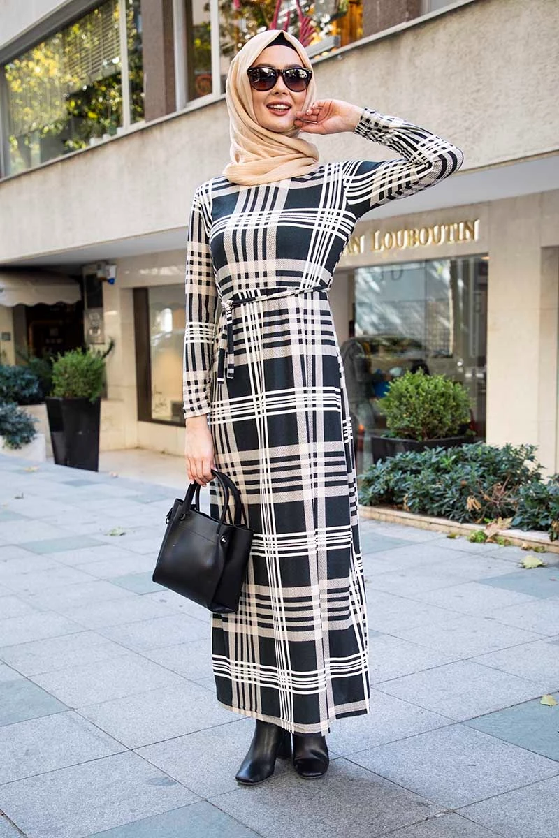 Needion - Kolları Büzgülü Beli Kuşaklı Tesettür Elbise AZ1015ELKM L