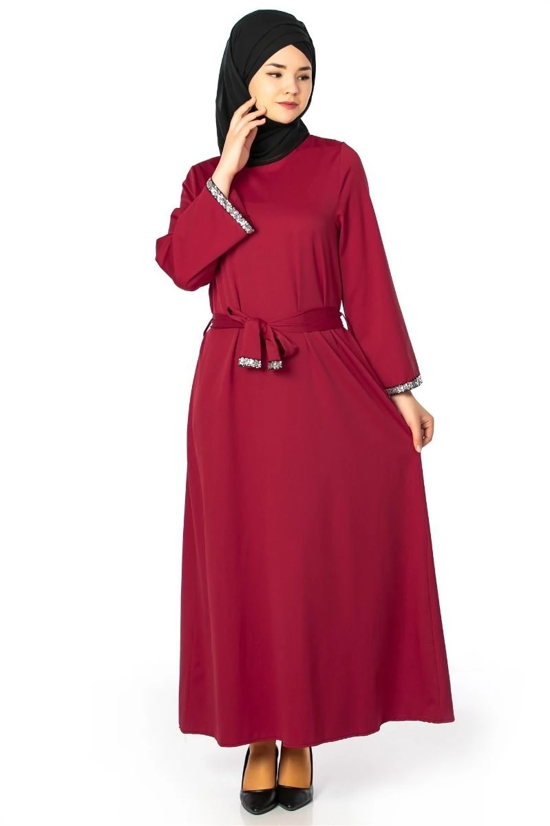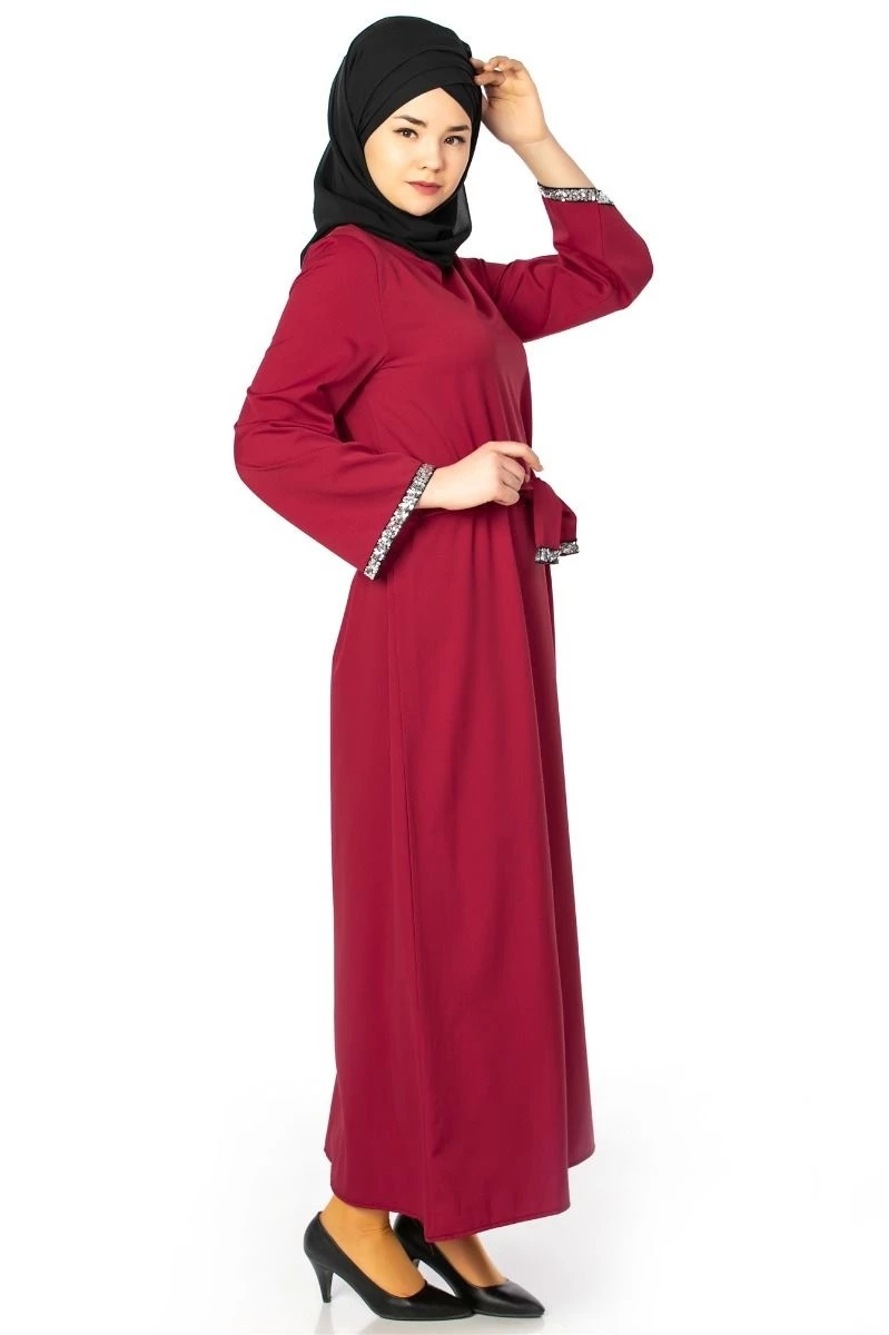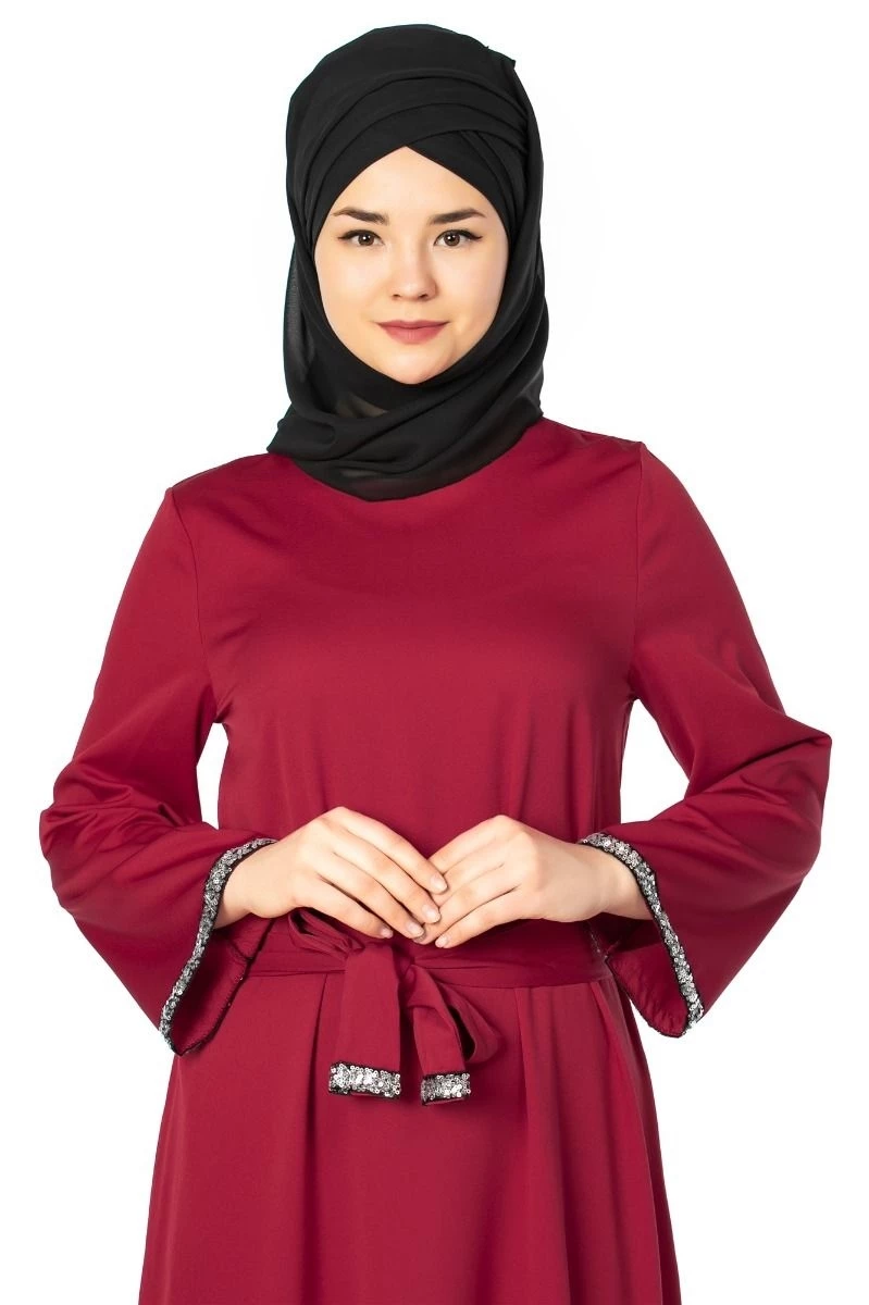 Ürünümüz yeni sezon ürünlerinden olup Elbisenin bilek kısmı ve seyyar kemer ucu pul payet detaylıdır ürünümüz tam kalıptır.