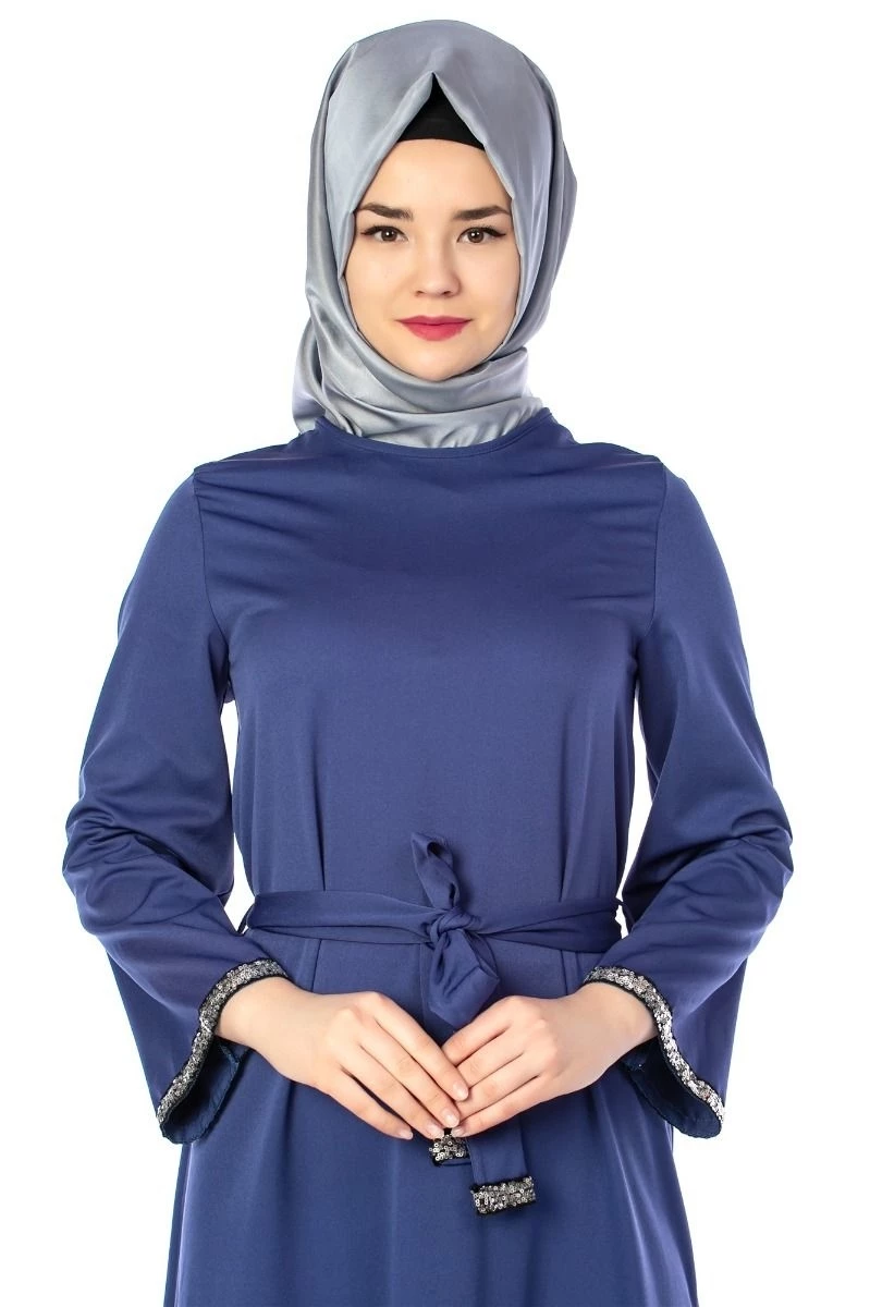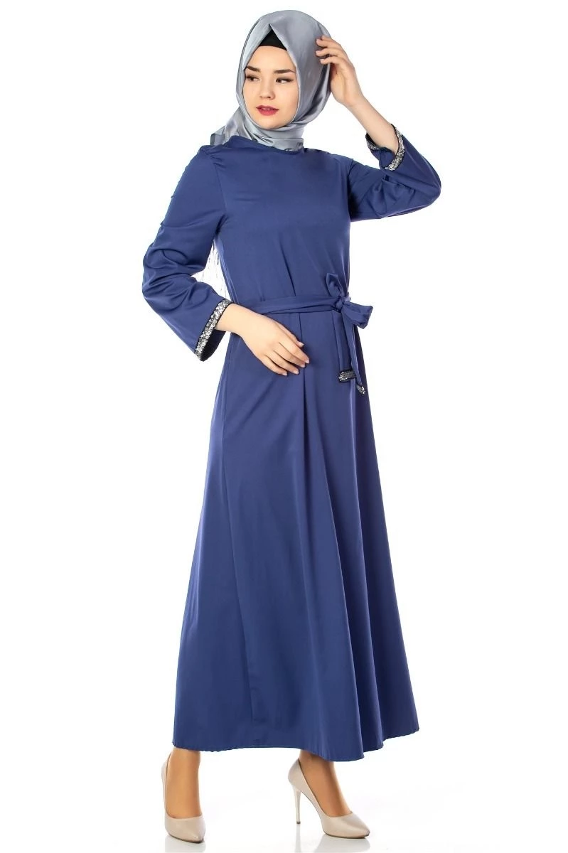 Kuşaklı Tesettür Elbise Saks 36