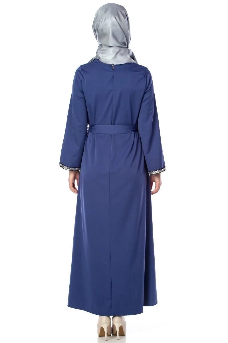 Needion - Kuşaklı Tesettür Elbise Saks 36