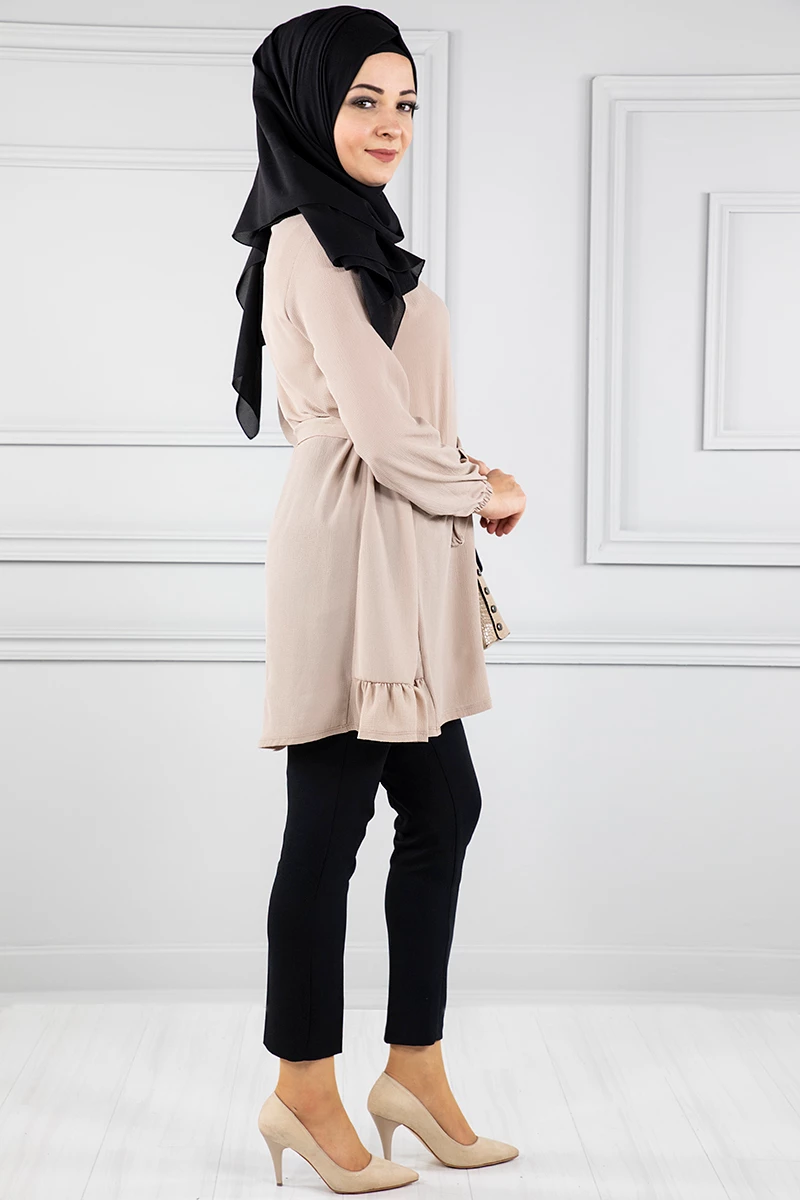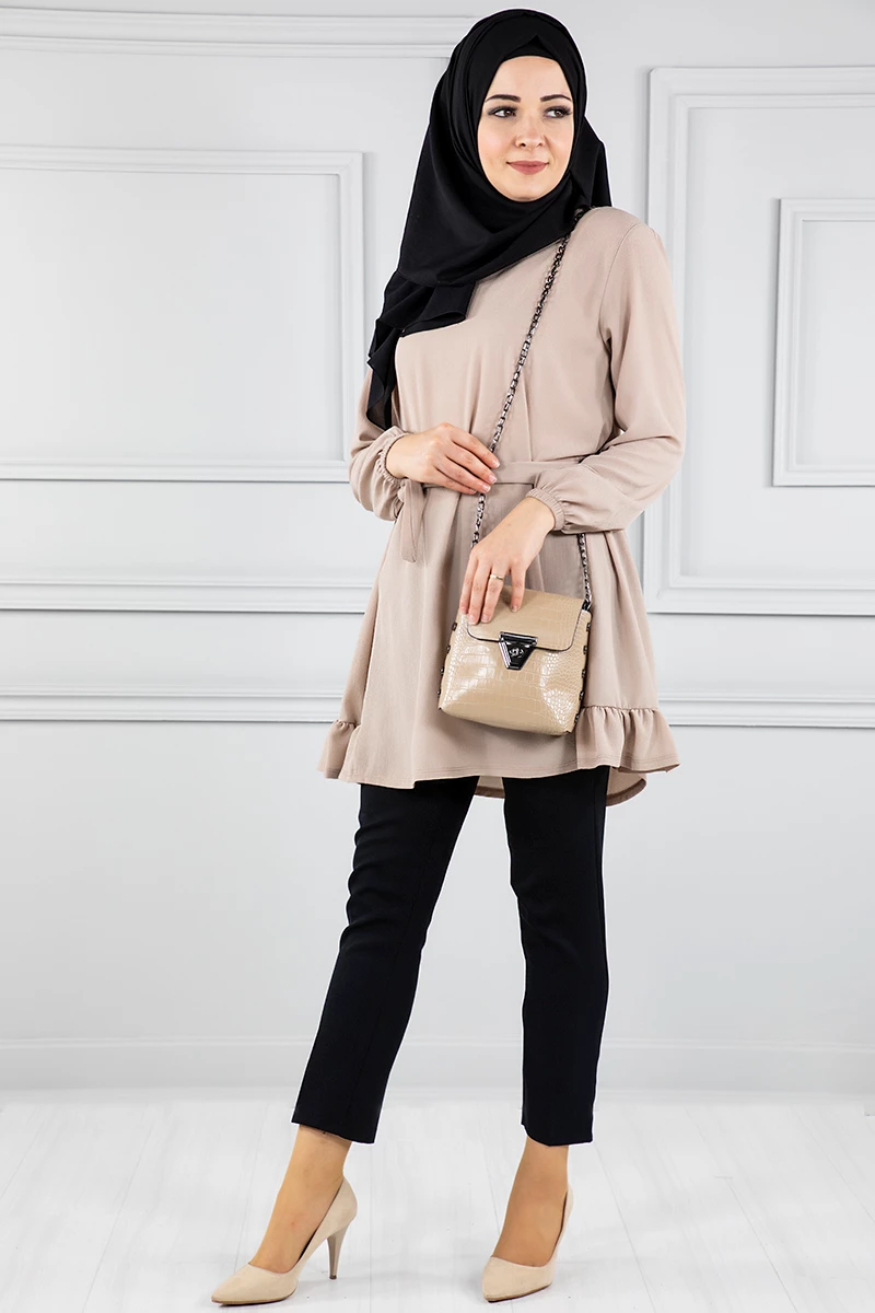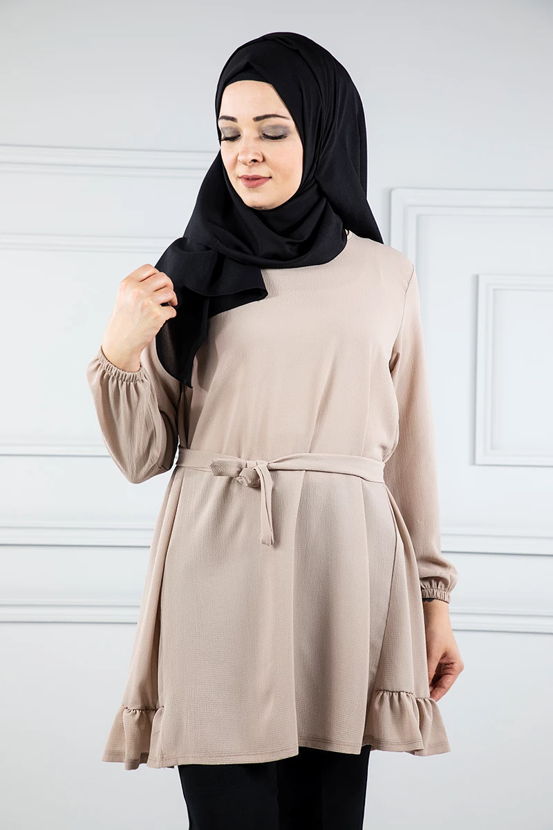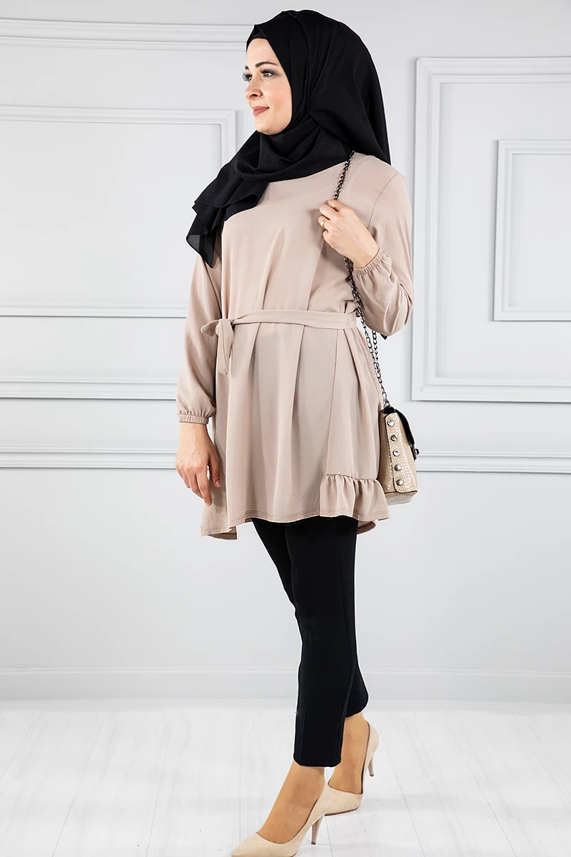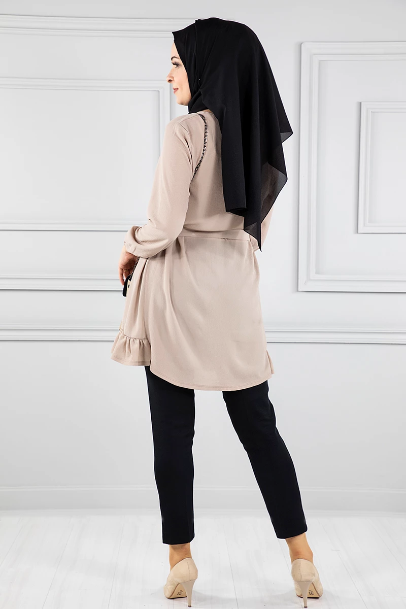 Needion - Kuşaklı Tesettür Tunik Vizon S