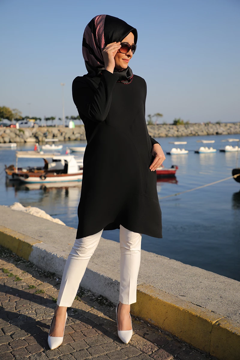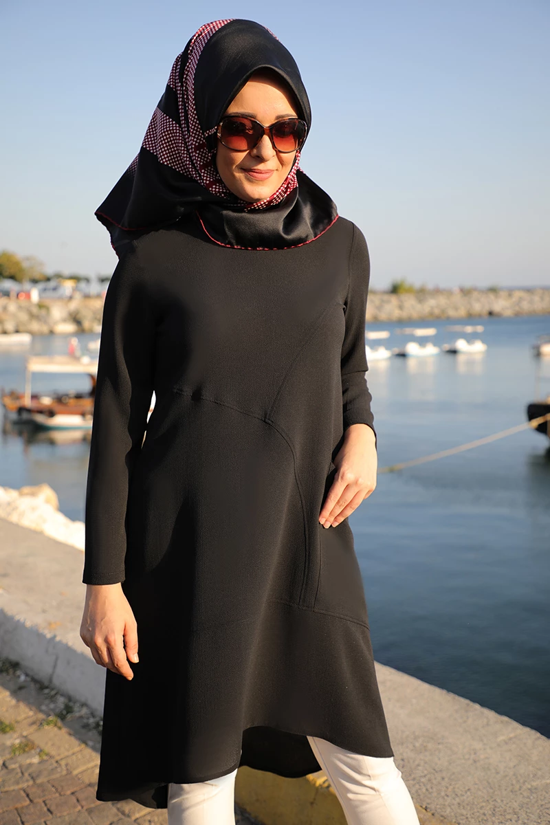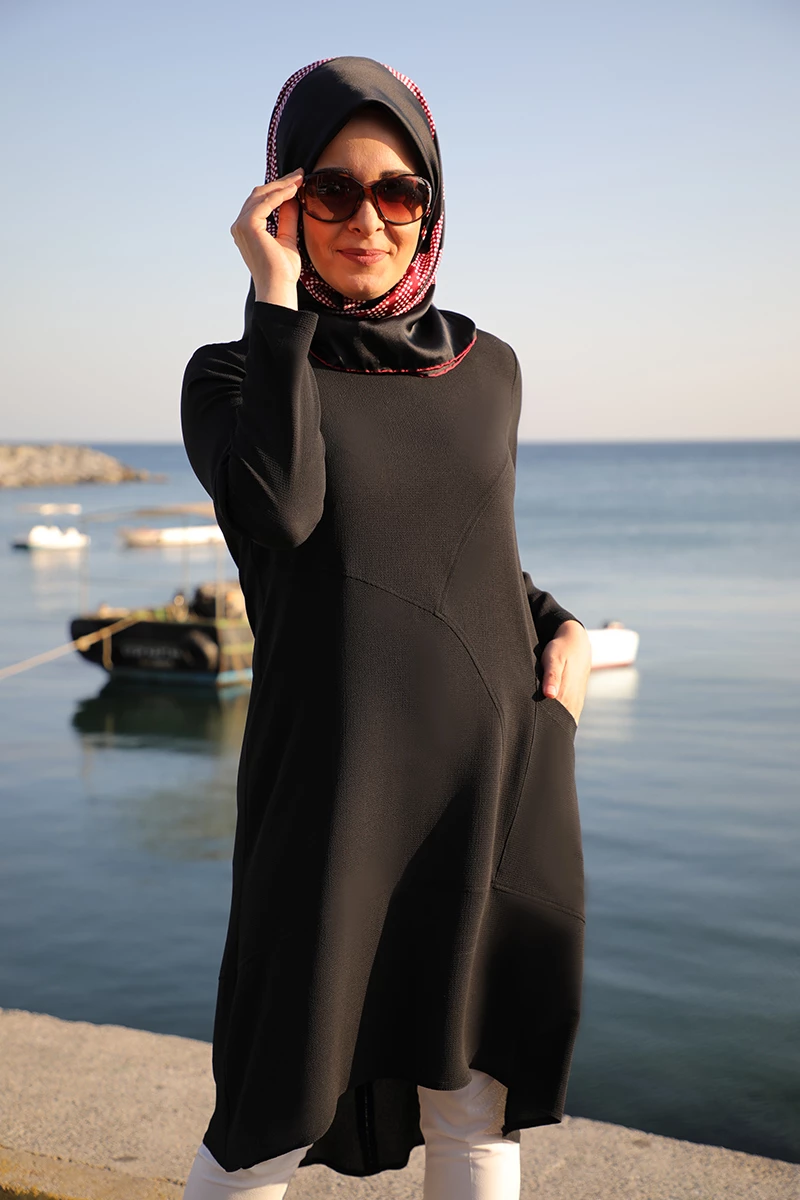 Oval Kesim Cepli Tesettür Tunik MN2002 Siyah 52