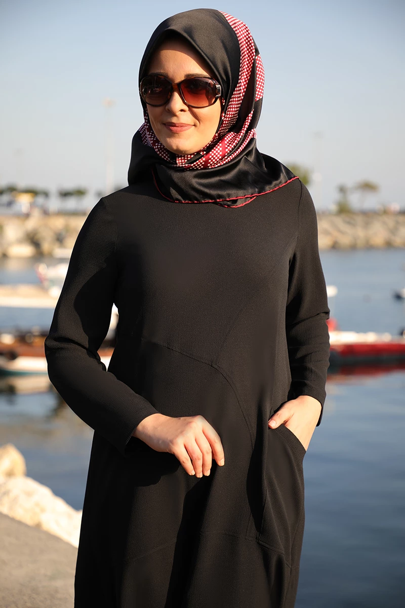 Needion - Oval Kesim Cepli Tesettür Tunik MN2002 Siyah 52