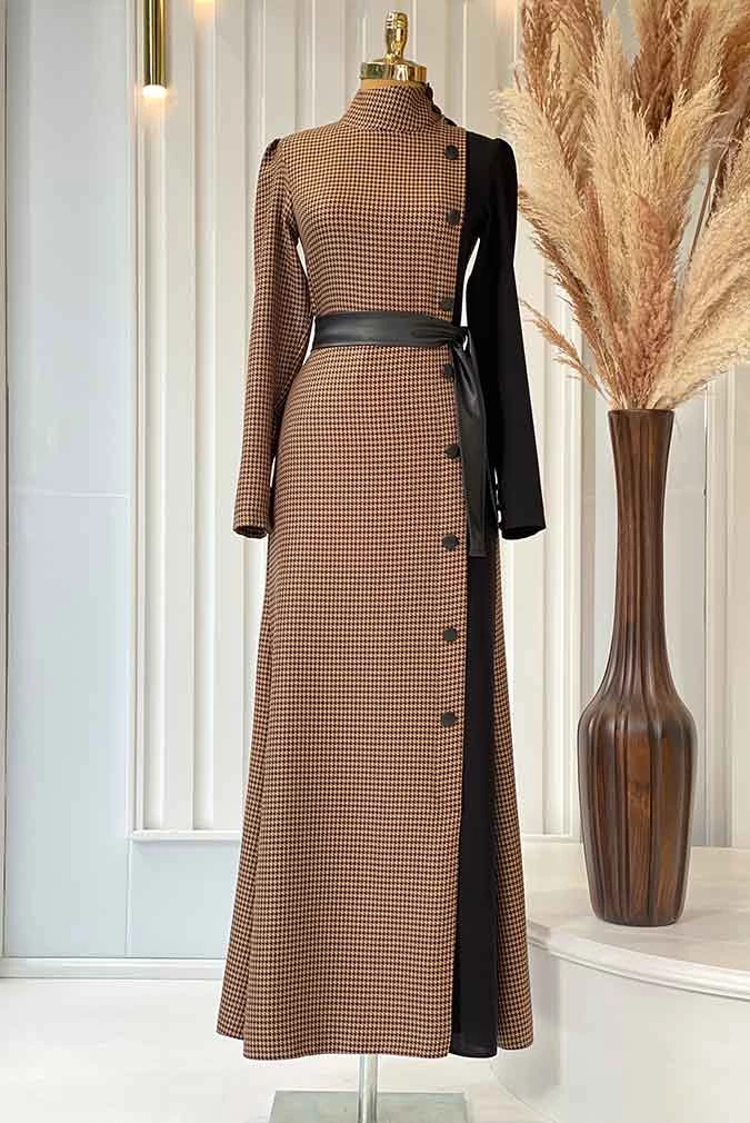 Needion - Pınar Şems - Pelit Elbise Kahverengi 40