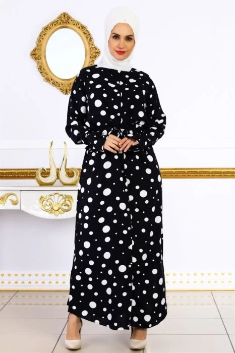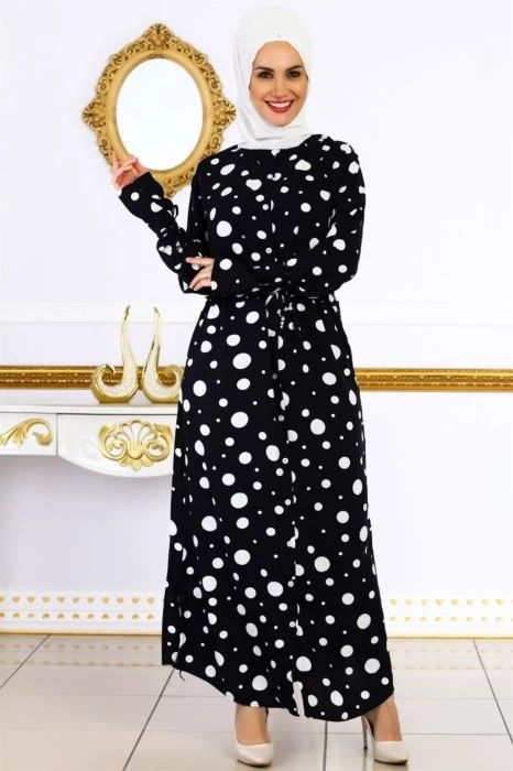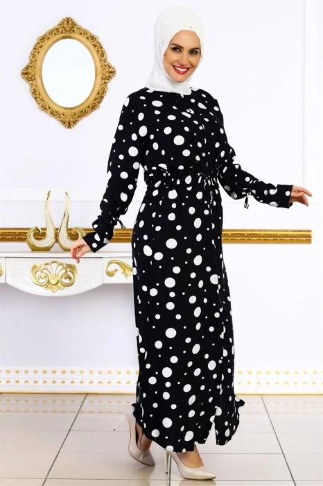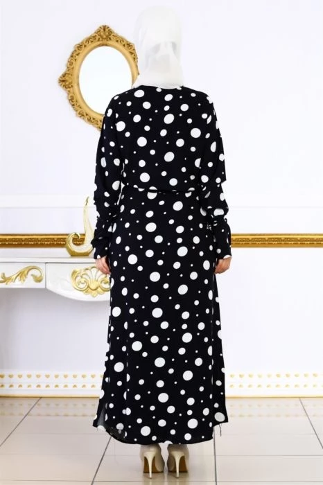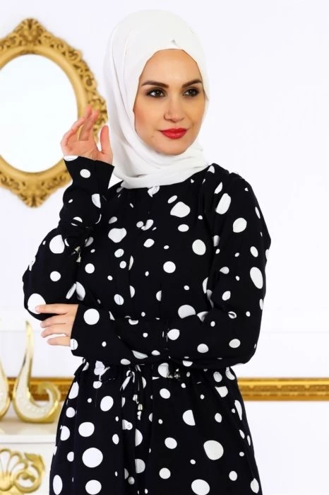 Puantiye Desenli Tesettür Elbise Lacivert S