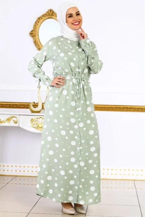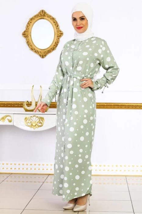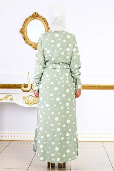 Puantiye Desenli Tesettür Elbise Yeşil S