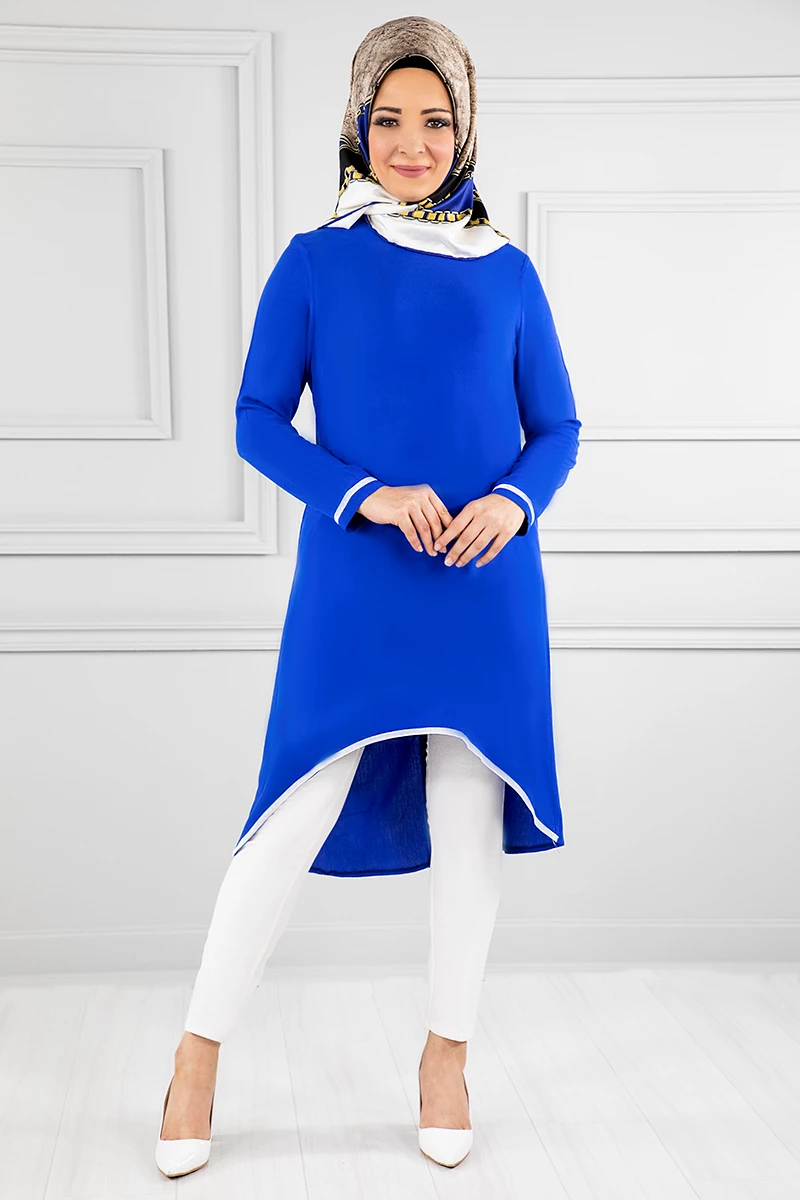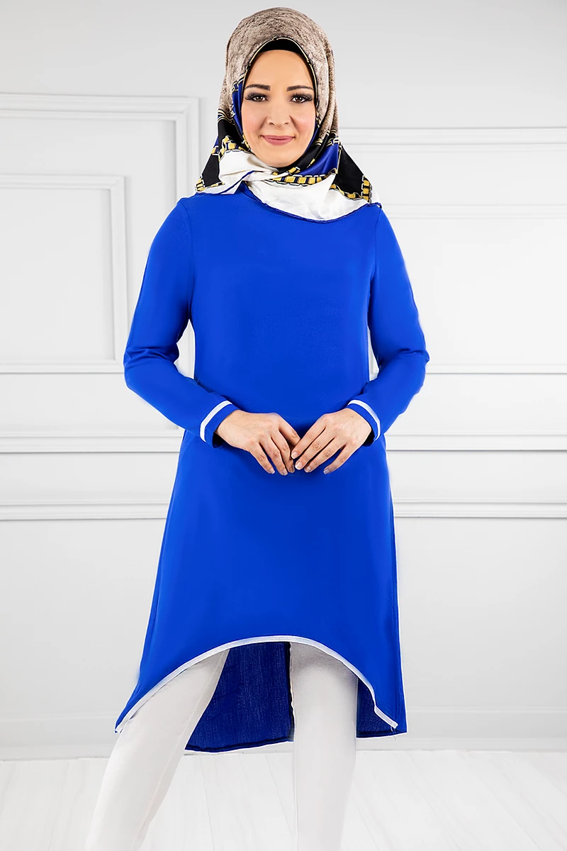 Şeritli Tesettür Tunik MN2001 Saks 38