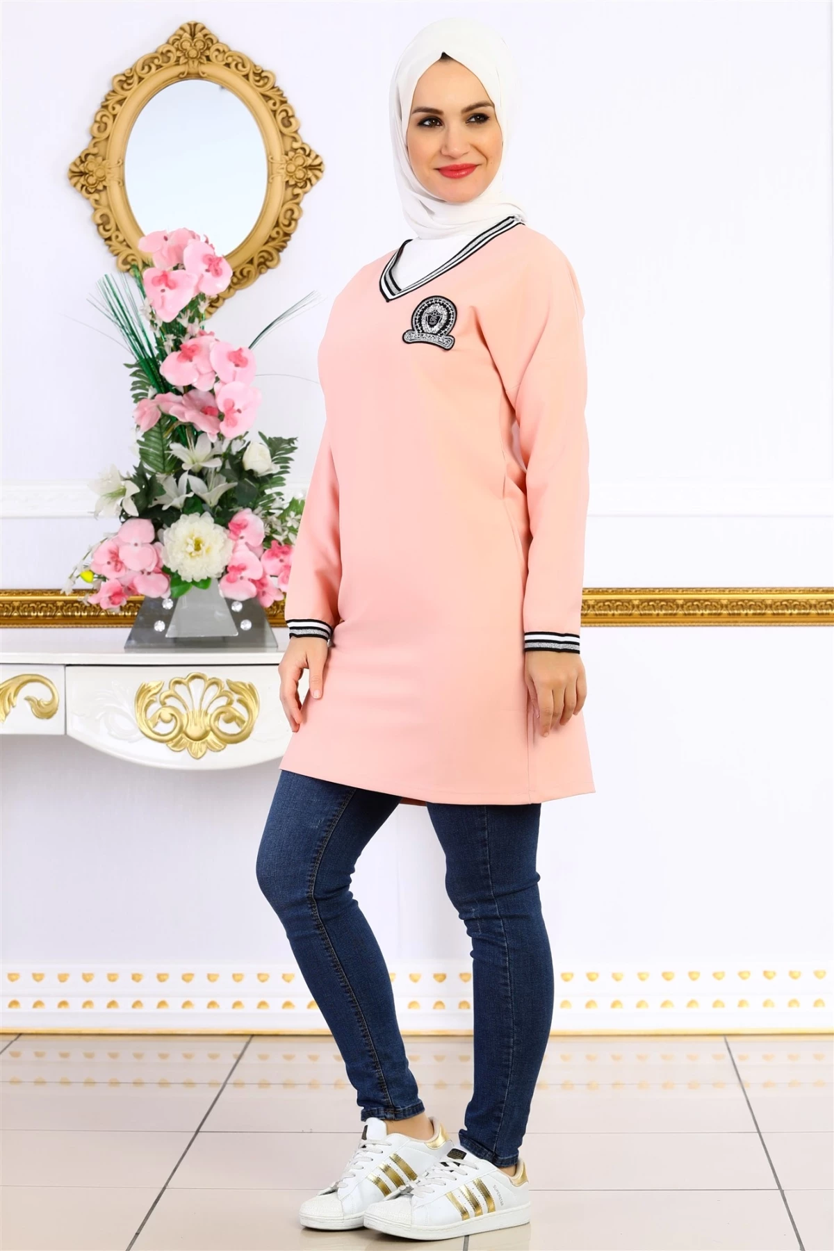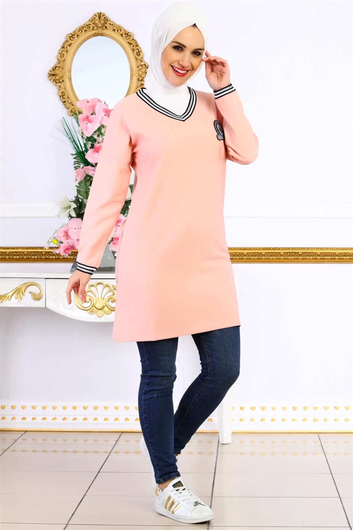 Needion - Simli V Yaka Tesettür Tunik Pudra S