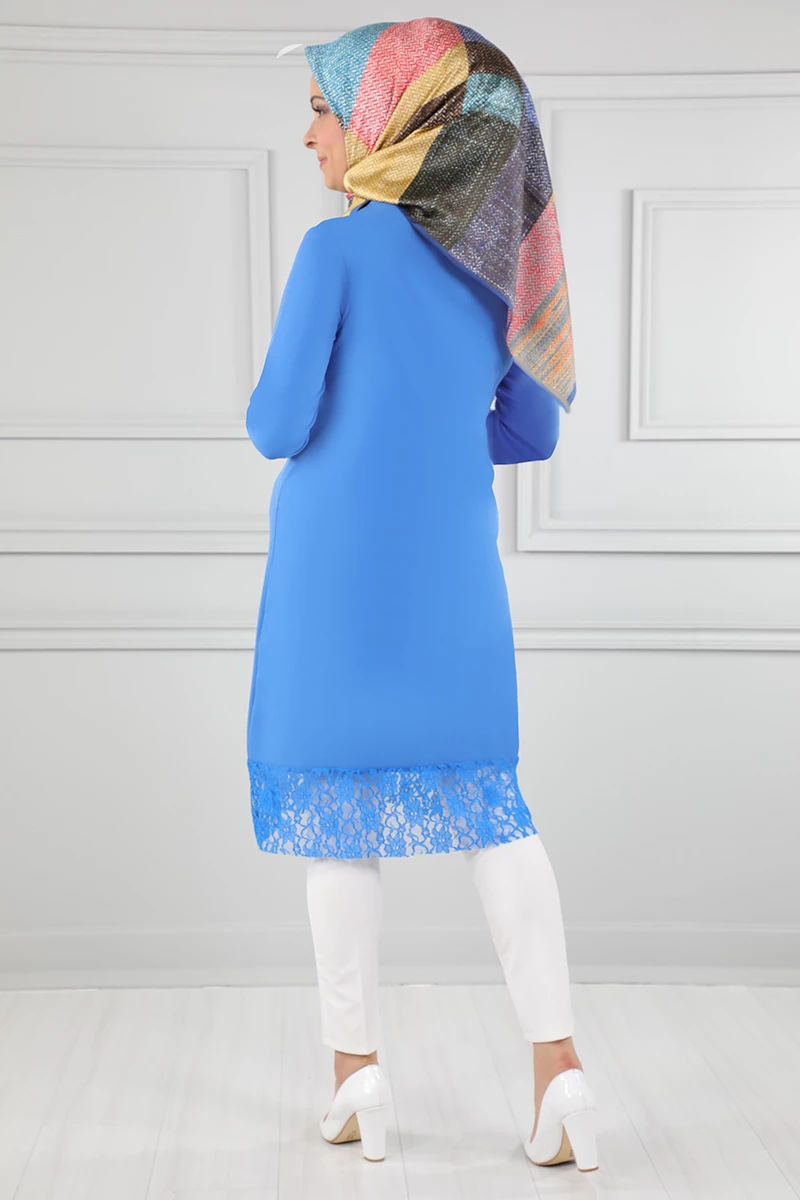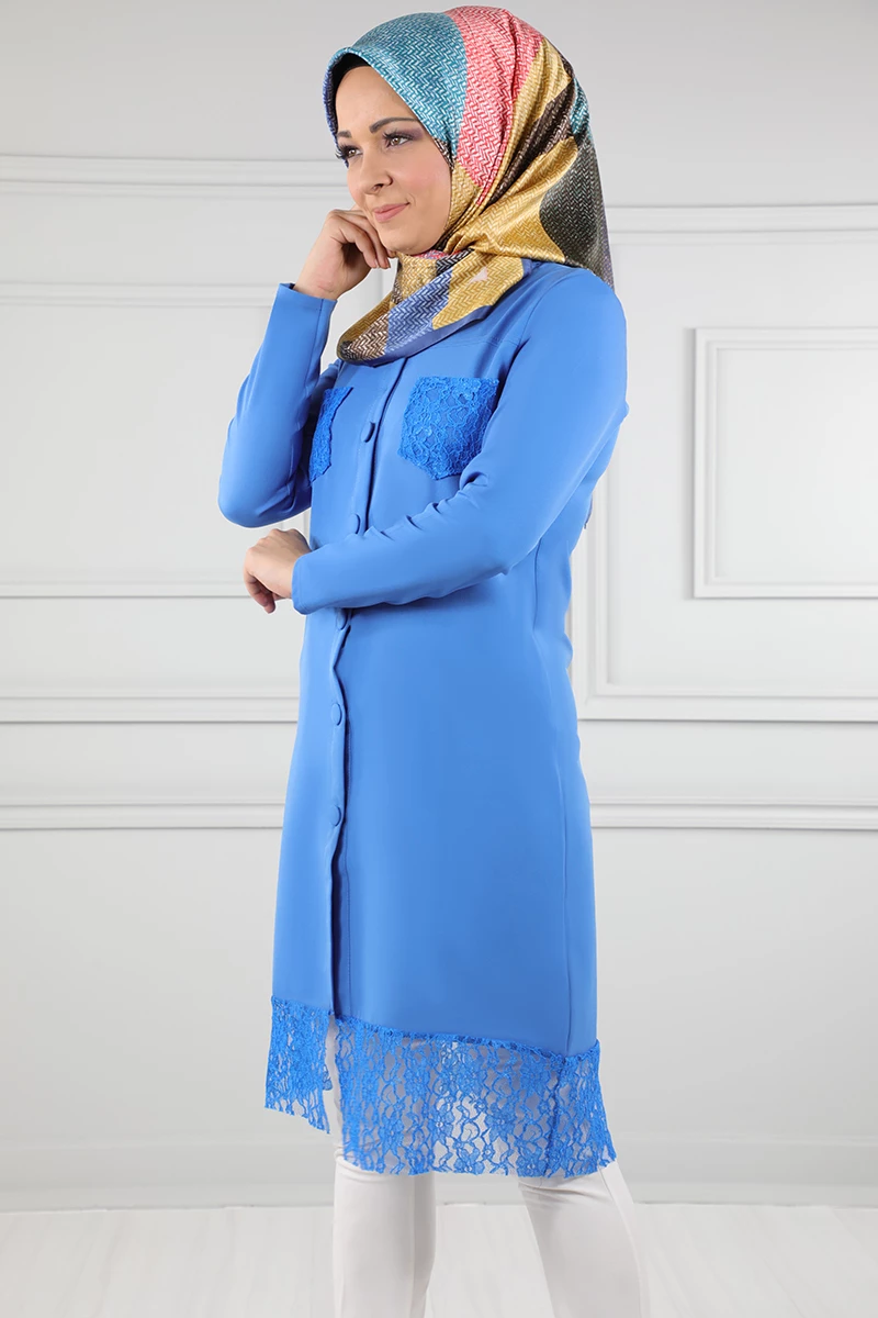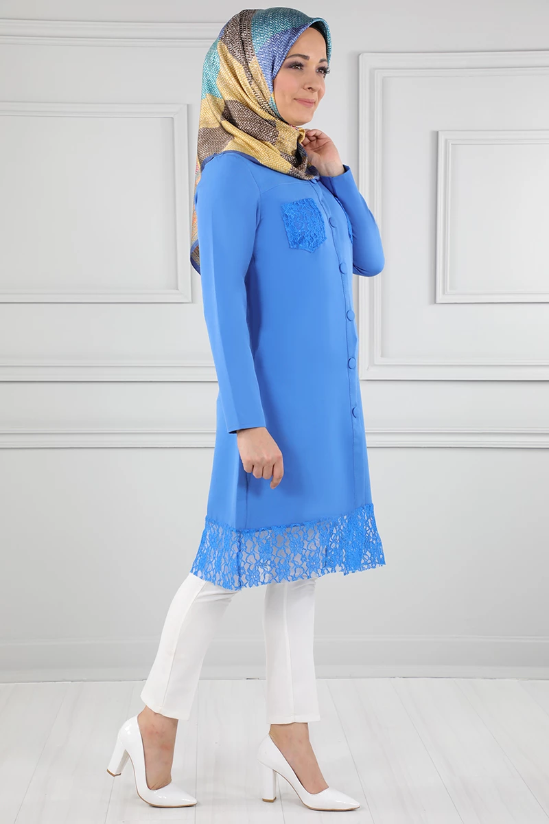 Süs Düğmeli Güpür Detaylı Tesettür Tunik Bebe Mavisi 38
