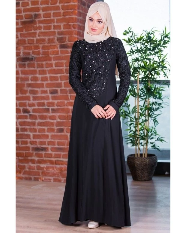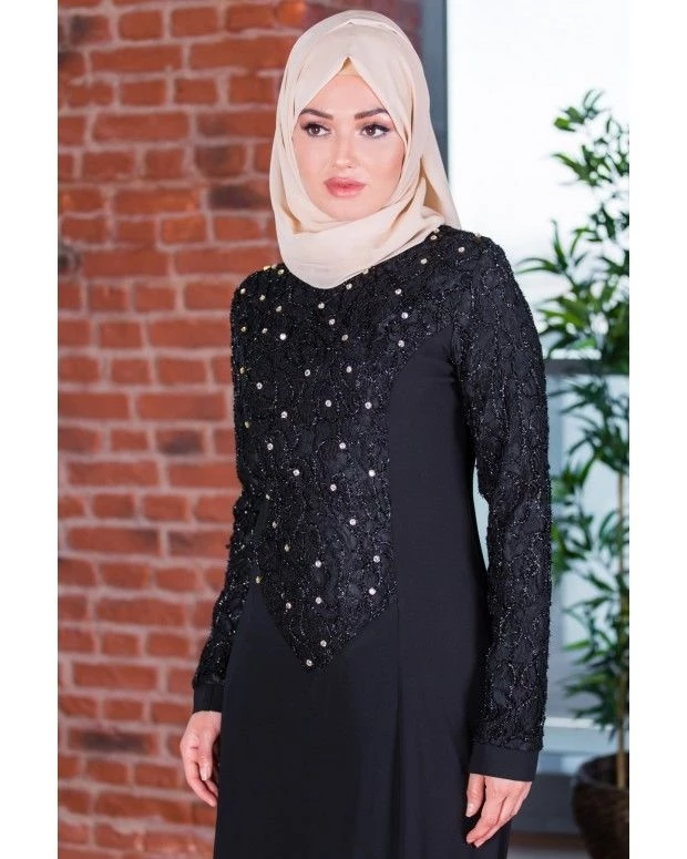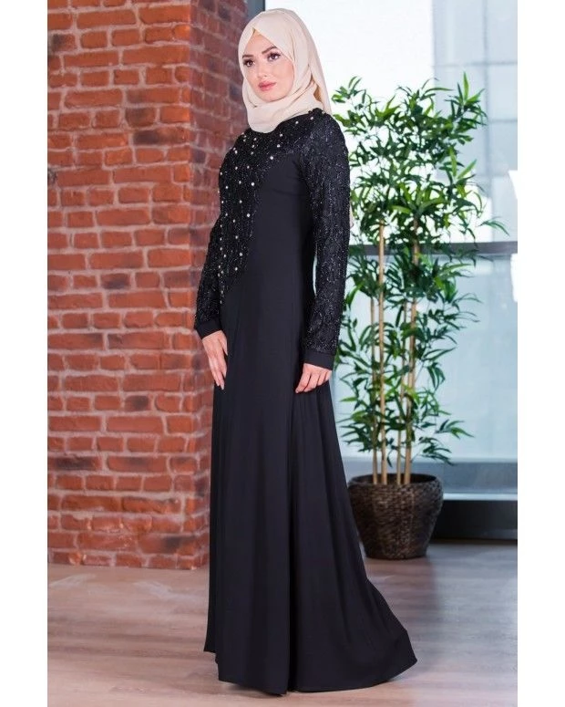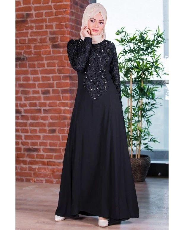 Taş Detaylı Abiye Elbise SİYAH 20049 42