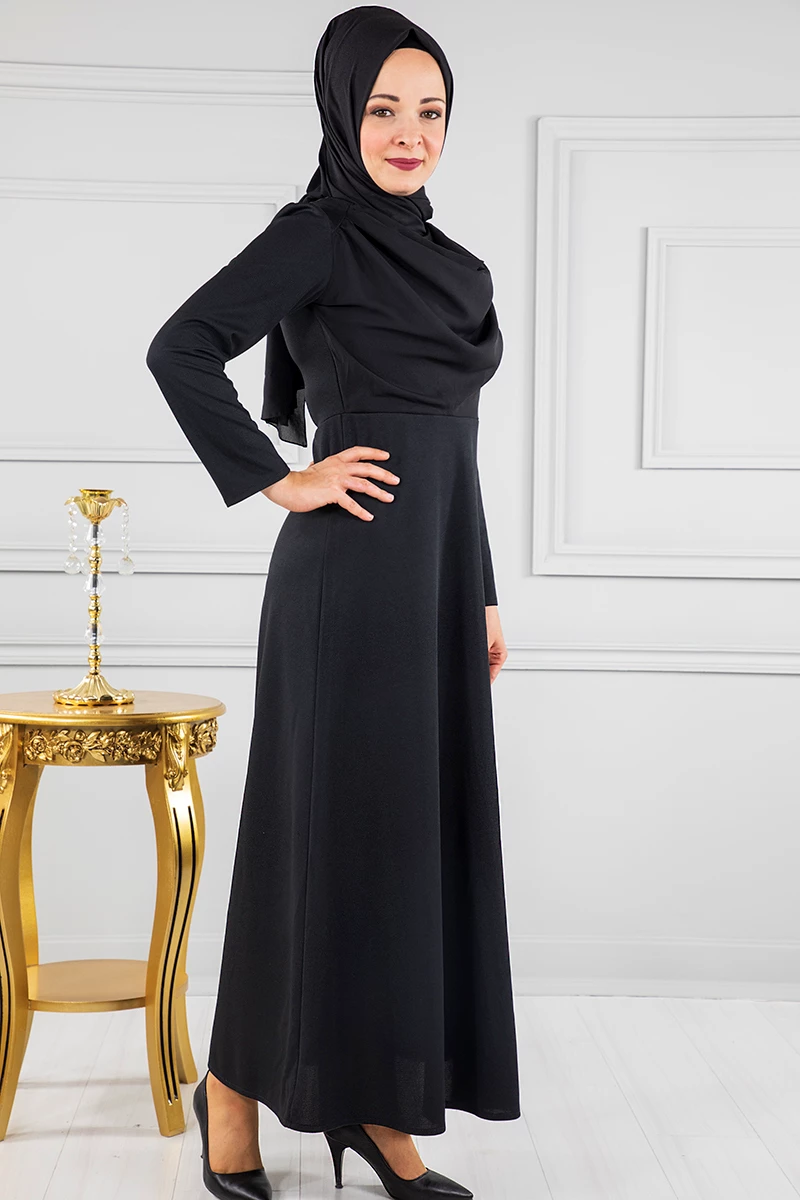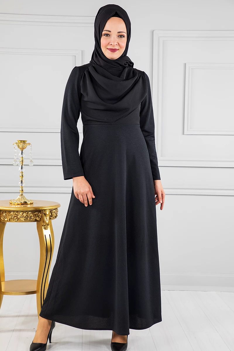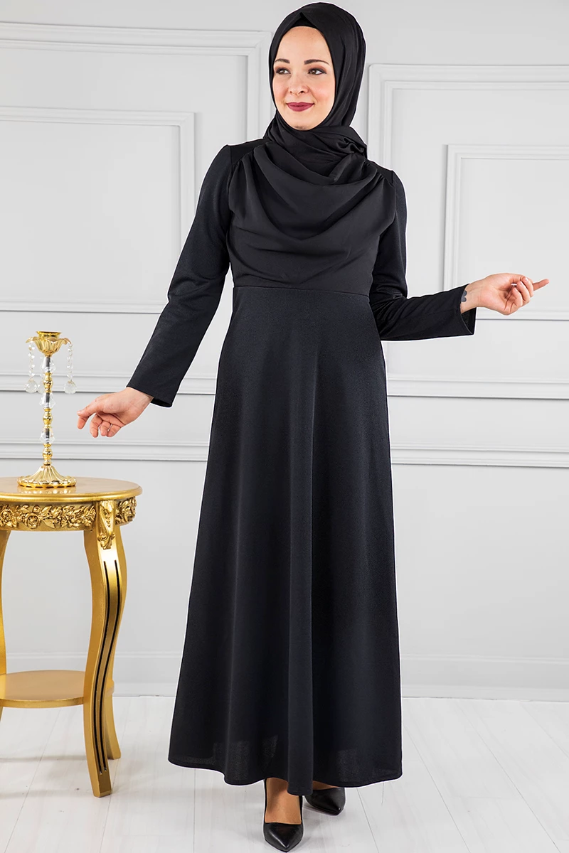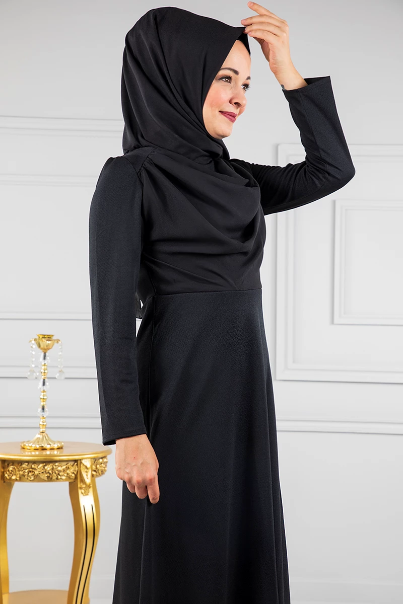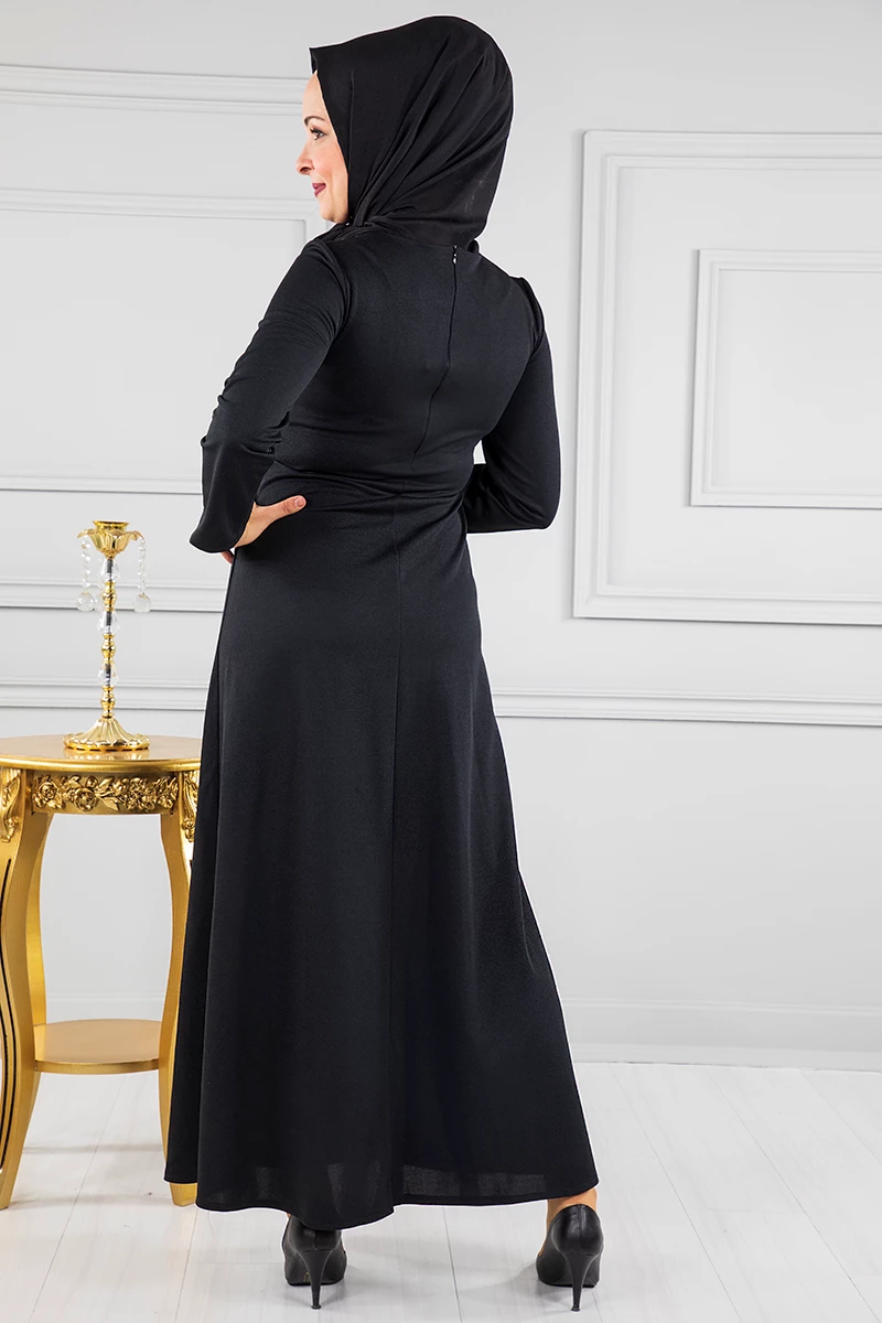 Tül Detaylı Tesettür Abiye RB50009 Siyah 46