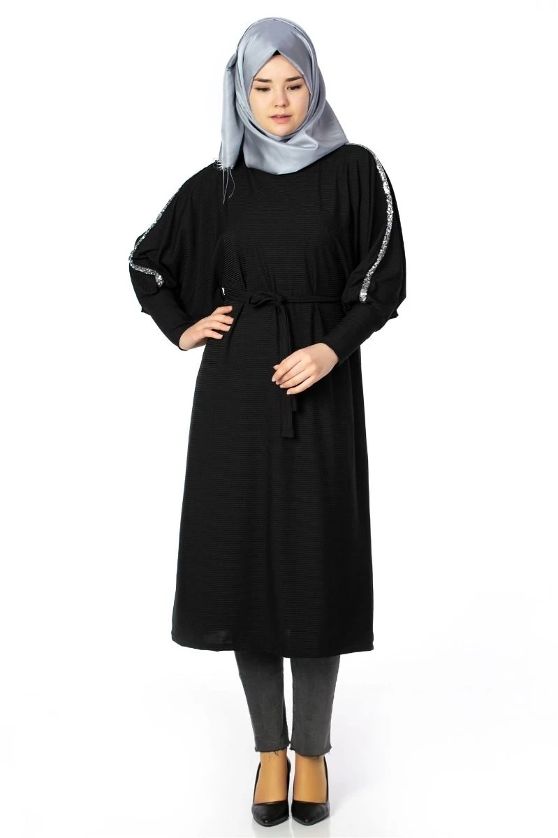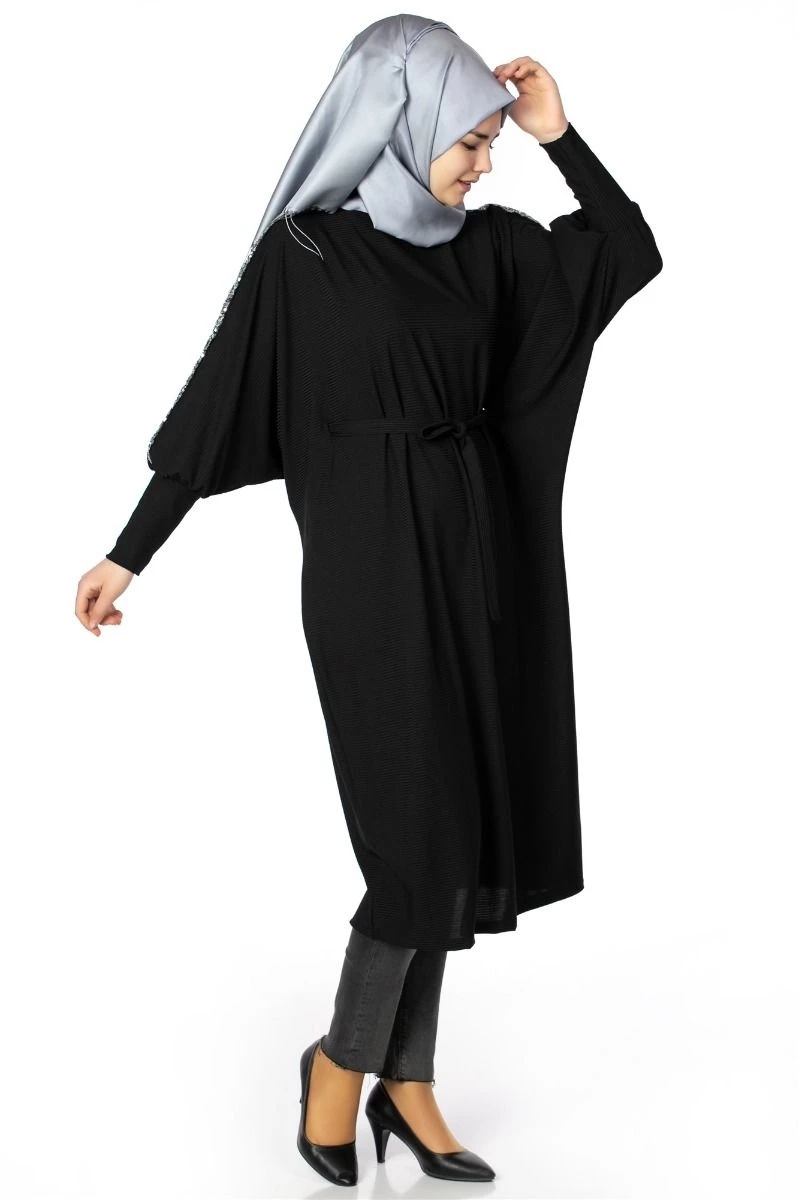 Yarasa Kol Triko Tesettür Elbise Siyah STD(36-42)