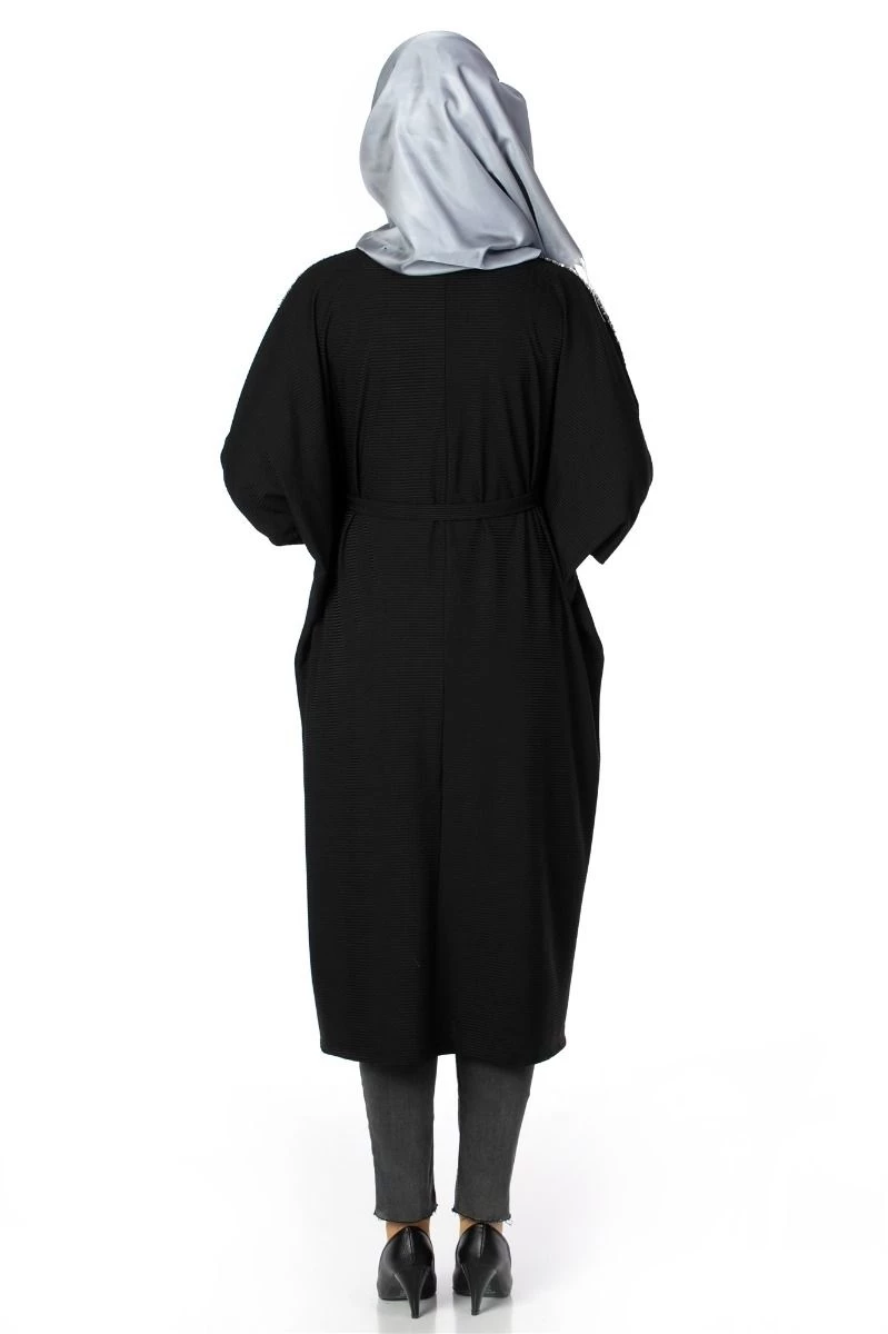 Needion - Yarasa Kol Triko Tesettür Elbise Siyah STD(36-42)