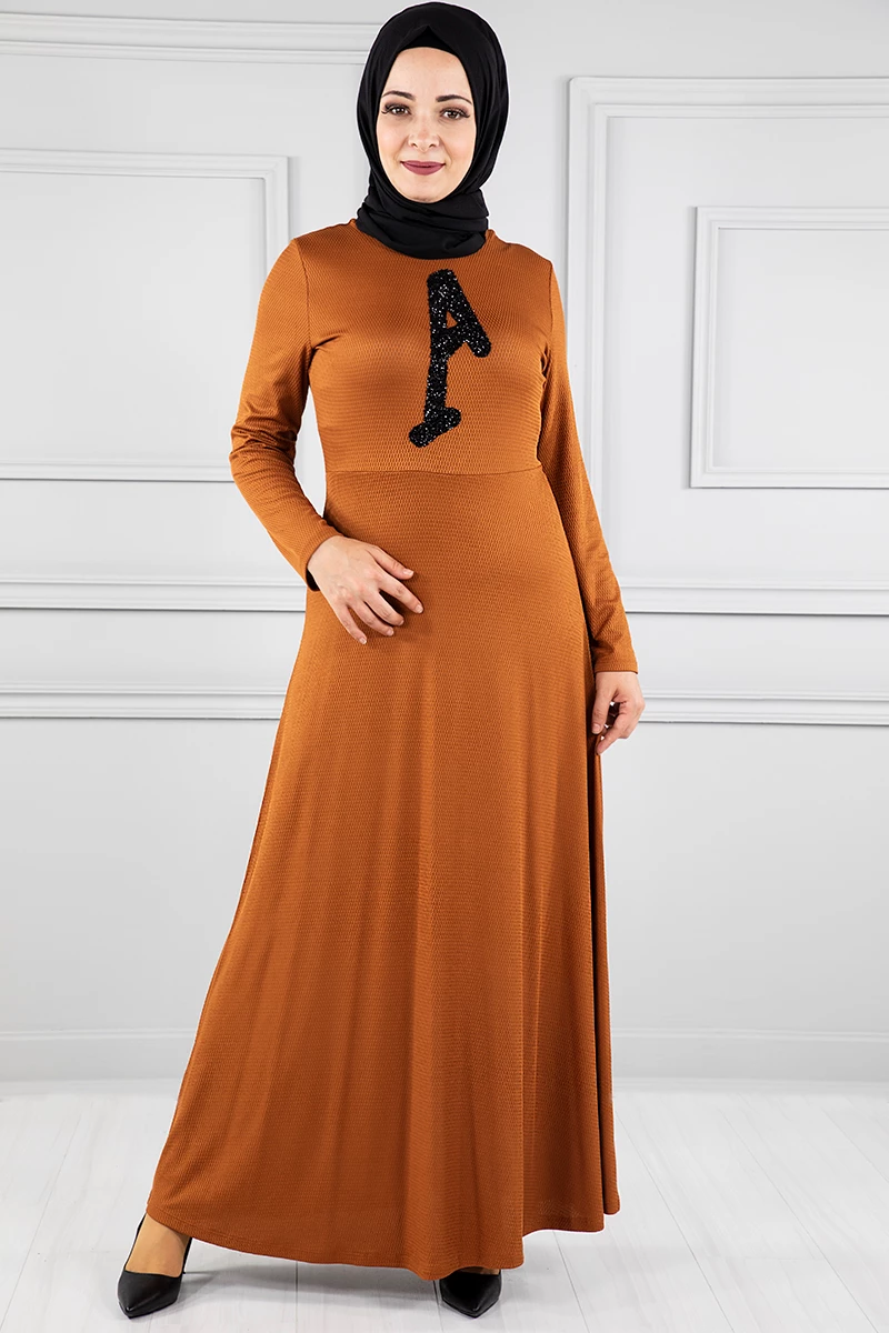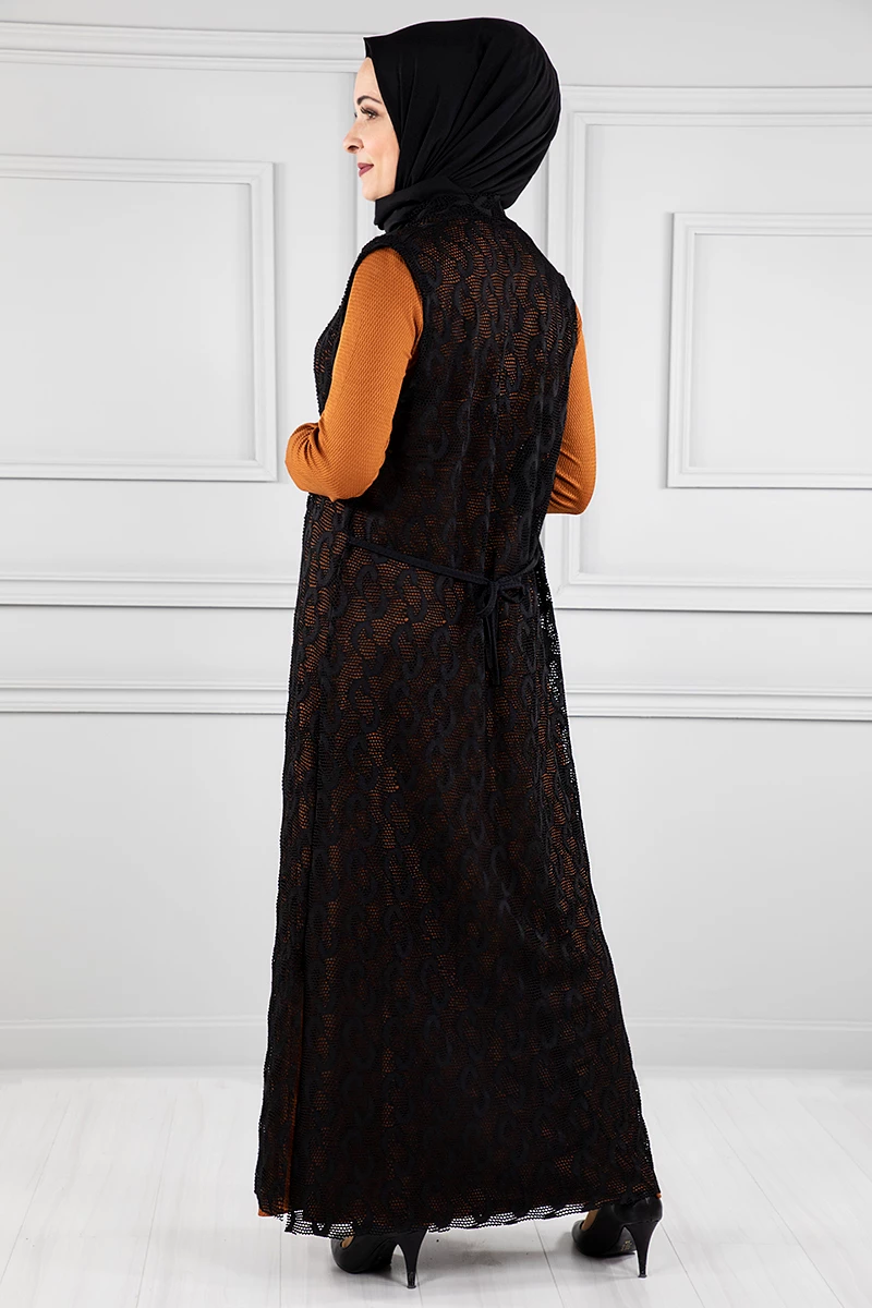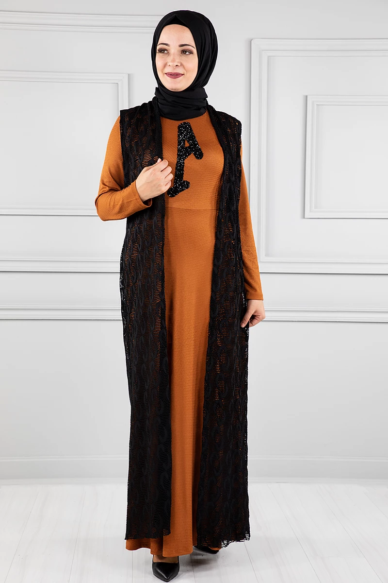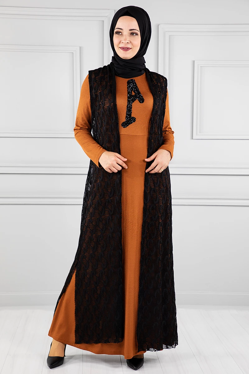 Yelekli Tesettür Elbise Br20128 Kiremit L-XL