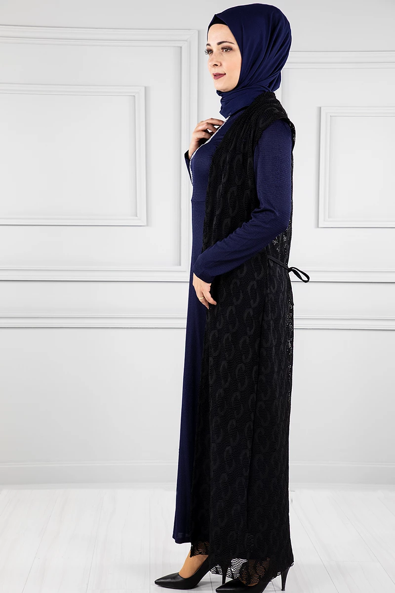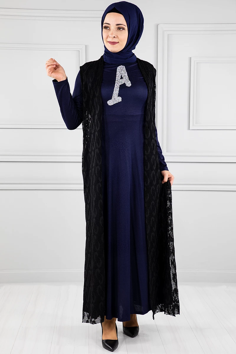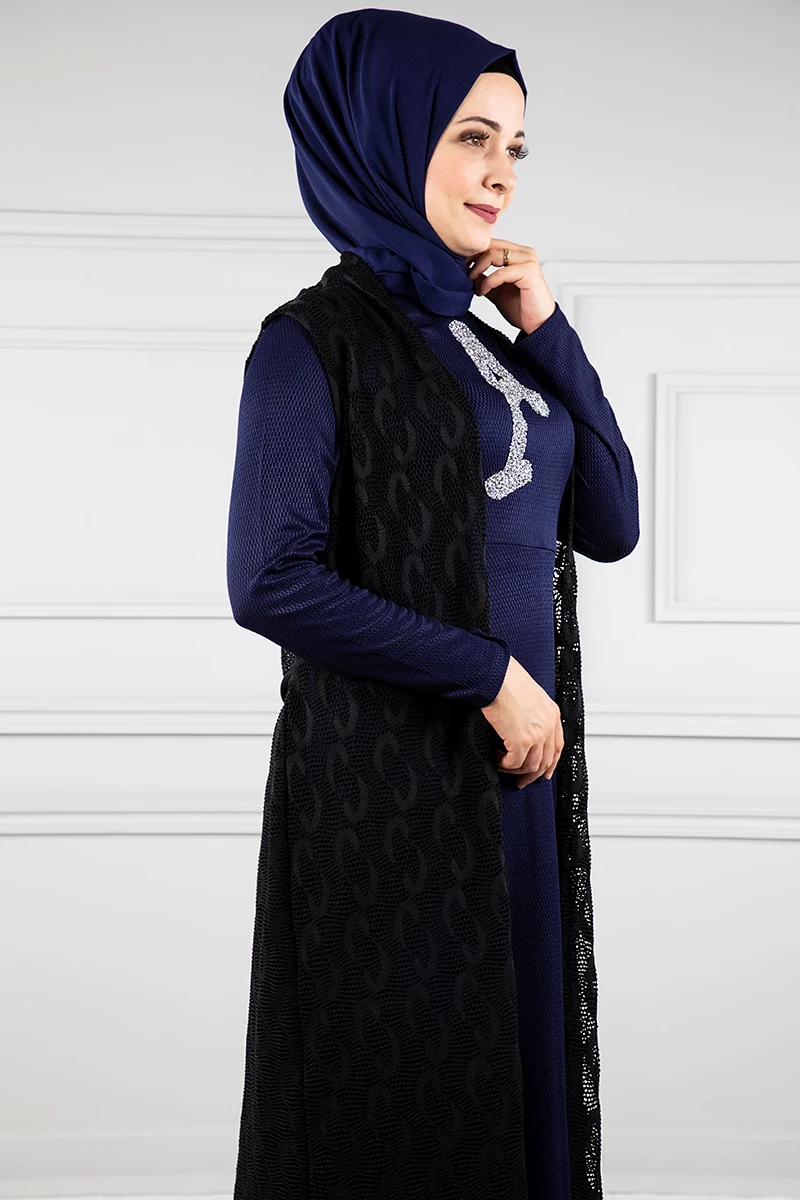 Yelekli Tesettür Elbise Br20128 Lacivert L-XL