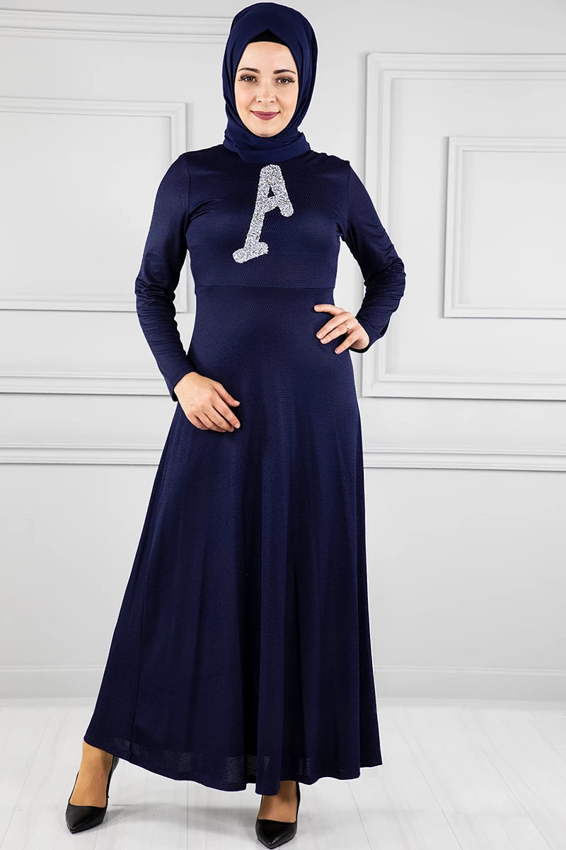Needion - Yelekli Tesettür Elbise Br20128 Lacivert L-XL
